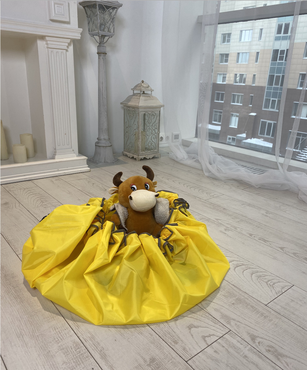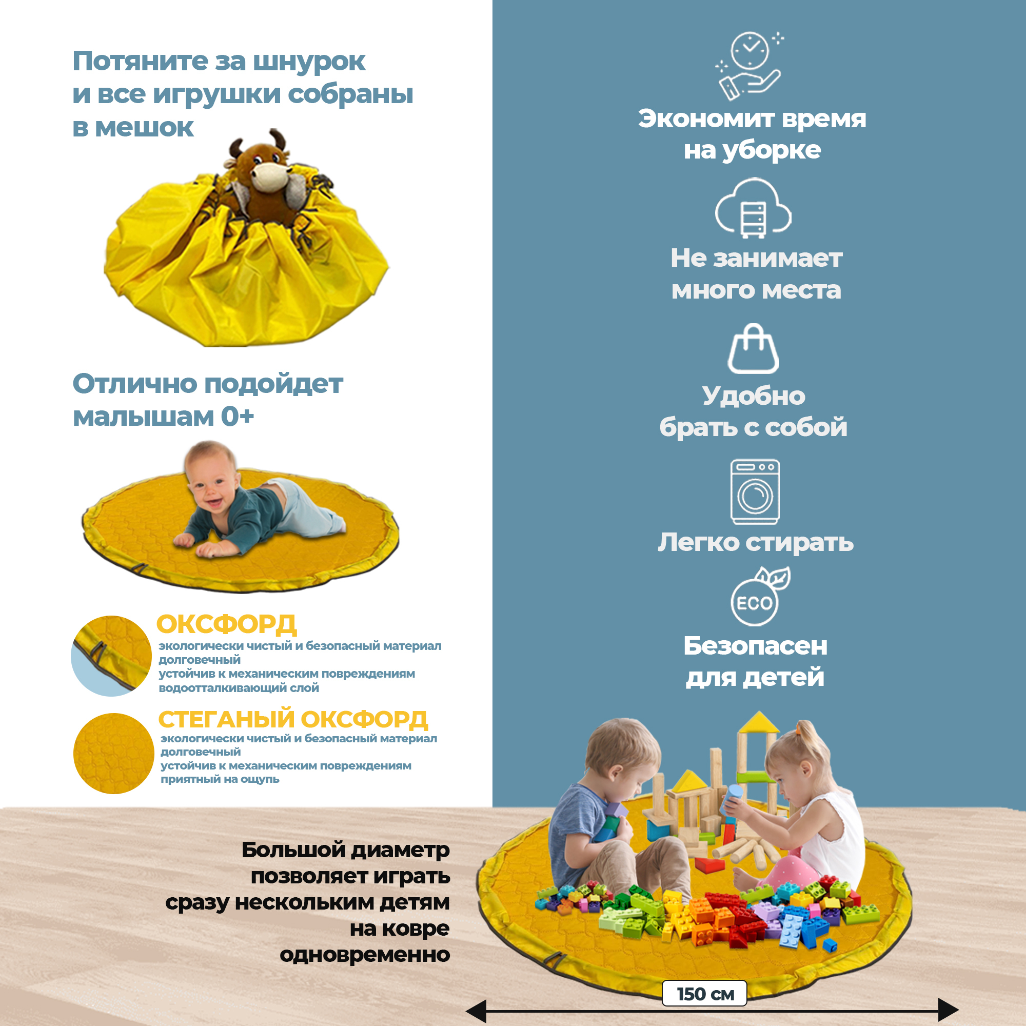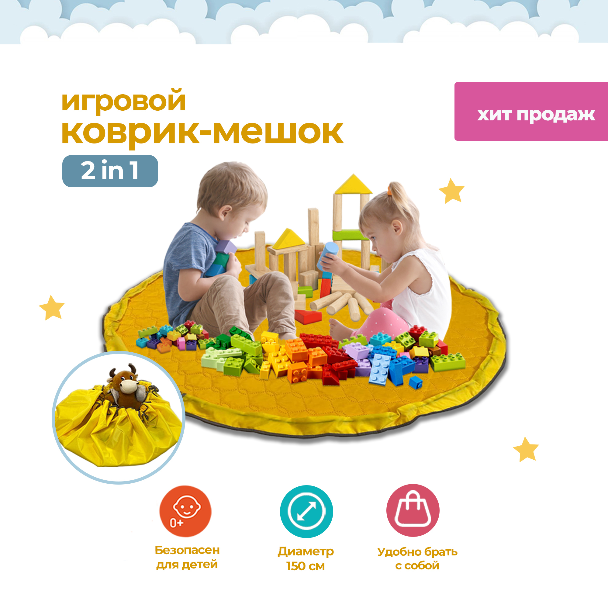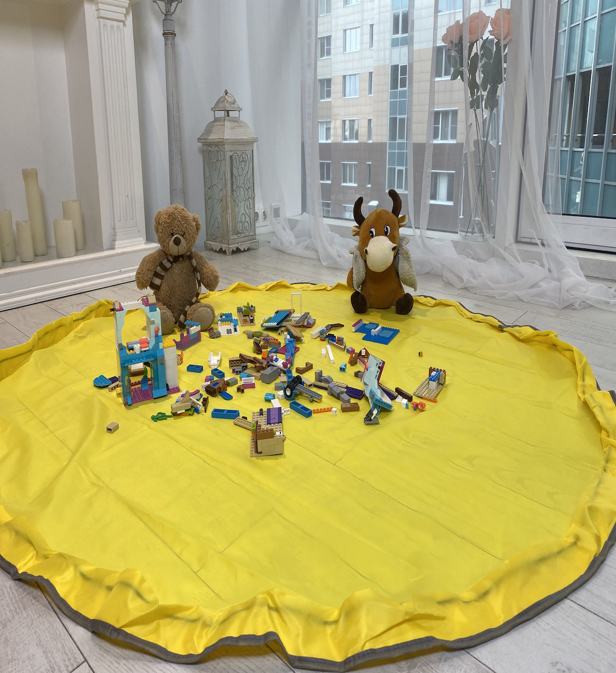 Детский коврик лего, сумка, мешок для игрушек, желтый, утепленный d 150 см