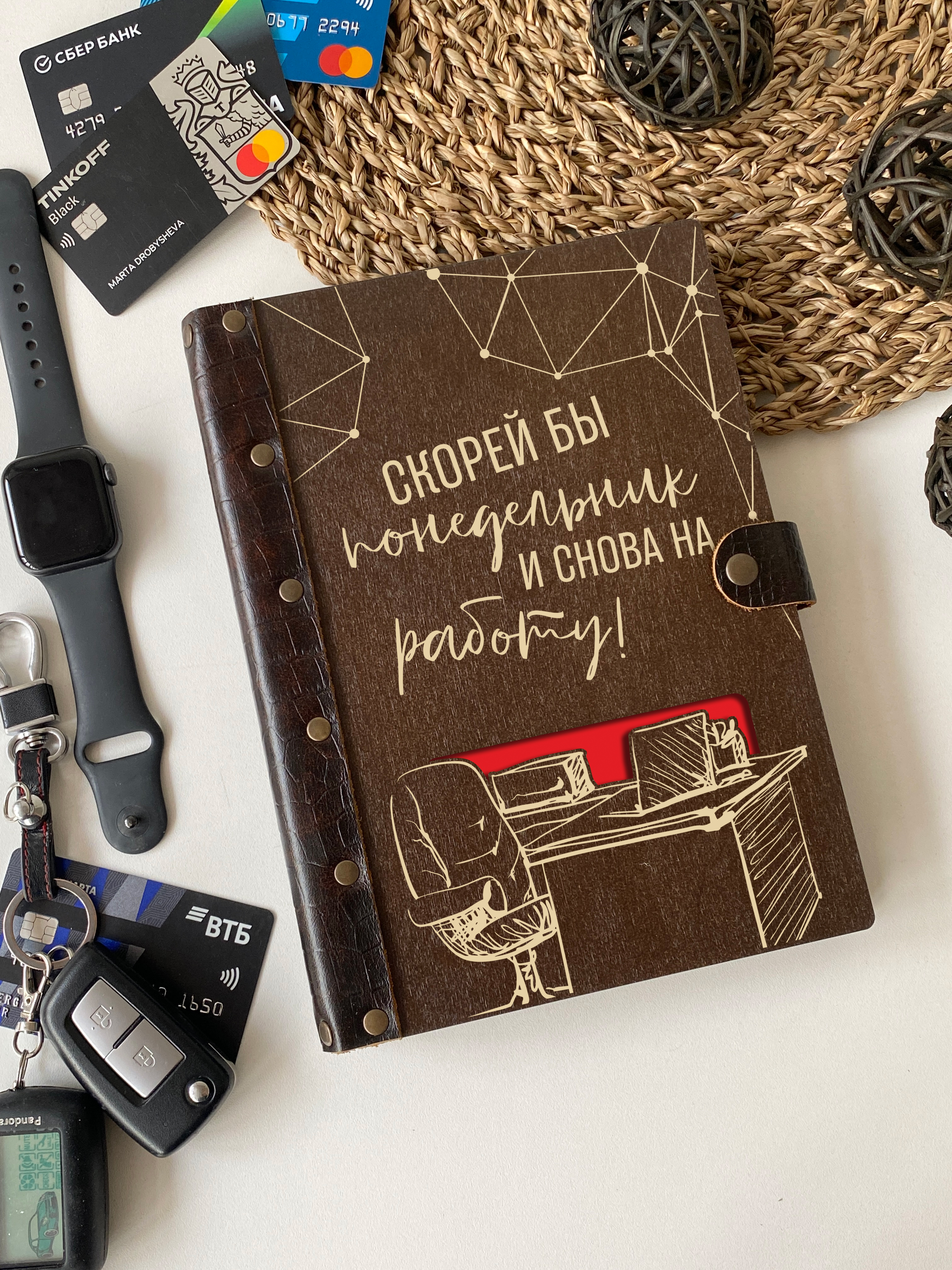 Ежедневник врача гинеколога, вечный, натуральная кожа, на кольцах, А5, подарок врачу, LinDome