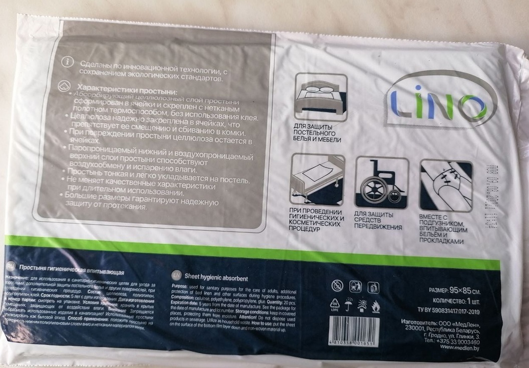 Простыня одноразовая LINO Простыни гигиенические впитывающие 95х85
