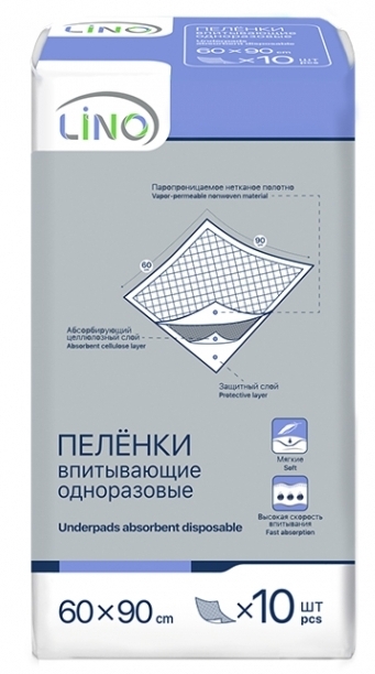 Пеленка медицинская LINO Пеленки впитывающие одноразовые 60х90 в упаковке по 10 шт., 60 х 90 см