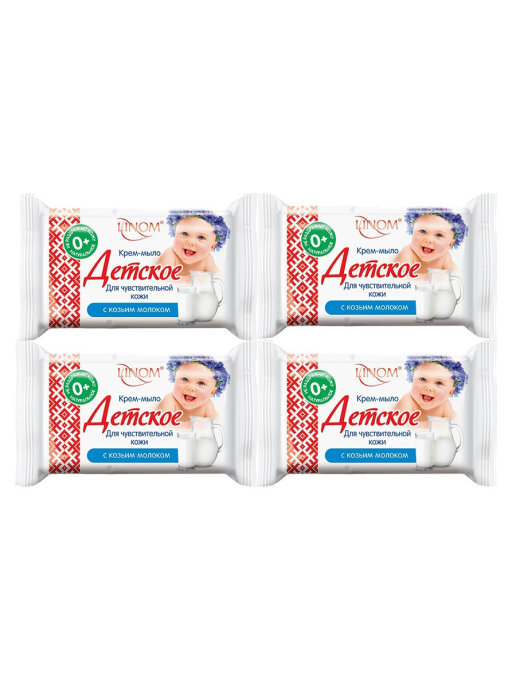 Детское натуральное крем-мыло "Для чувствительной кожи" с козьим молоком. LINOM(БЕЛАРУСЬ). 4 шт.