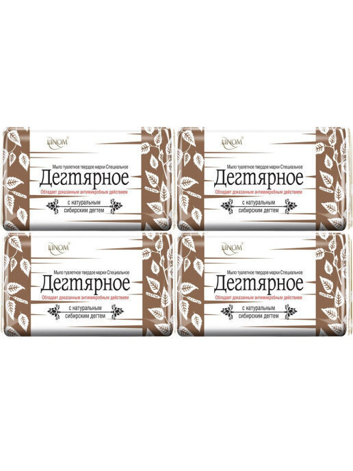 Банное натуральное мыло "С березовым дёгтем" (дегтярное). Антибактериальное. LINOM(Беларусь). 4 шт