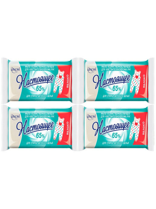 Мыло хозяйственное натуральное "Настоящее" 65%.Яблоко.Для стирки детского белья.LINOM(БЕЛАРУСЬ).4 шт