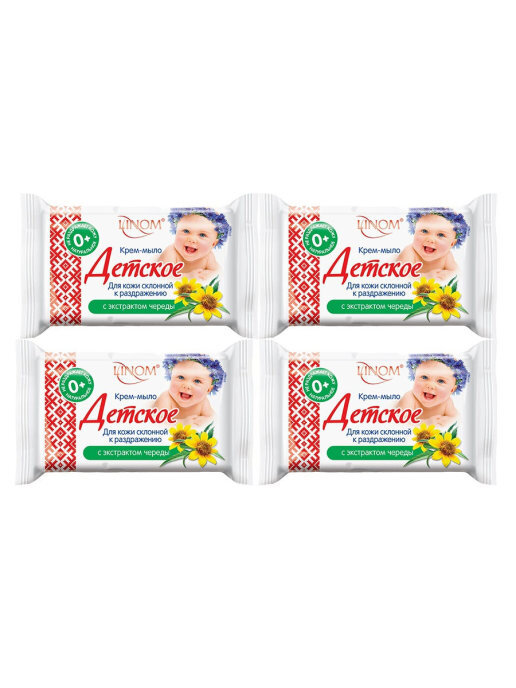 Детское натуральное крем-мыло "Для кожи склонной к раздражению" с чередой. LINOM(БЕЛАРУСЬ). 4 шт.