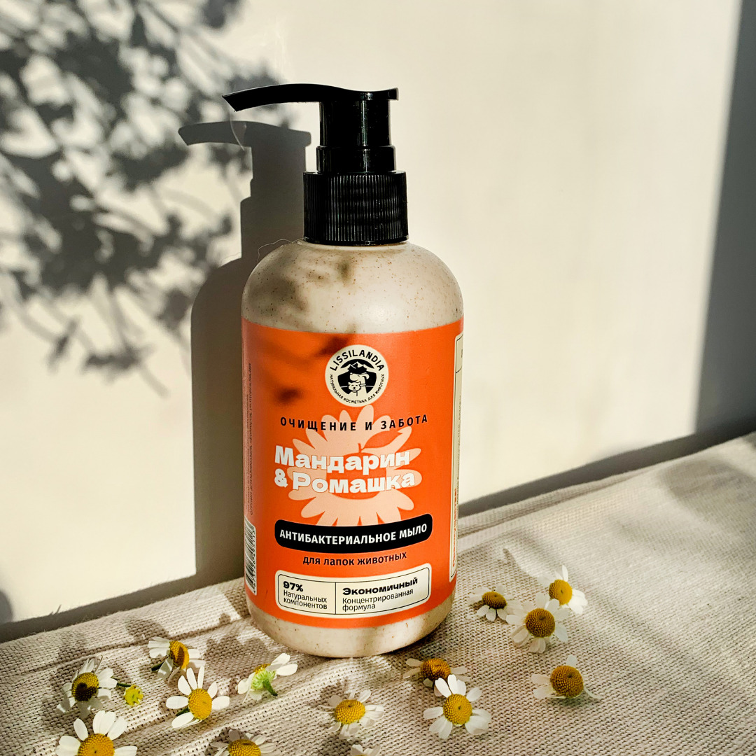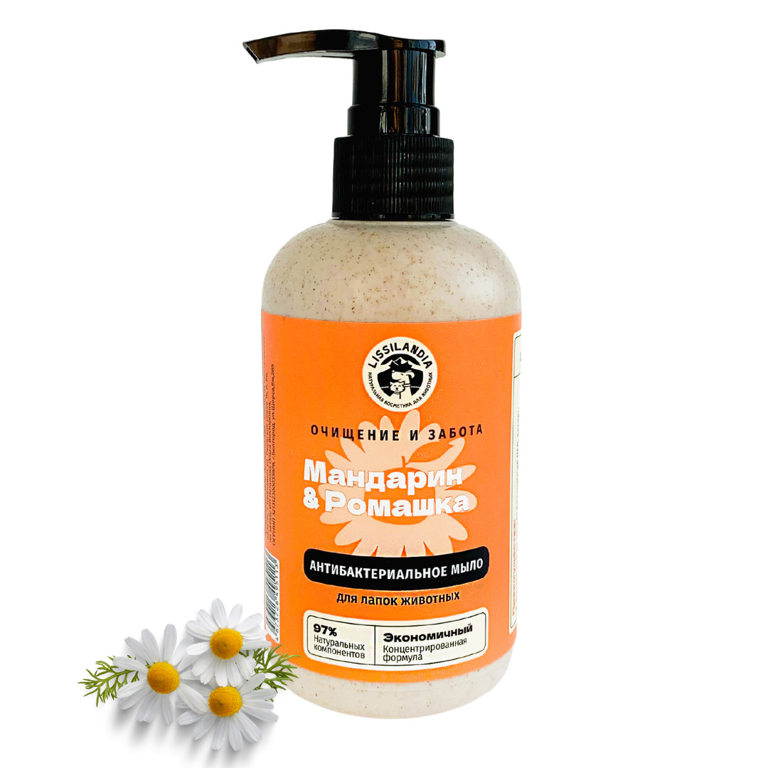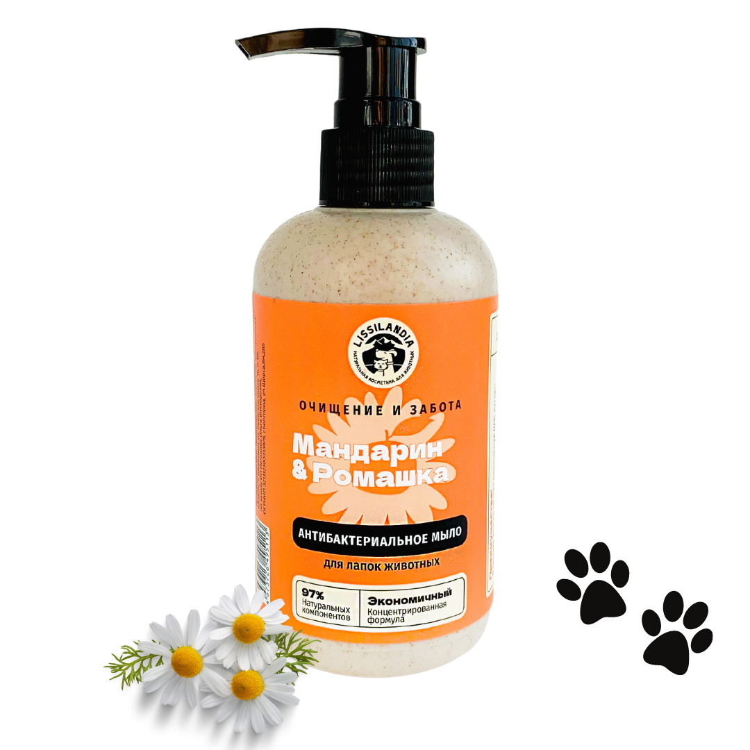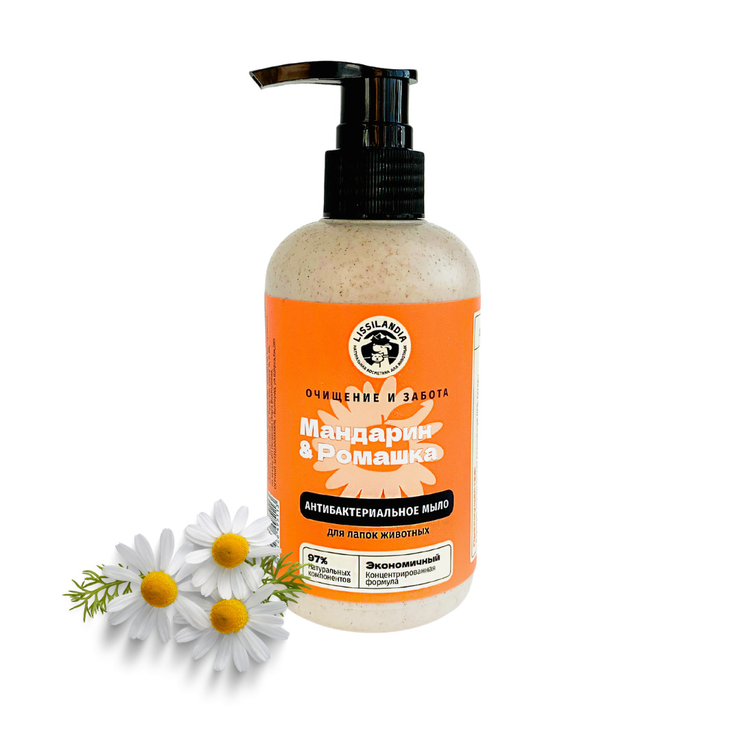 Мыло антибактериальное для лапок собак и кошек LissiLandia Мандарин и Ромашка