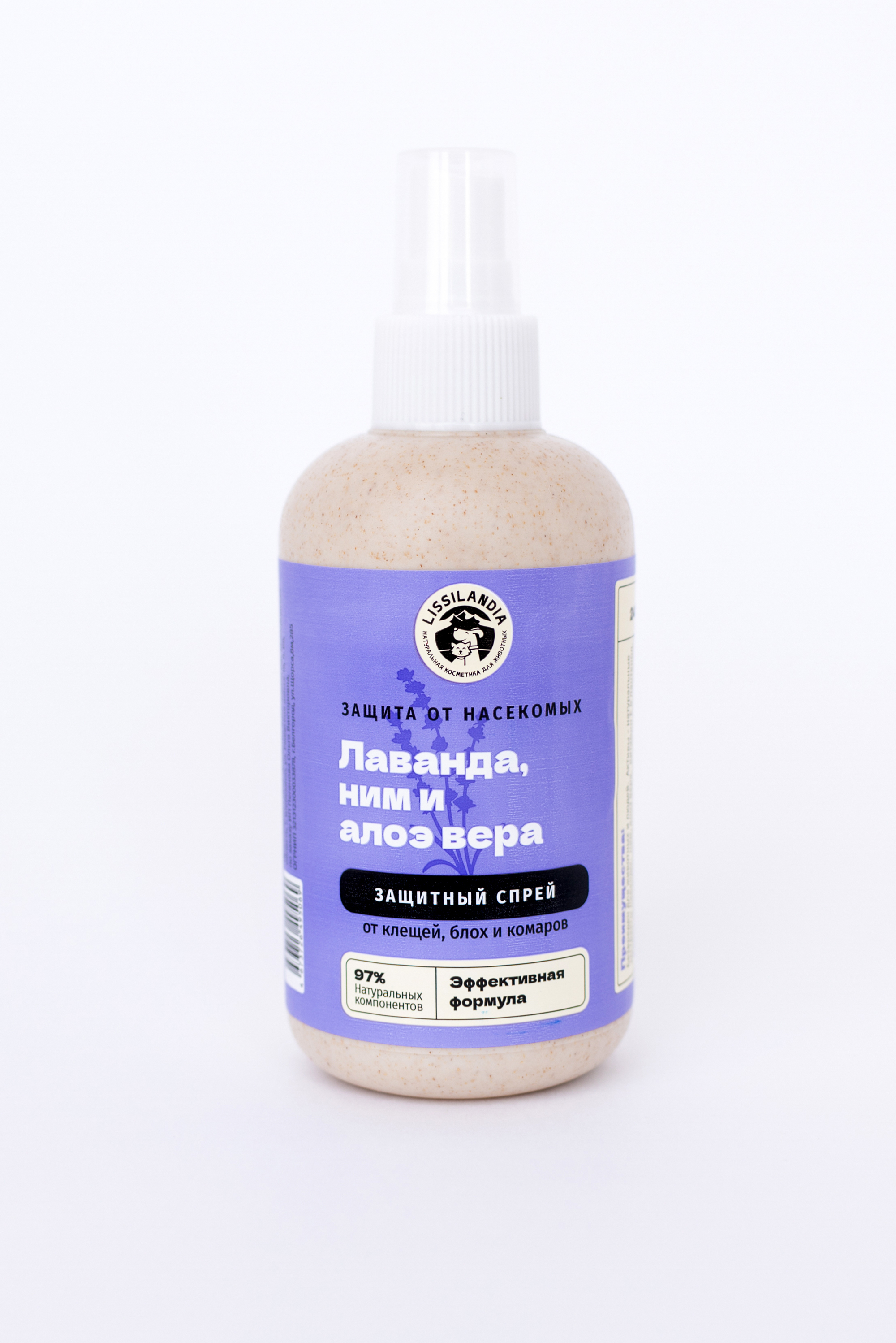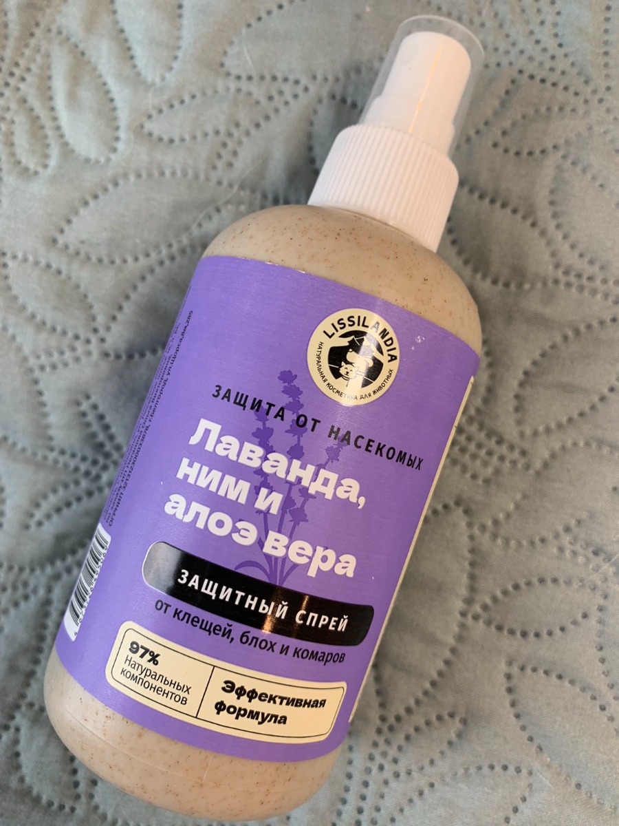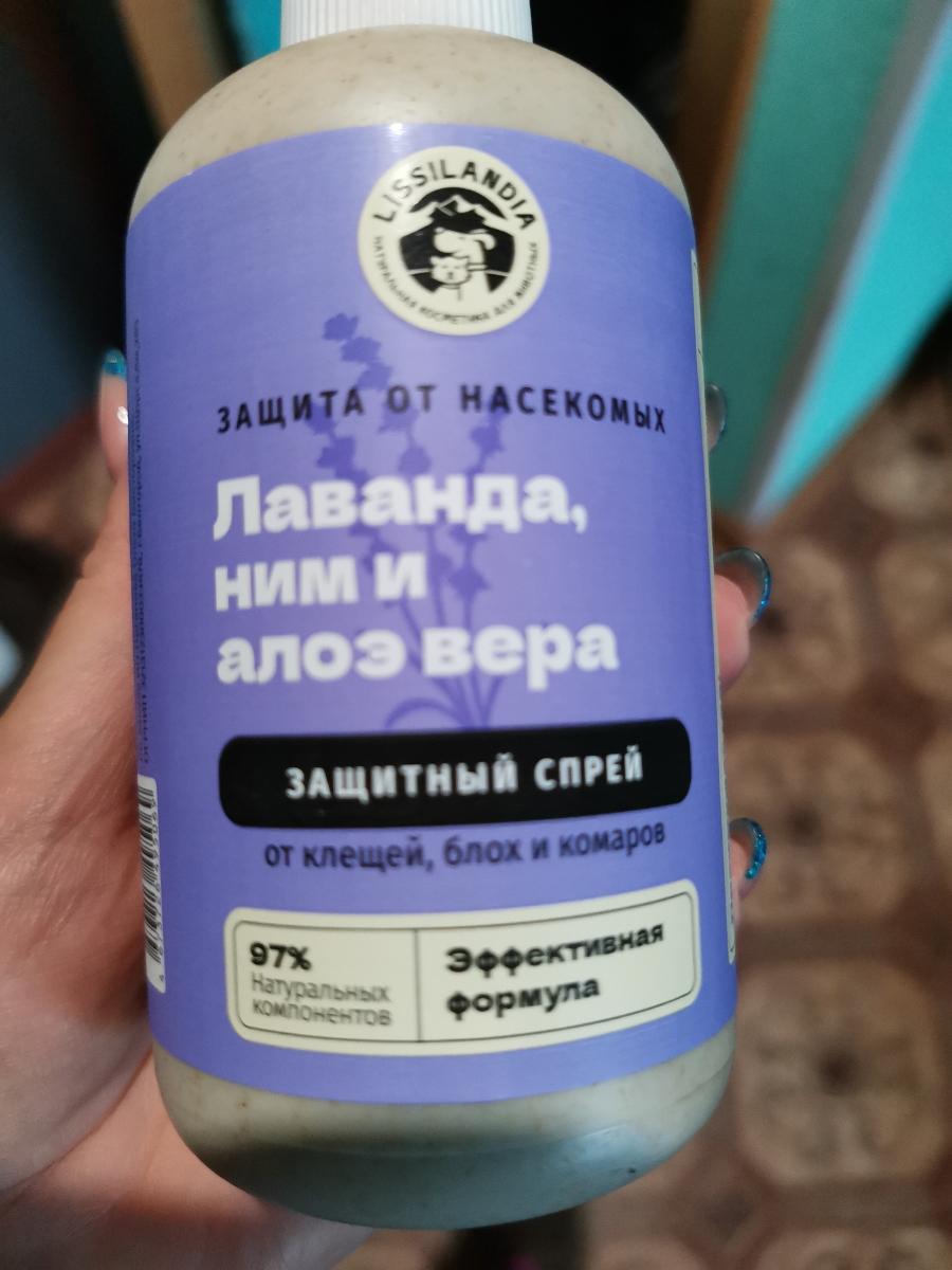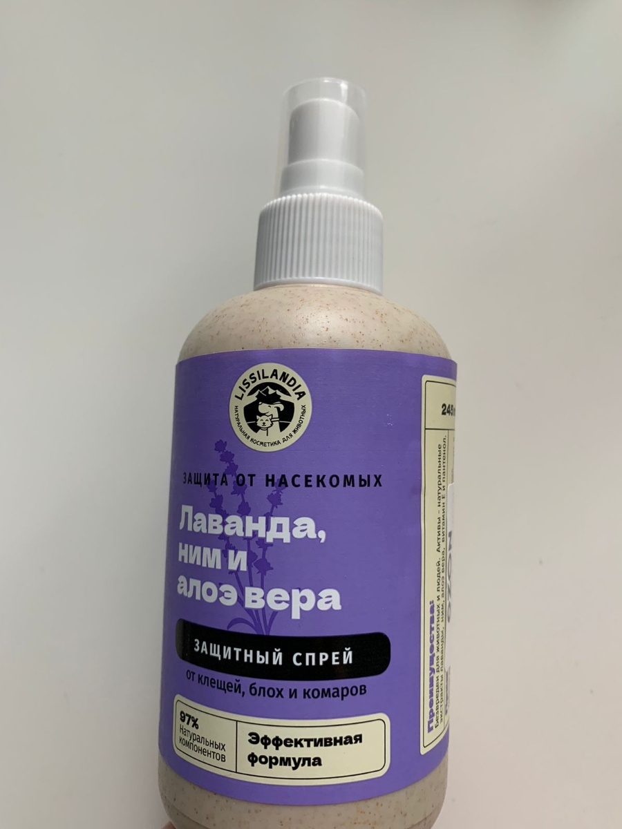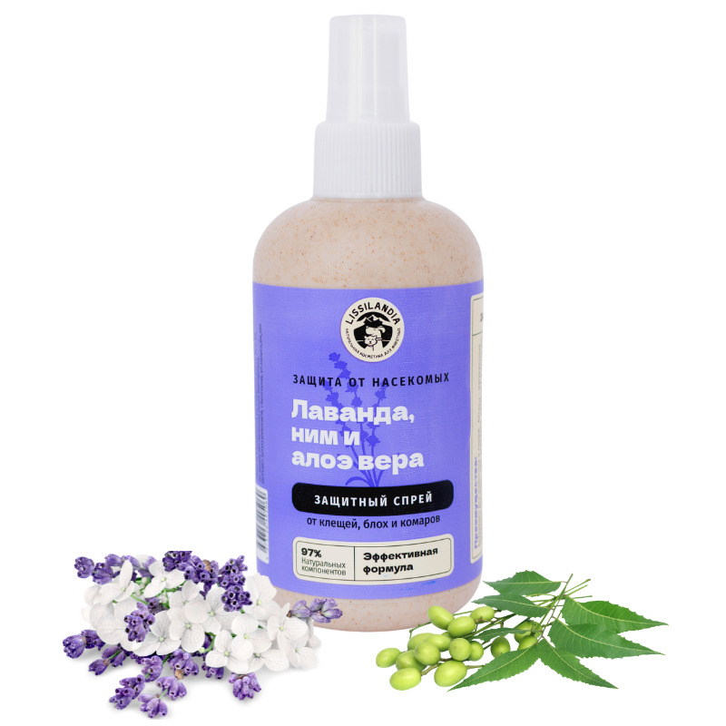 Натуральный защитный спрей от клещей, блох и комаров LissiLandia Лаванда, Ним и Алоэ вера