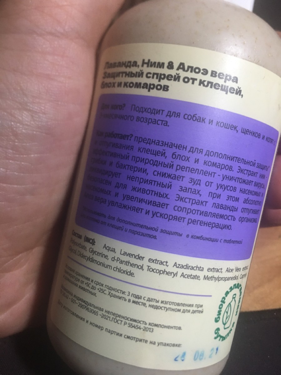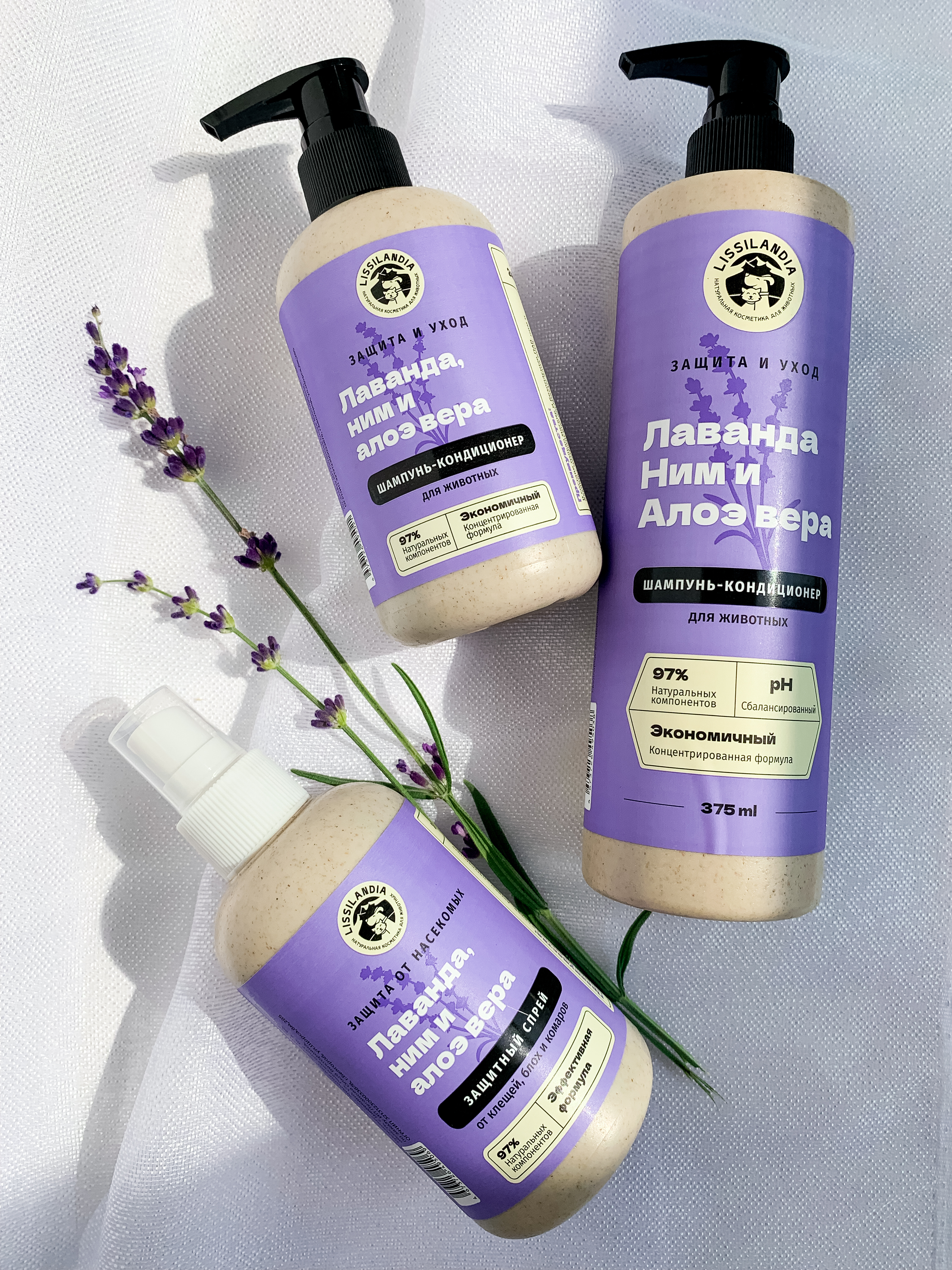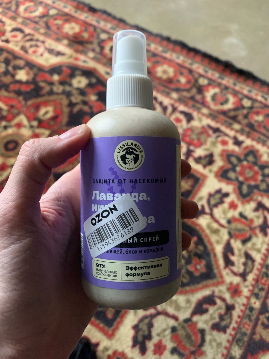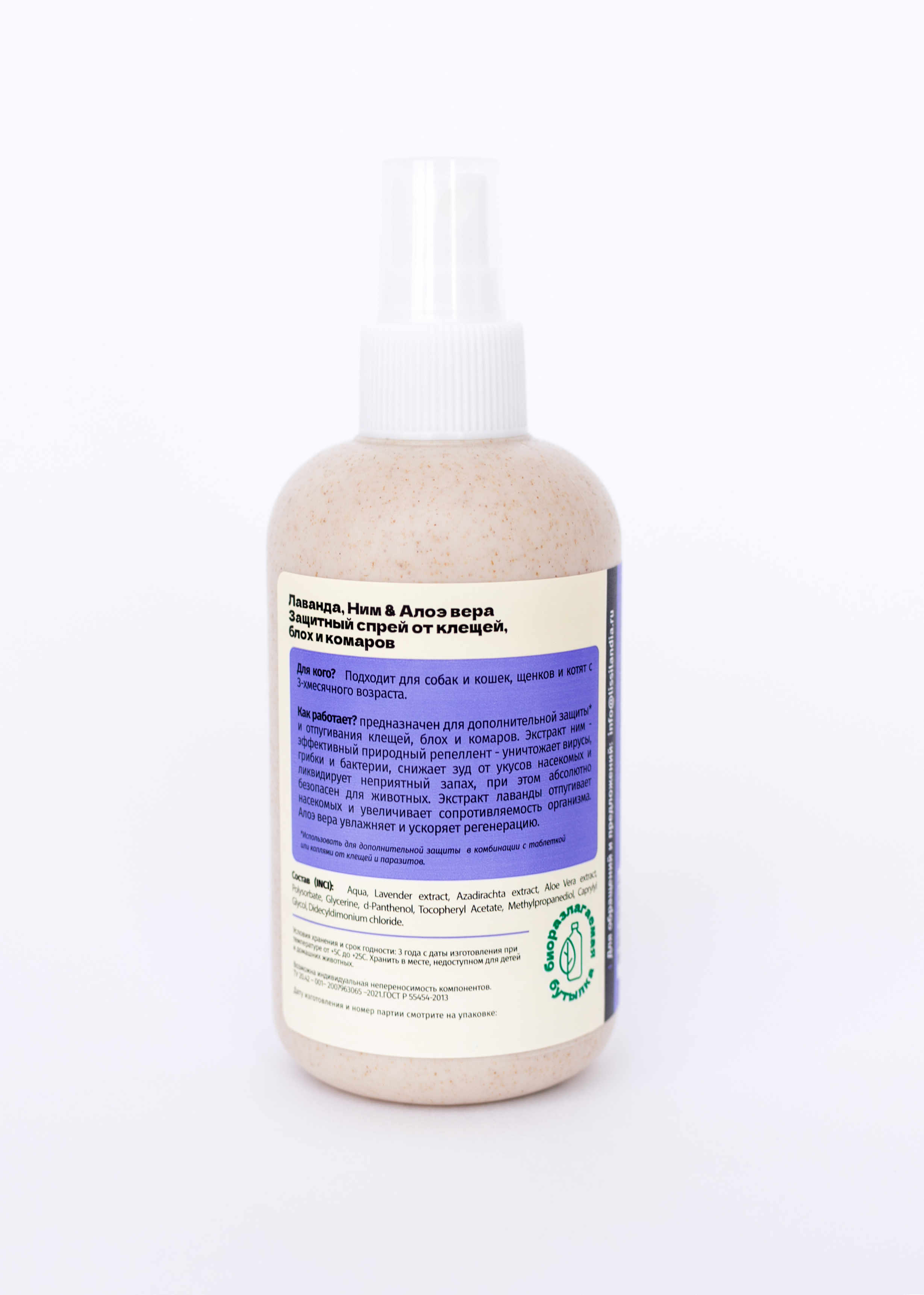 Натуральный защитный спрей от клещей, блох и комаров LissiLandia Лаванда, Ним и Алоэ вера
