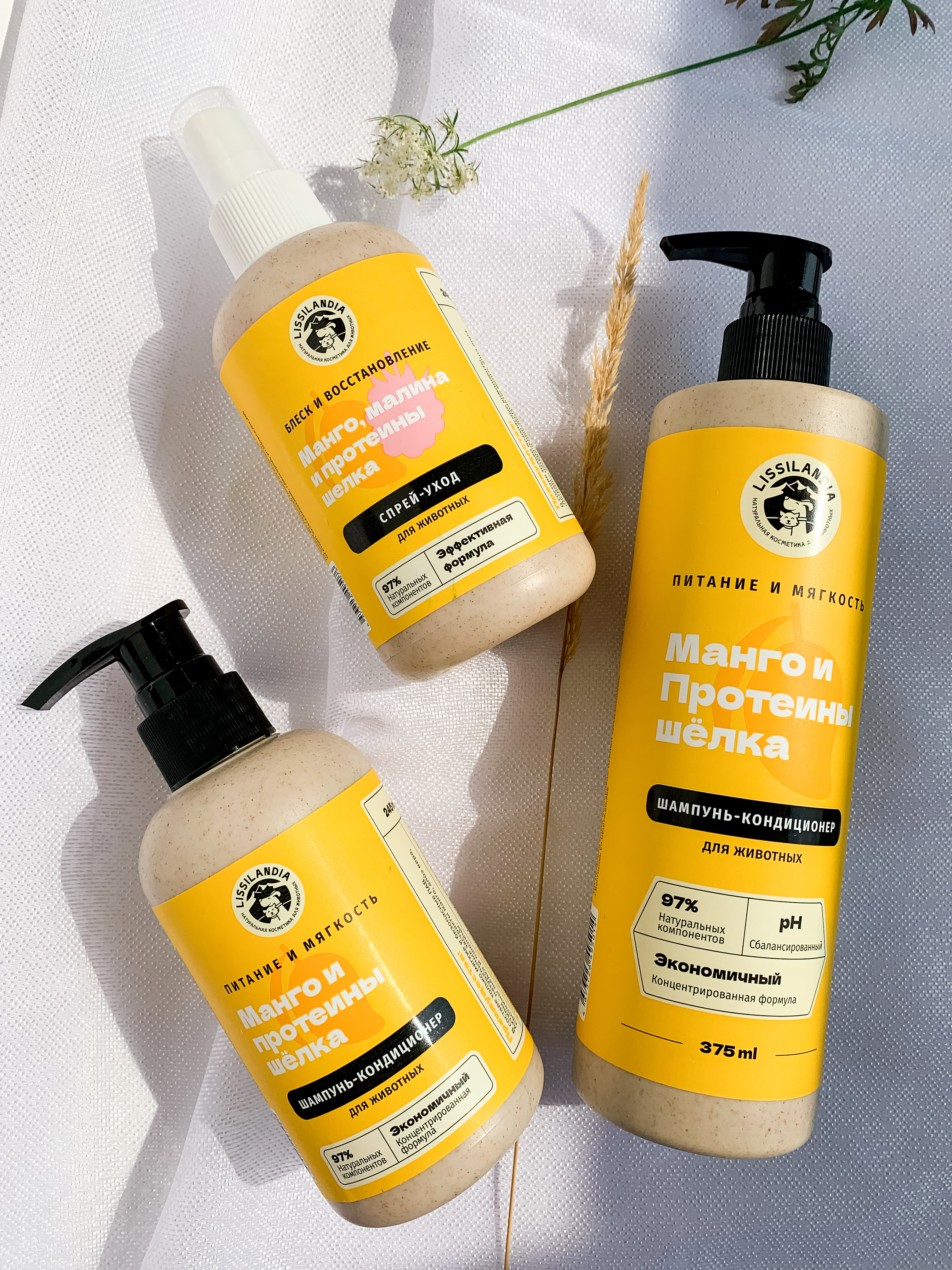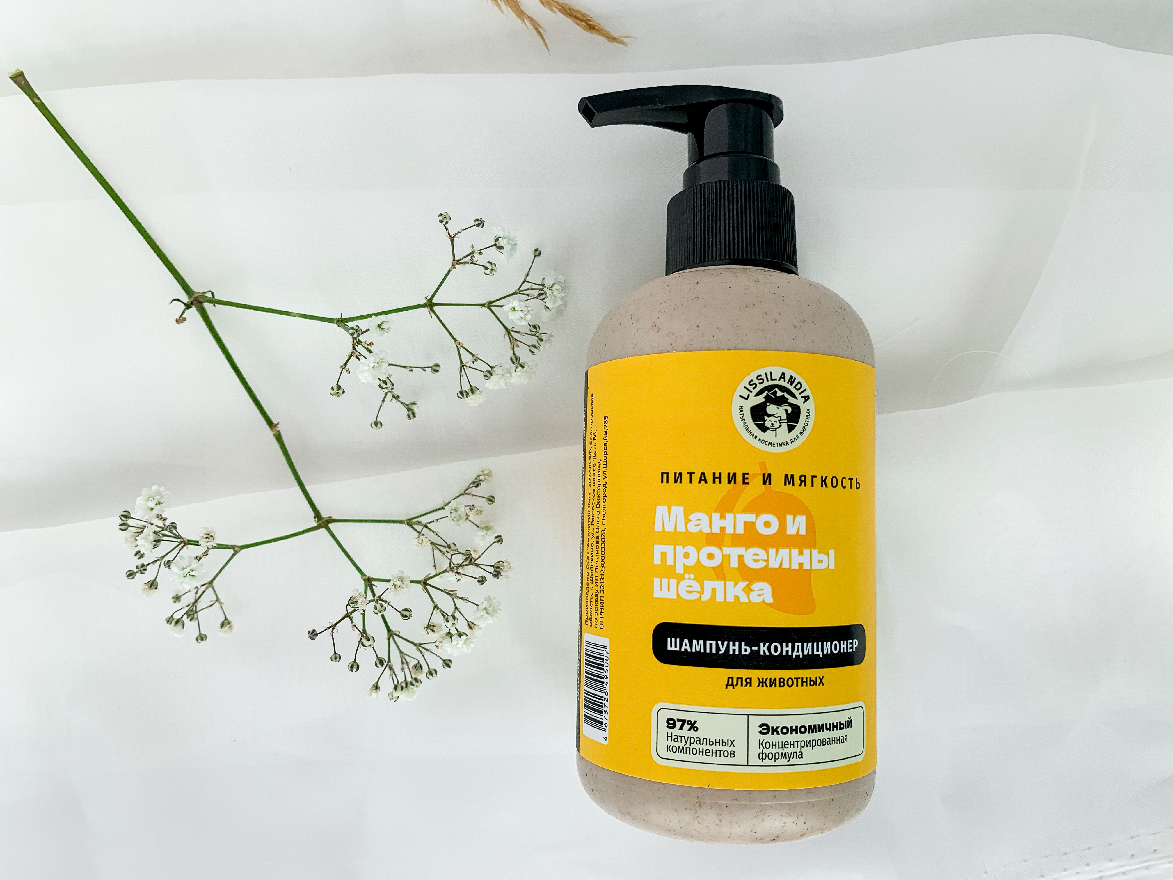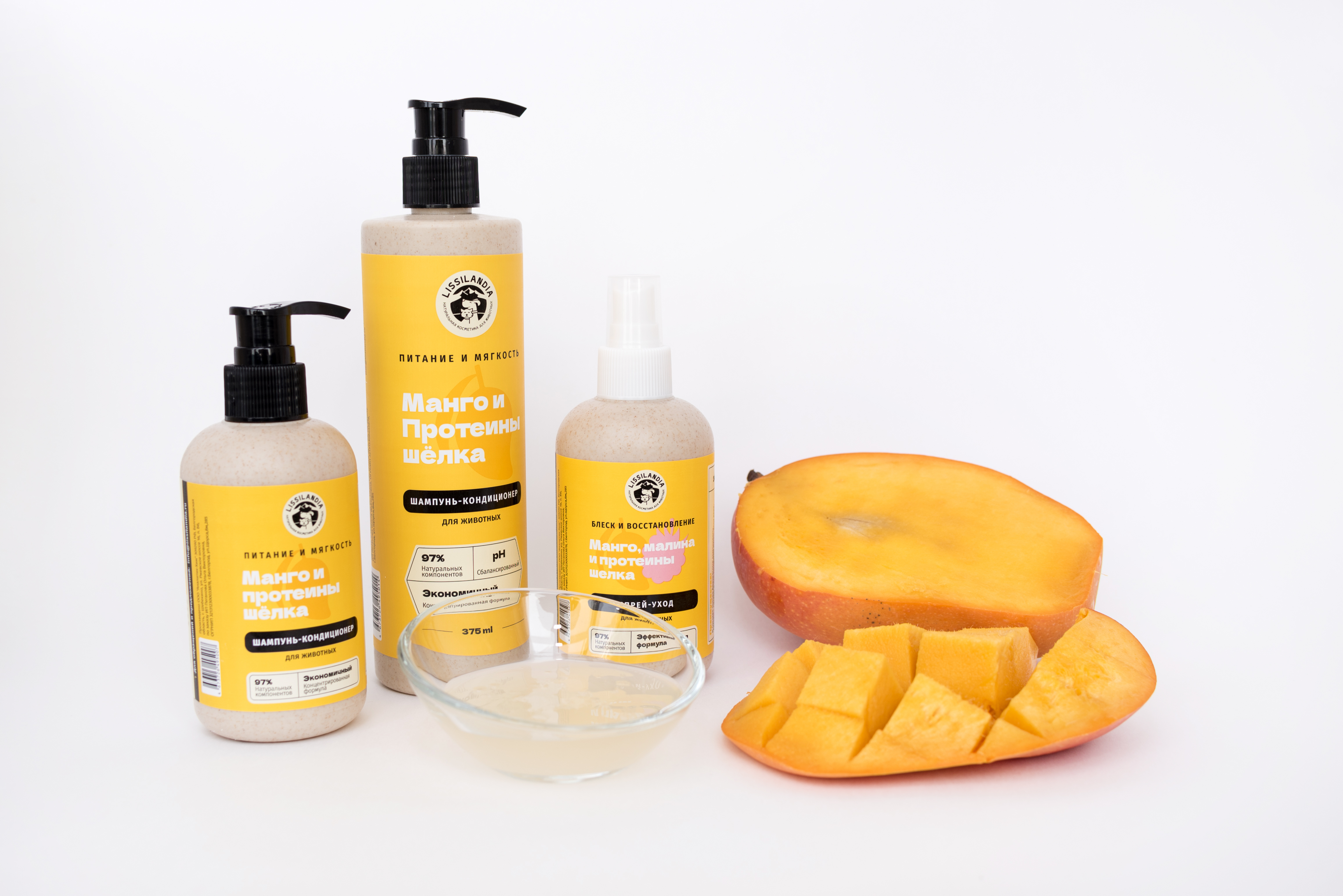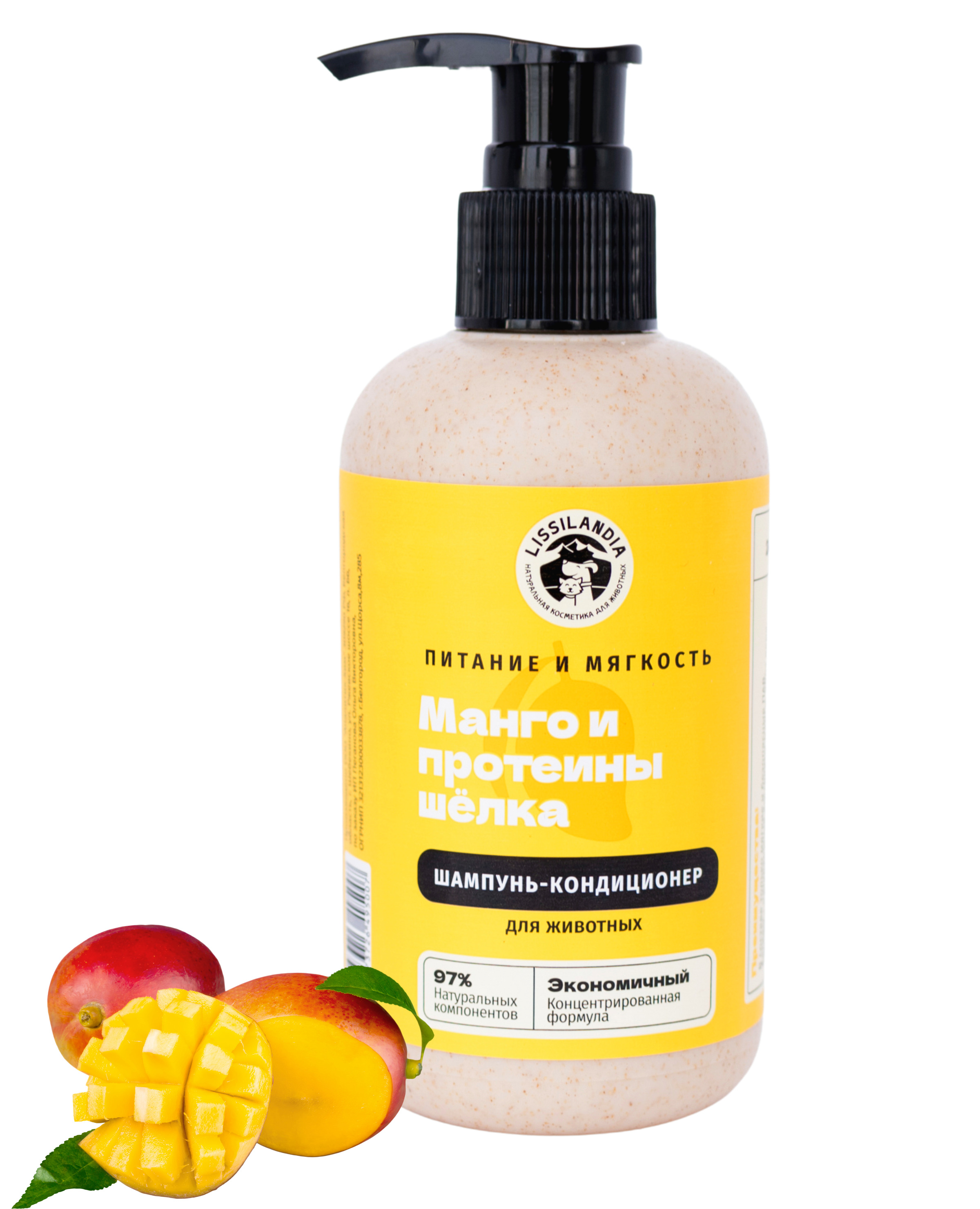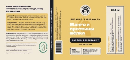 Шампунь-кондиционер питательный восстанавливающий LissiLandia Манго и Протеины шелка