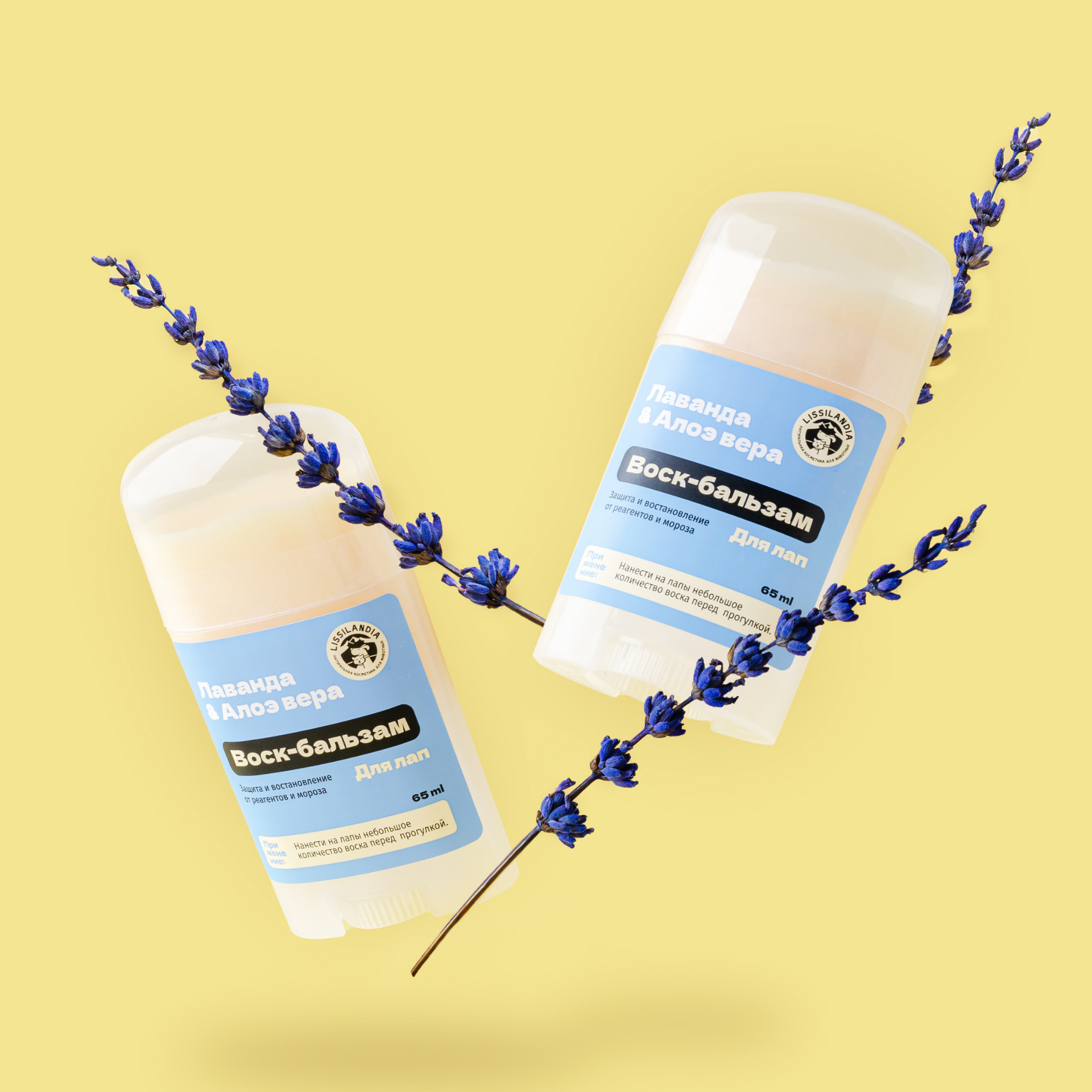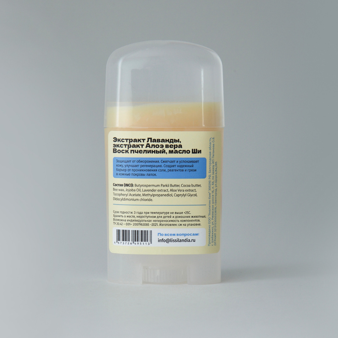 Воск-бальзам для защиты лапок от реагентов и мороза LissiLandia Лаванда и Алоэ вера