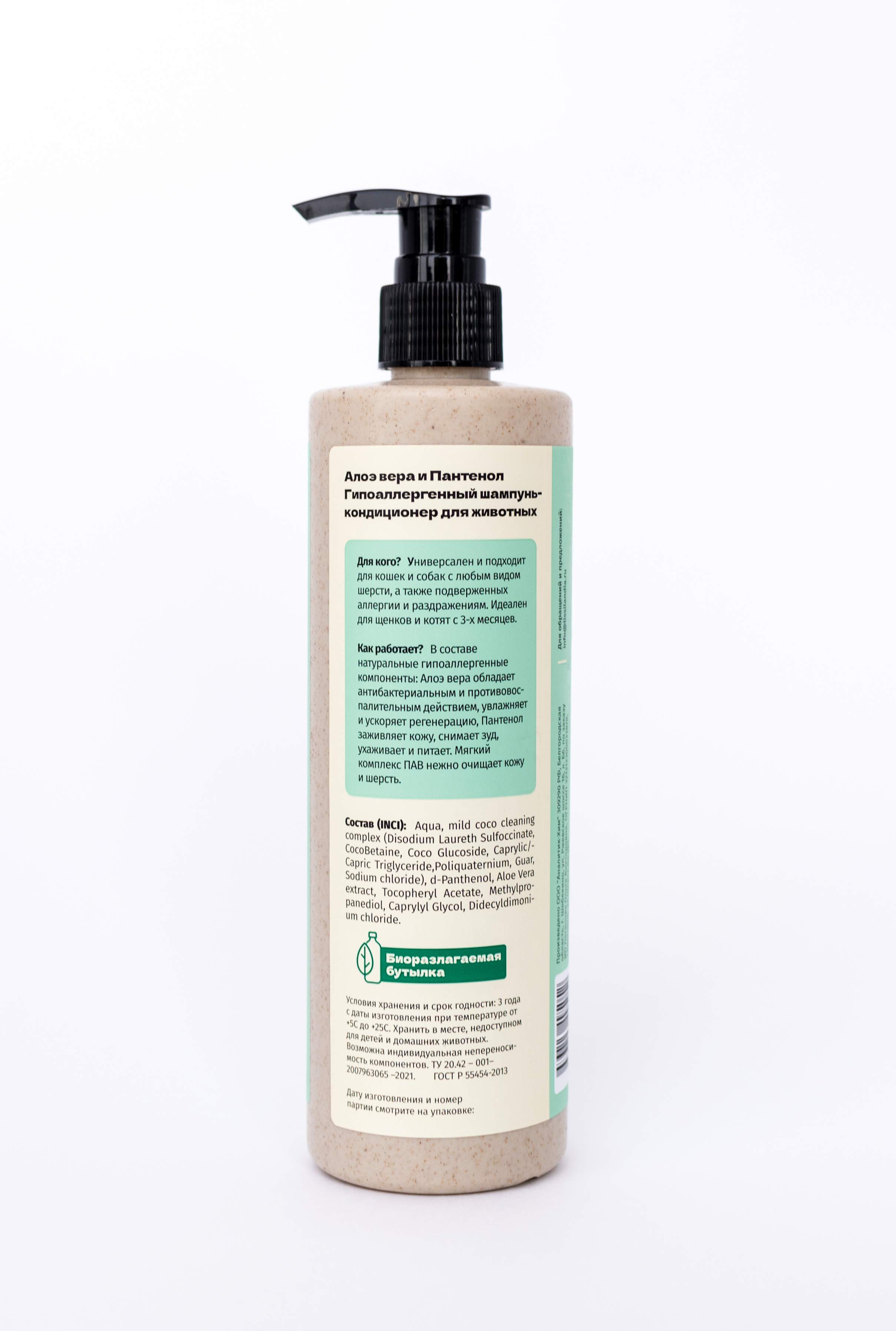 Шампунь-кондиционер гипоаллергенный Алоэ вера & Пантенол для животных с 3-х месяцев