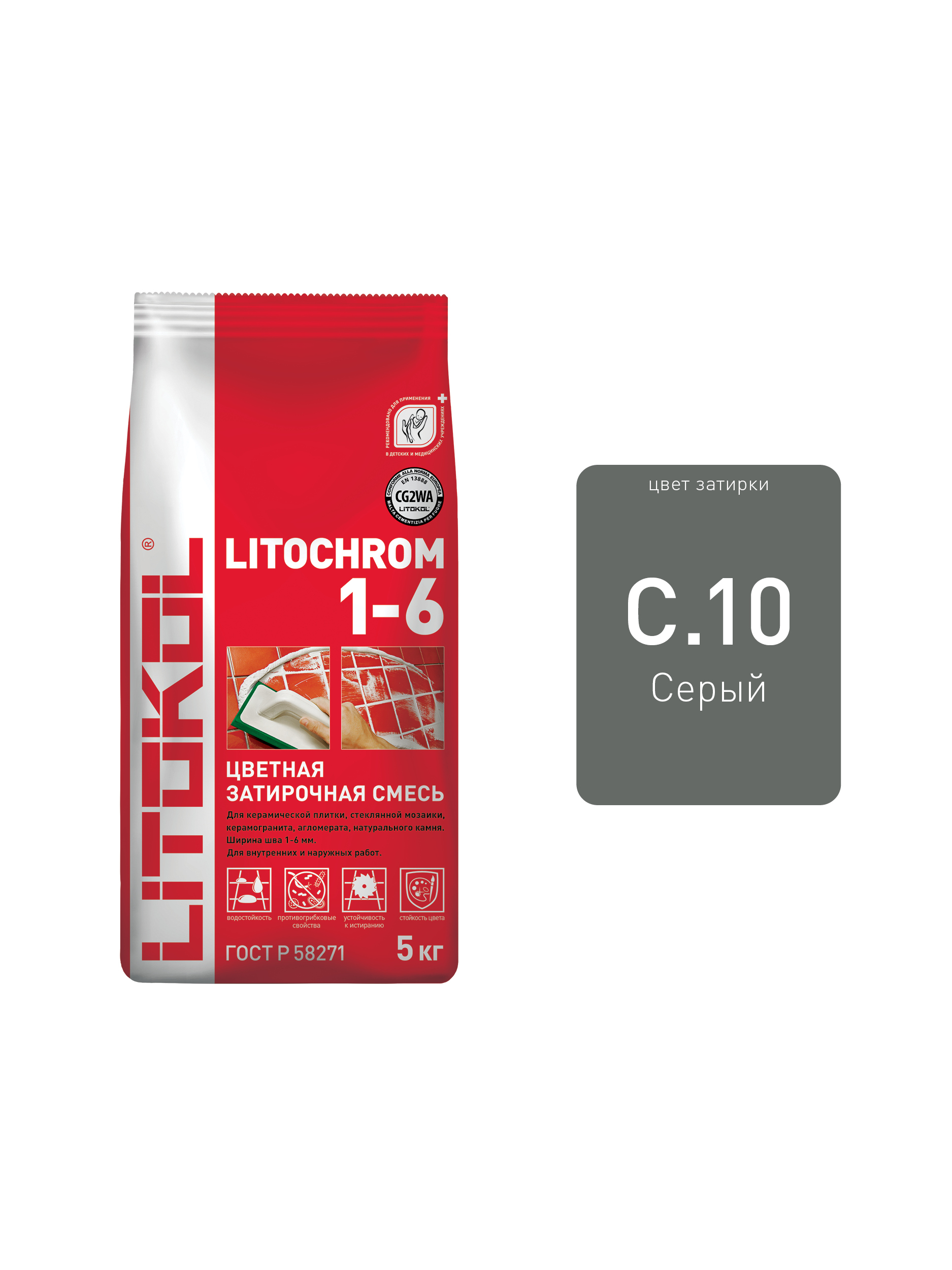 Затирка LITOKOL LITOCHROM 1-6 C.10 серый 5 кг