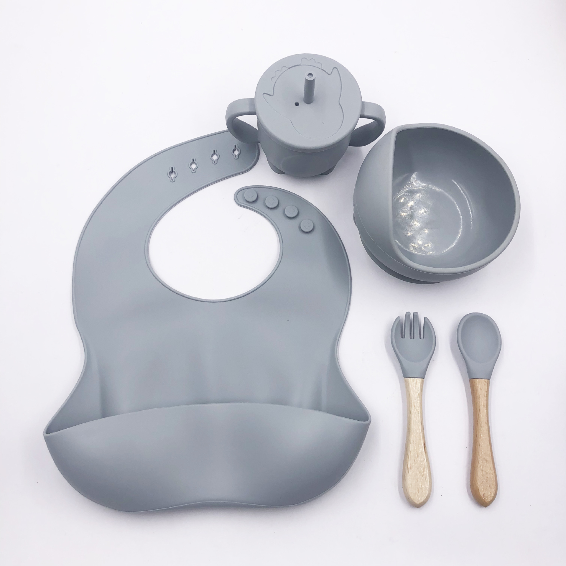 Набор детской силиконовой посуды для кормления 5 предметов (тарелка,ложка,вилка,поильник,нагрудник)