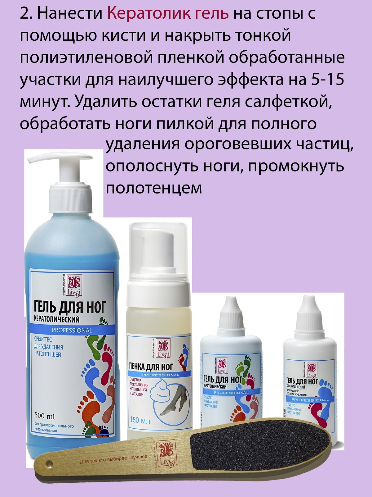 Livsi Pro гель для педикюра и очищения пяток. Удаление огрубевшей кожи, натоптышей, сухих мозолей