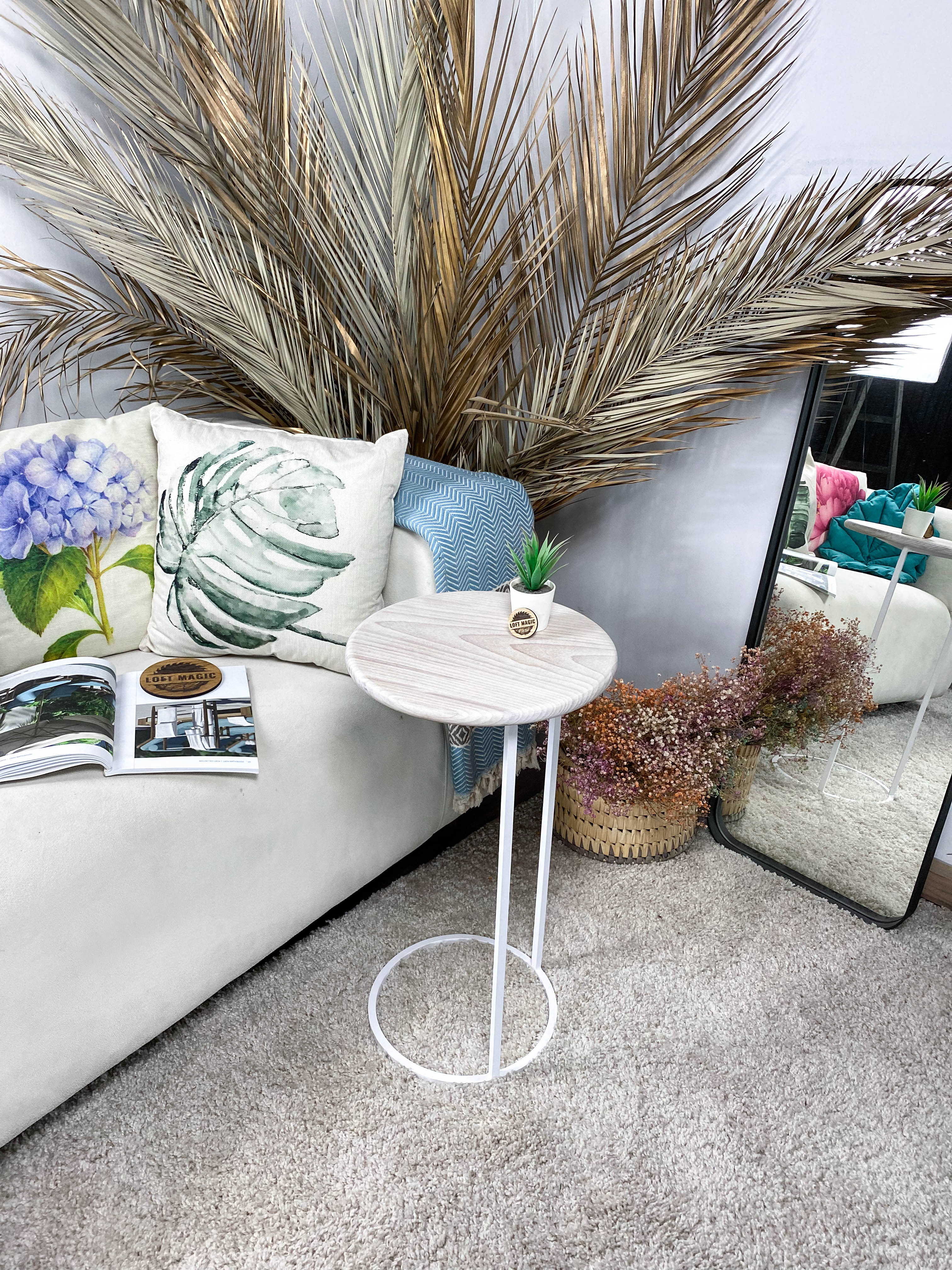 Приставной столик LoftMagic Beech Steel, 35х35х63 см