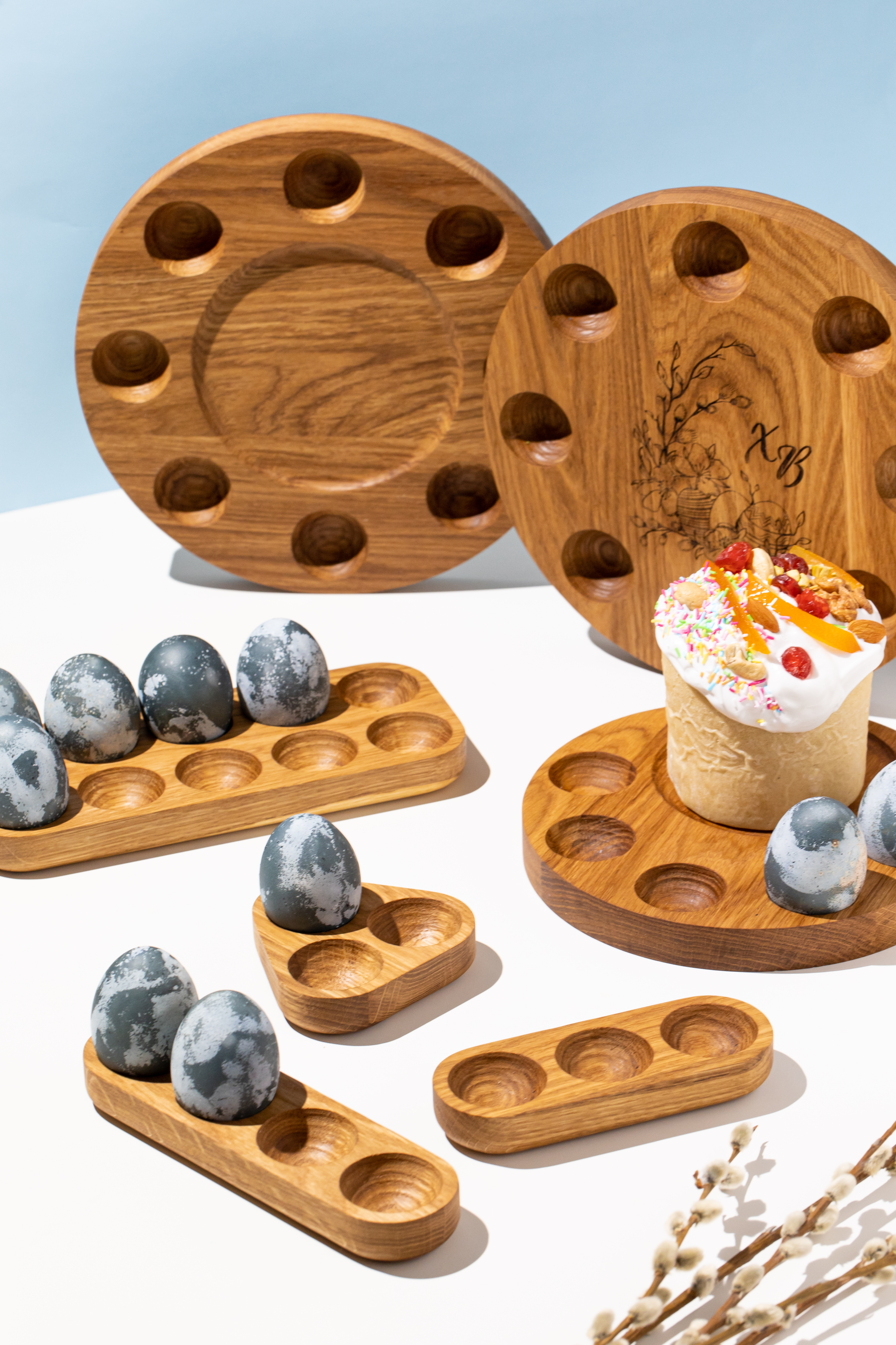 Подставка для кулича и 8 яиц пасхальная, дуб, 25х25 см, натуральный цвет
