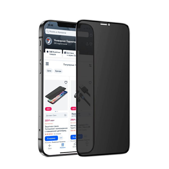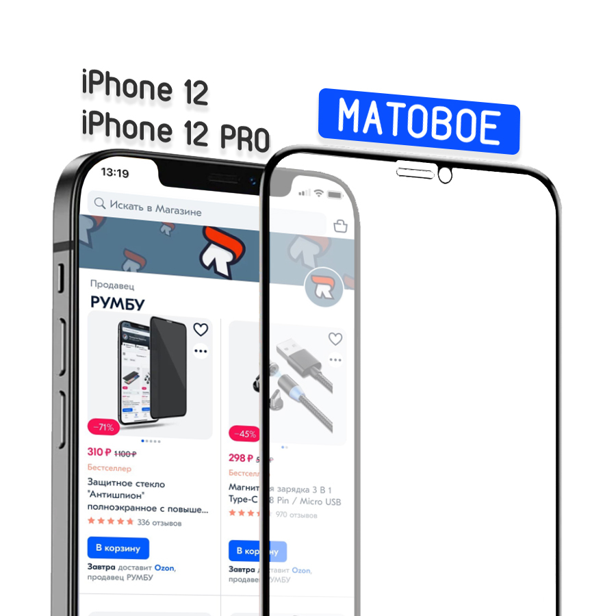 Защитное стекло "Антишпион" полноэкранное с повышенной цветопередачей для iPhone 12 и iPhone 12 PRO