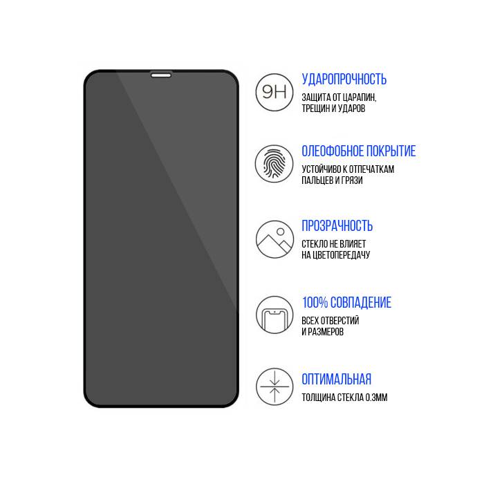 Защитное стекло "Антишпион" полноэкранное с повышенной цветопередачей для iPhone 11 и iPhone XR