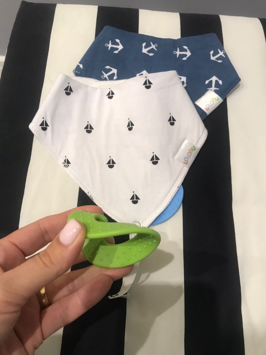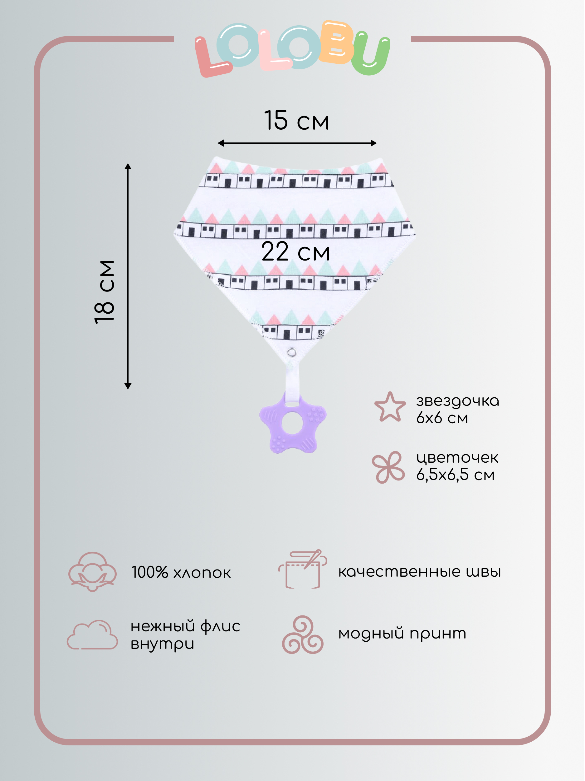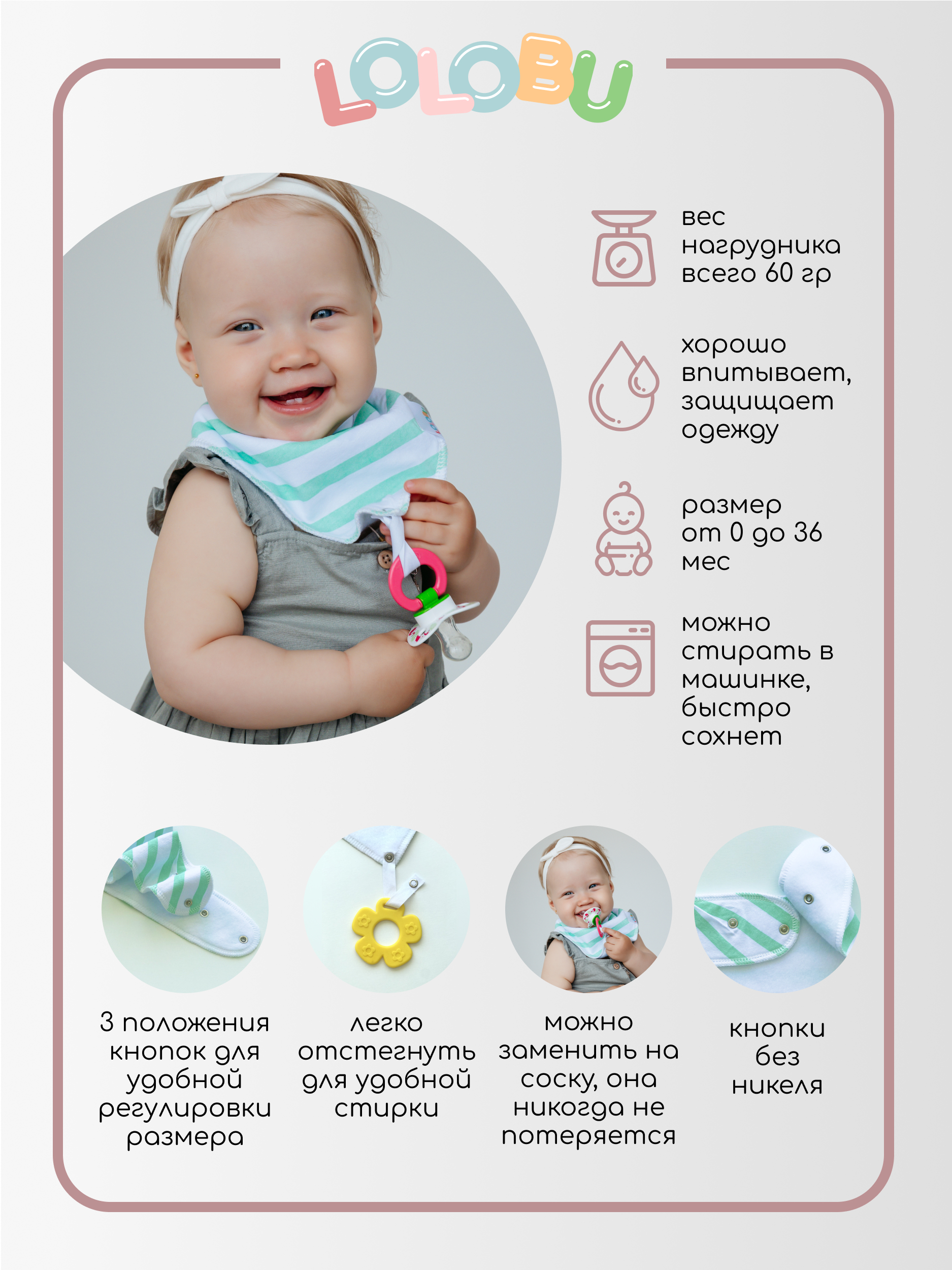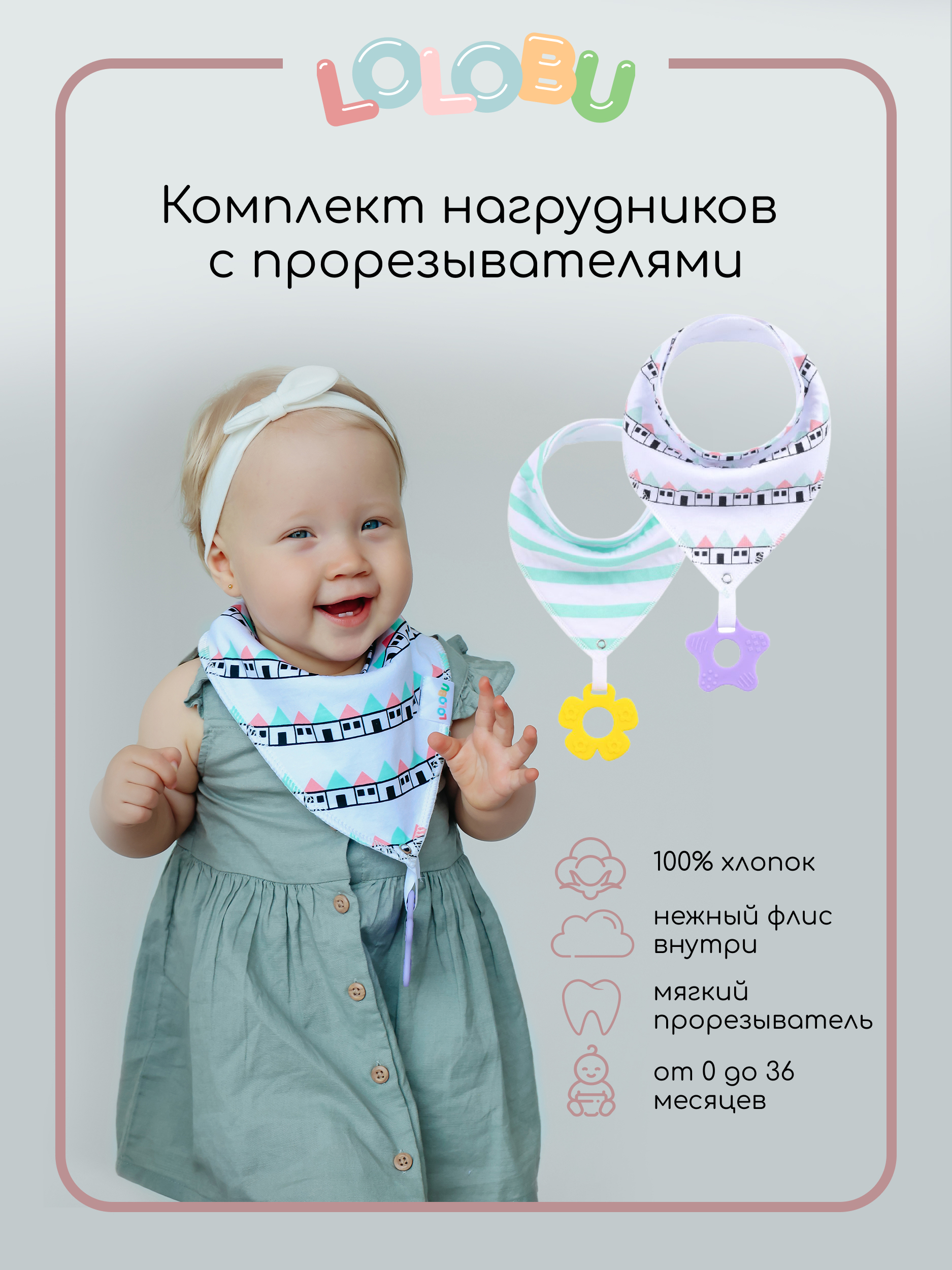 Нагрудник для кормления на кнопке с прорезывателем LOLOBU / комплект 2 шт.