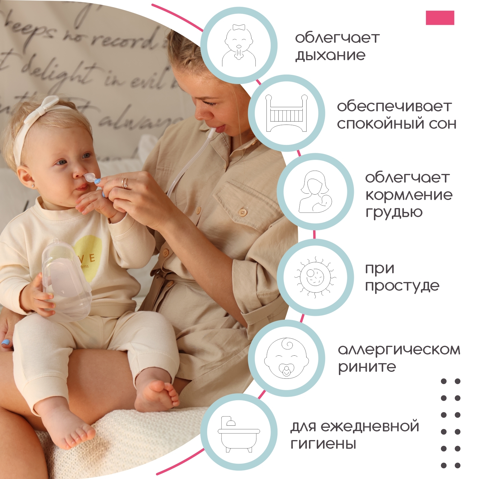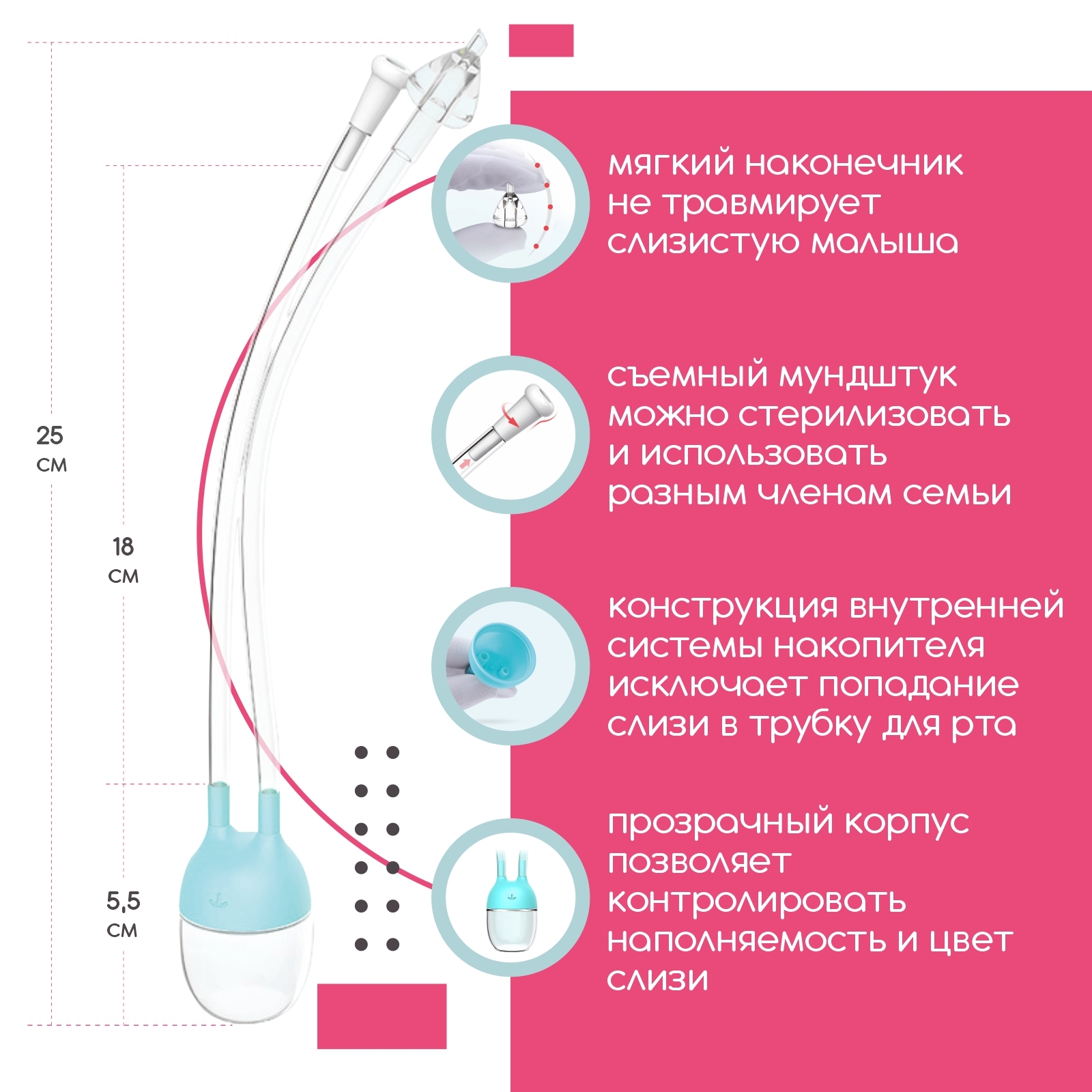 Аспиратор назальный детский для удаления слизистых выделений с мягким наконечником, в футляре / 0+