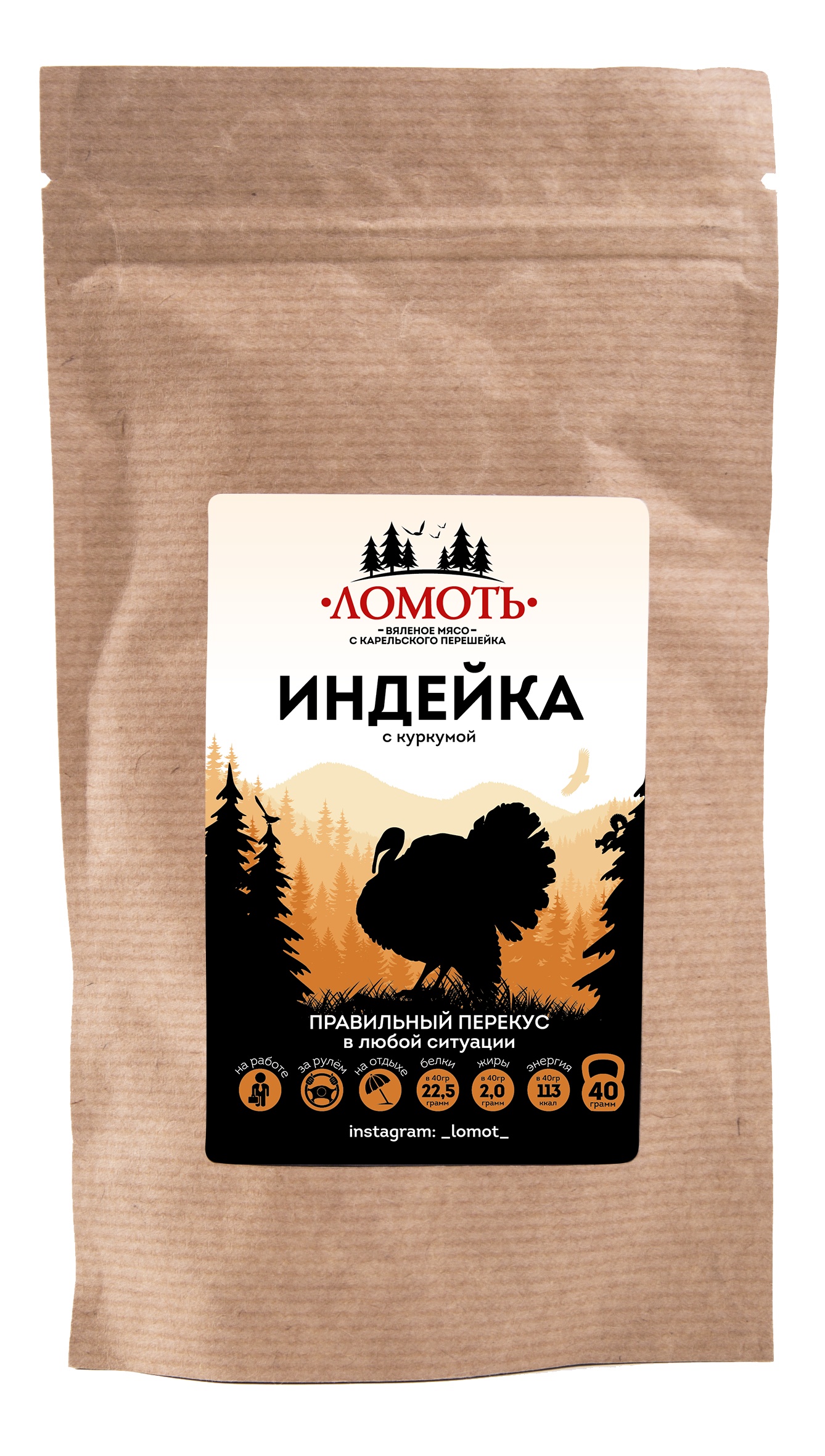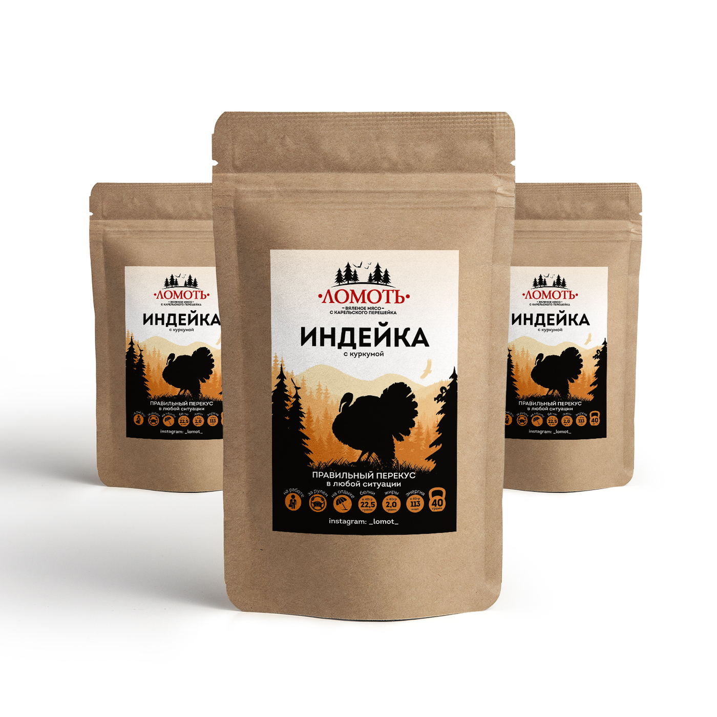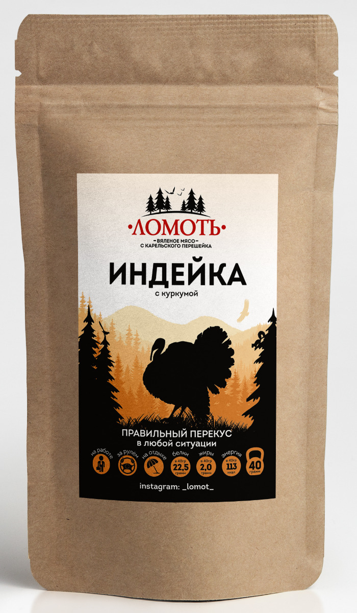 Вяленое мясо Ломоть, ИНДЕЙКА С КУРКУМОЙ 3 пачки.