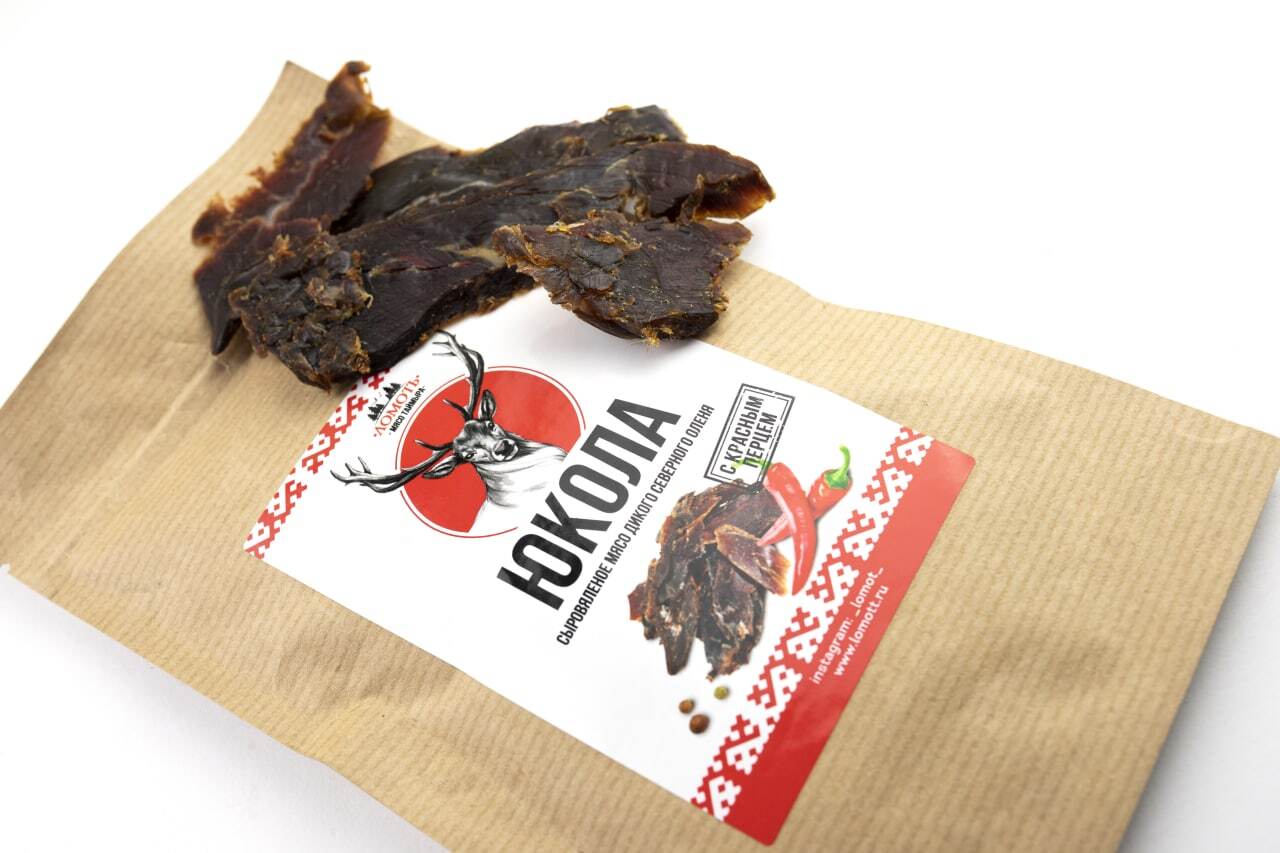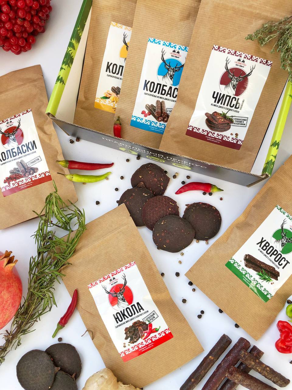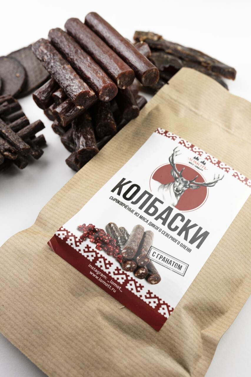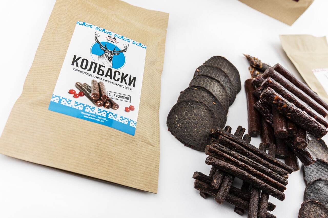 Мясо дикого северного оленя ТМ Ломоть "Дикий сет" (ЮКОЛА, ЧИПСЫ, КОЛБАСКИ БРУСНИКА )