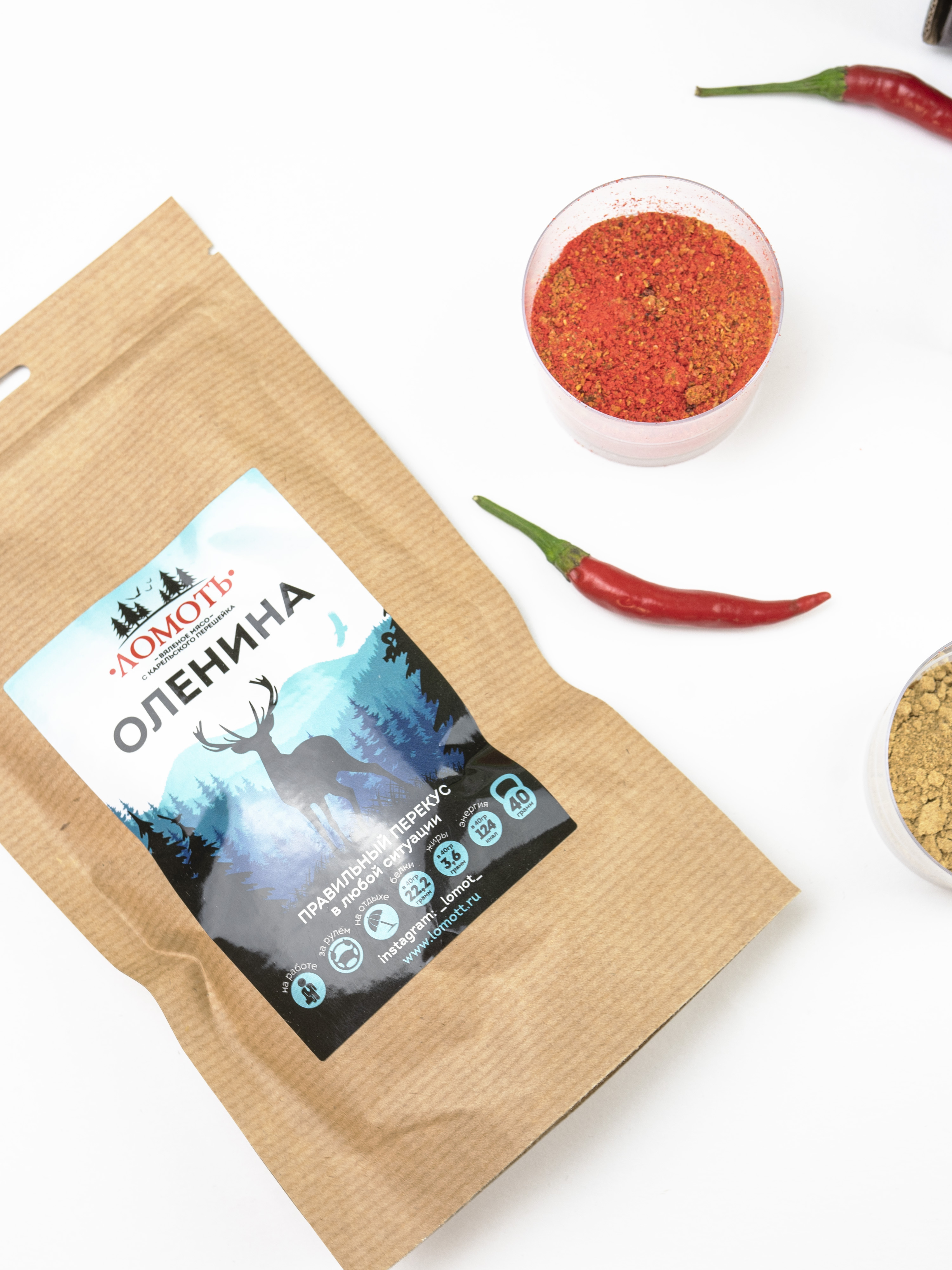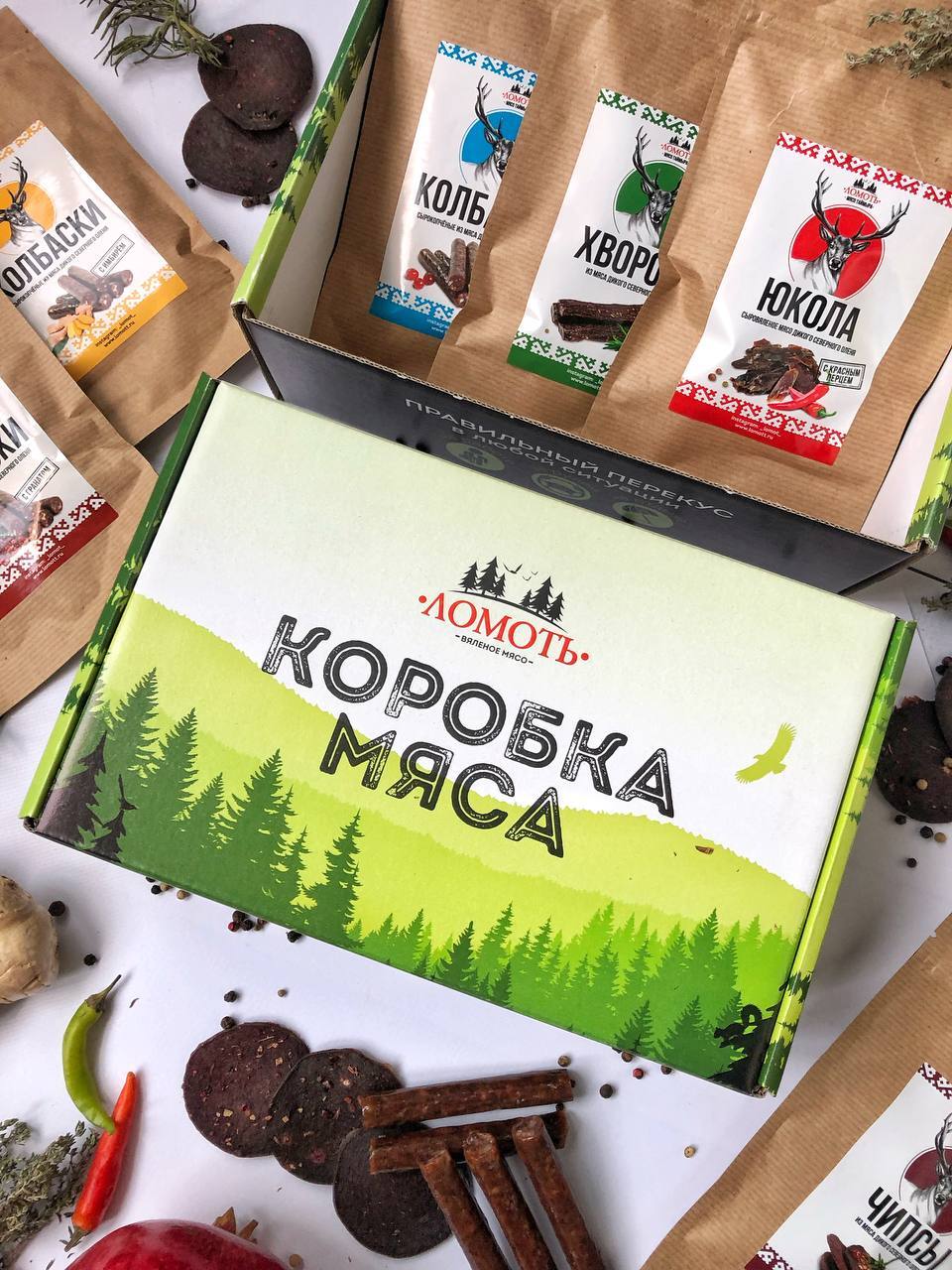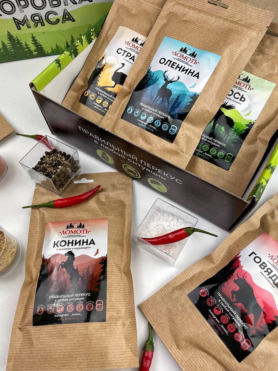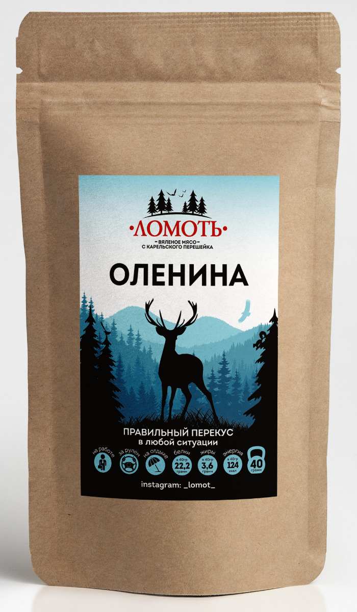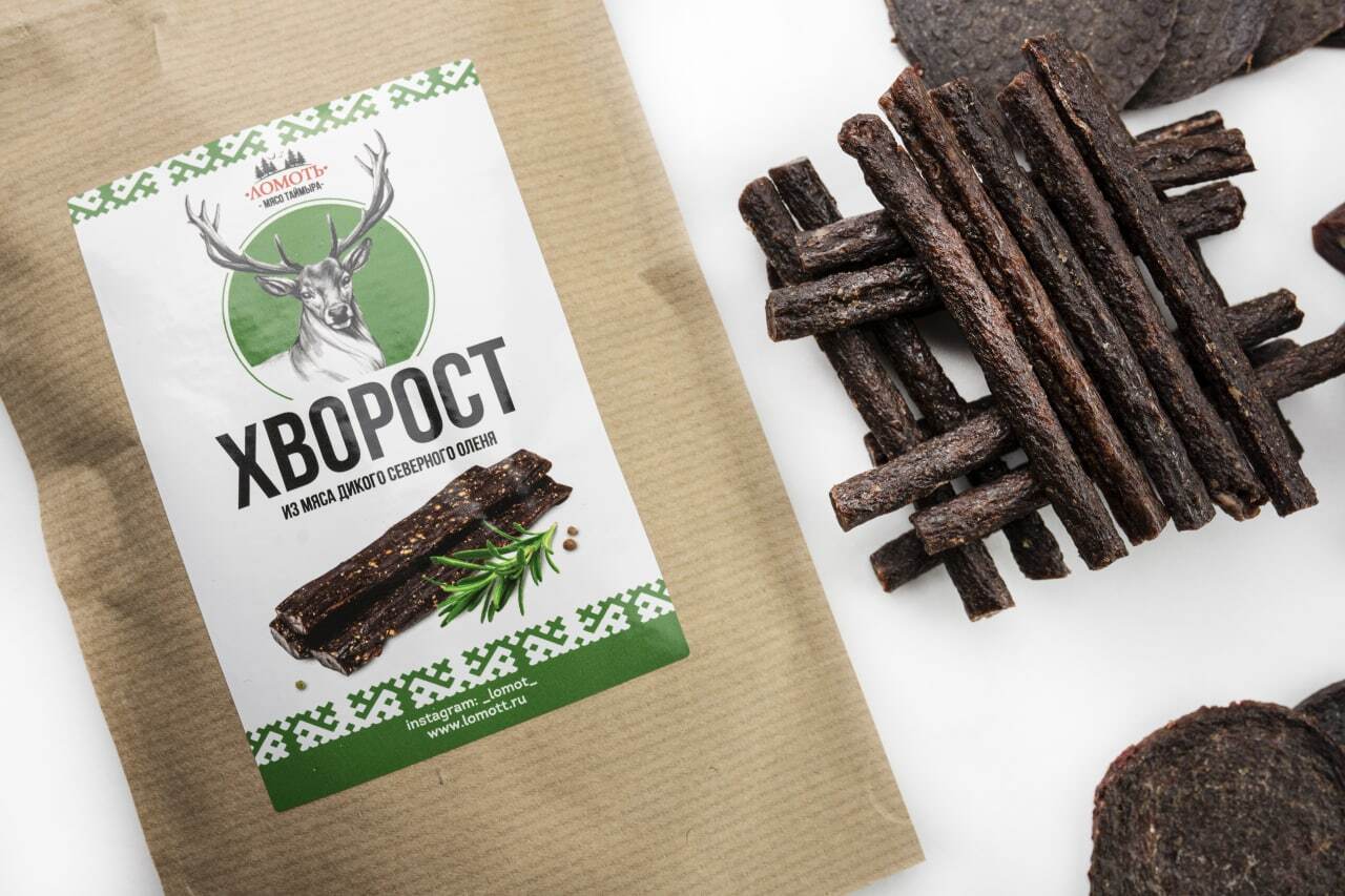 Мясо дикого северного оленя ТМ Ломоть "Дикий сет" (ЮКОЛА, ЧИПСЫ, КОЛБАСКИ БРУСНИКА )