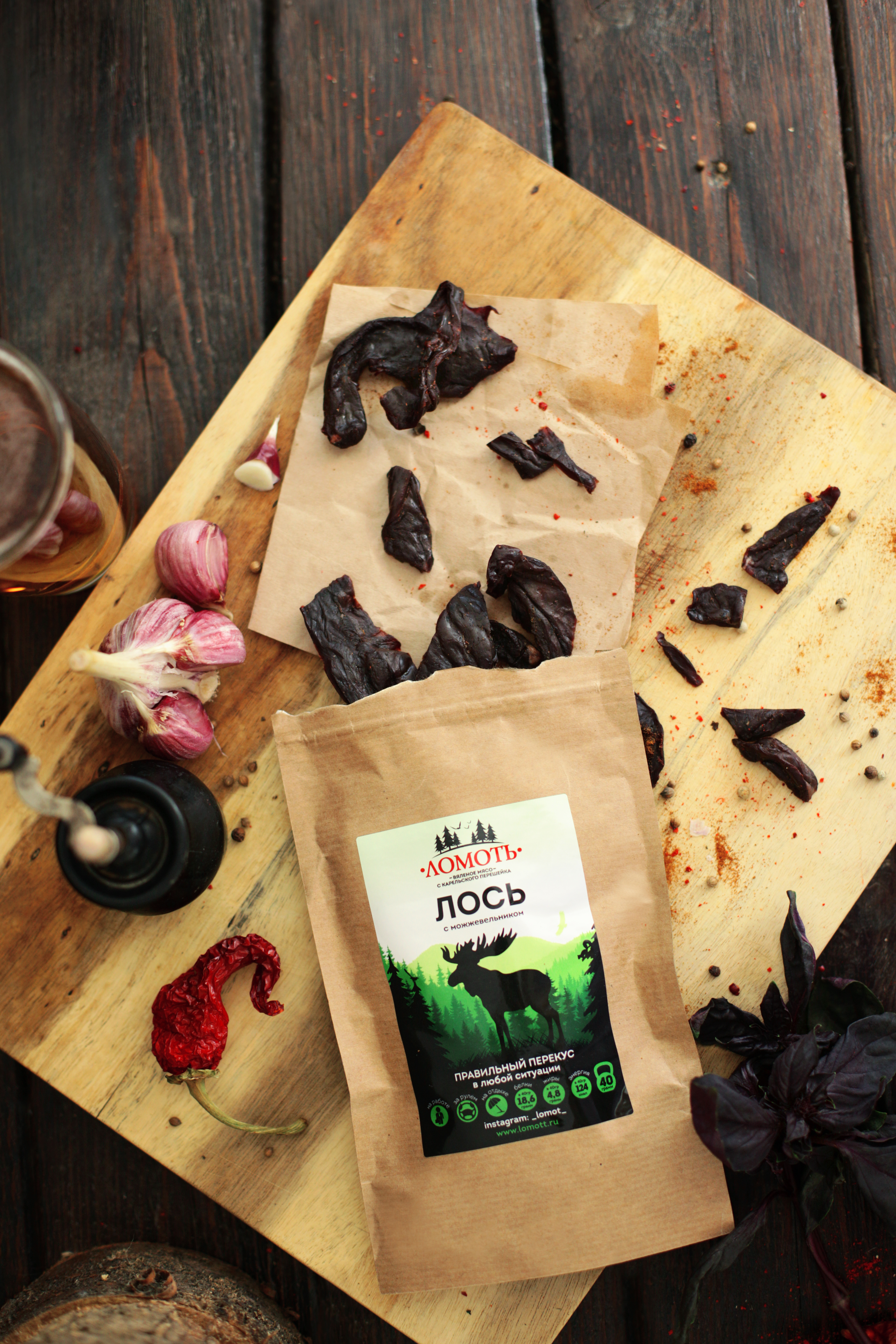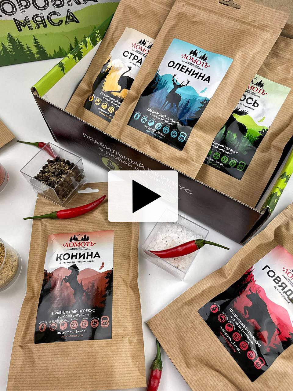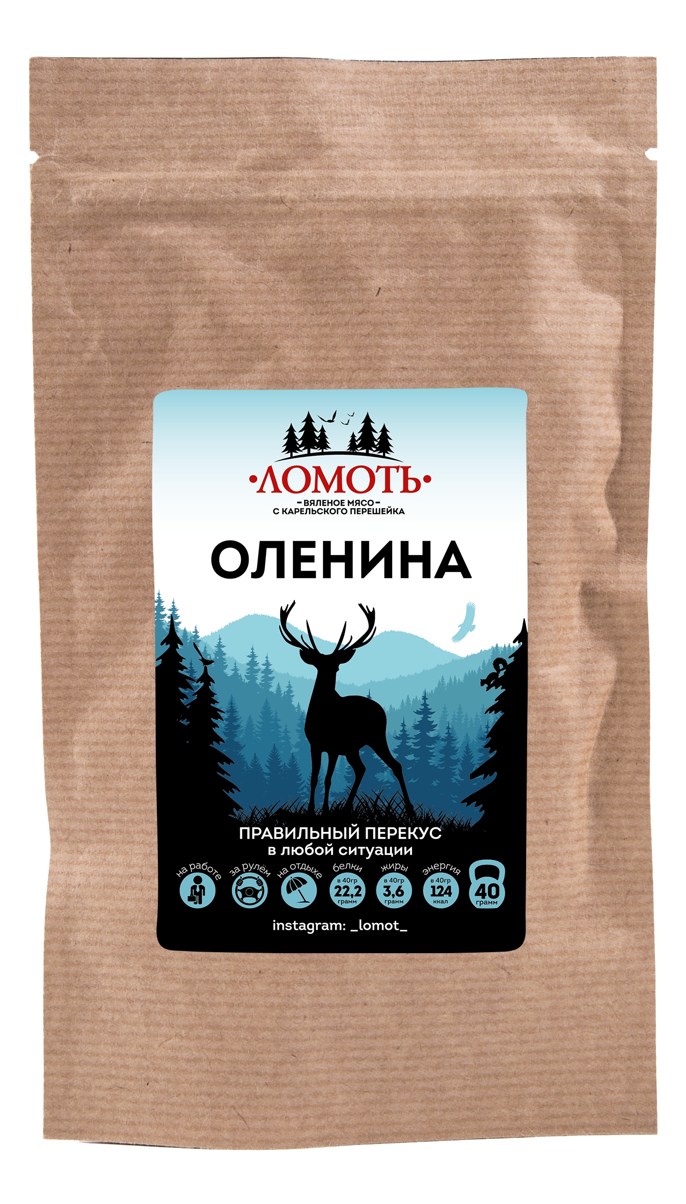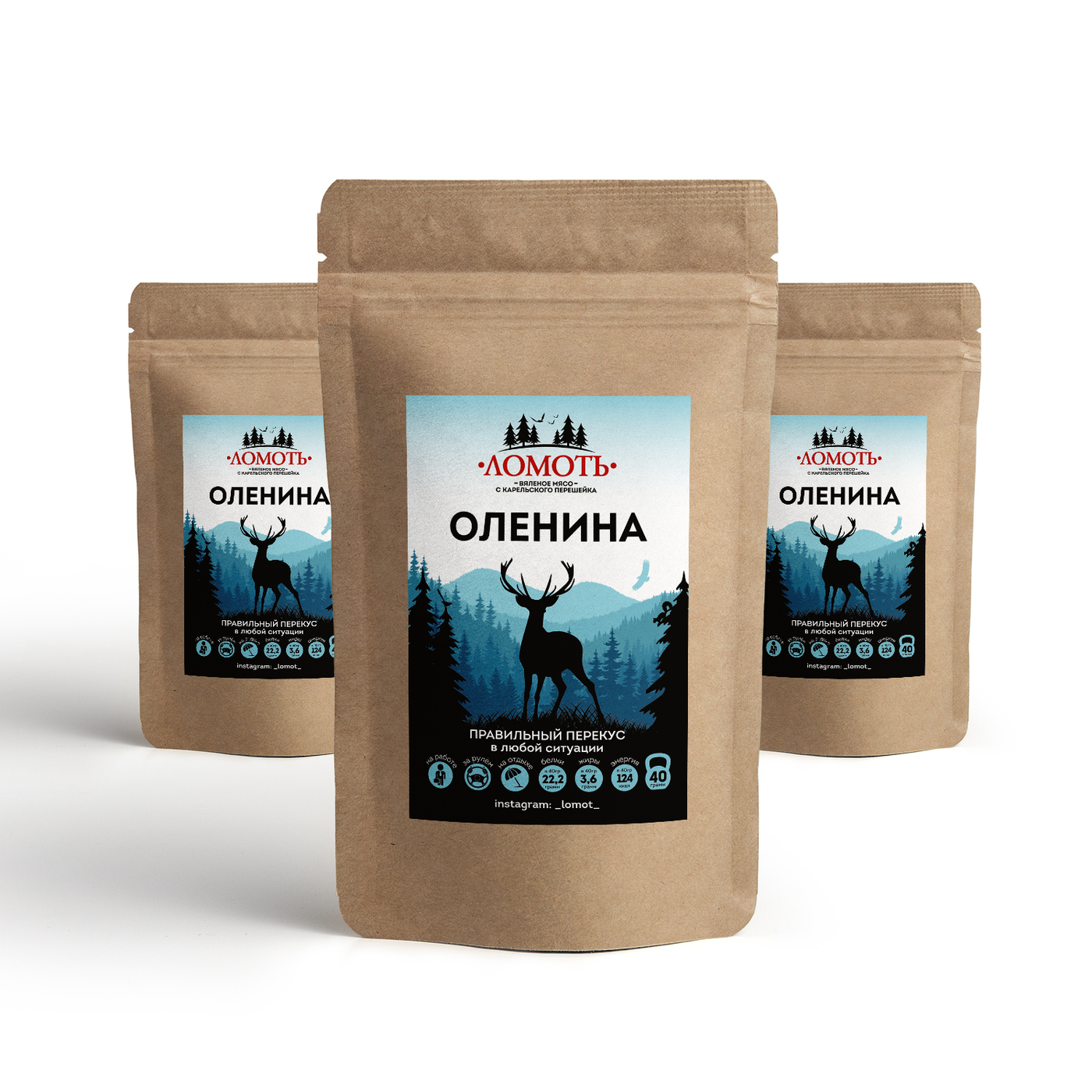 Мясо дикого северного оленя ТМ Ломоть "Дикий сет" (ЮКОЛА, ЧИПСЫ, КОЛБАСКИ БРУСНИКА )