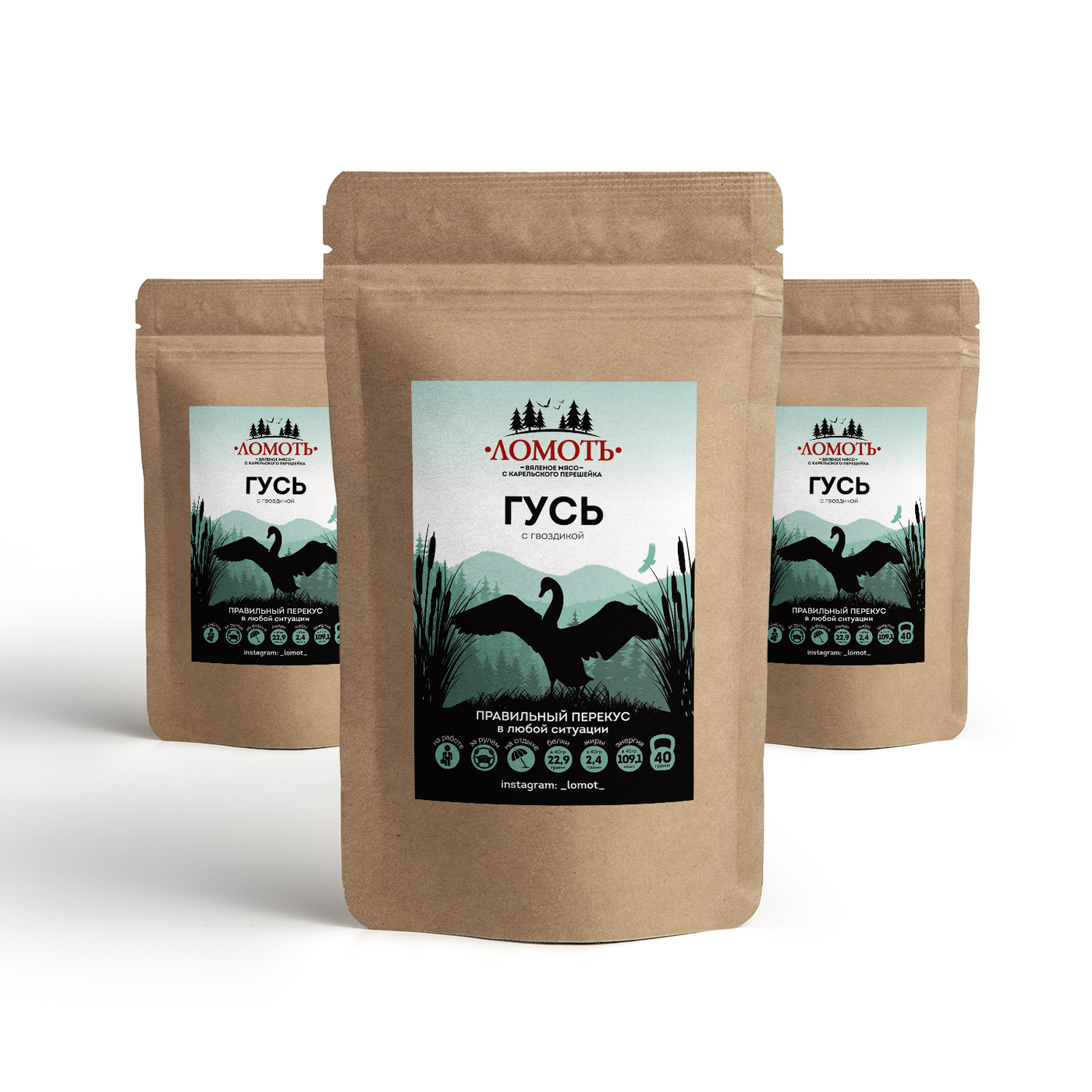 Вяленое мясо Ломоть, ломтики ГУСЯ С ГВОЗДИКОЙ 3 пачки