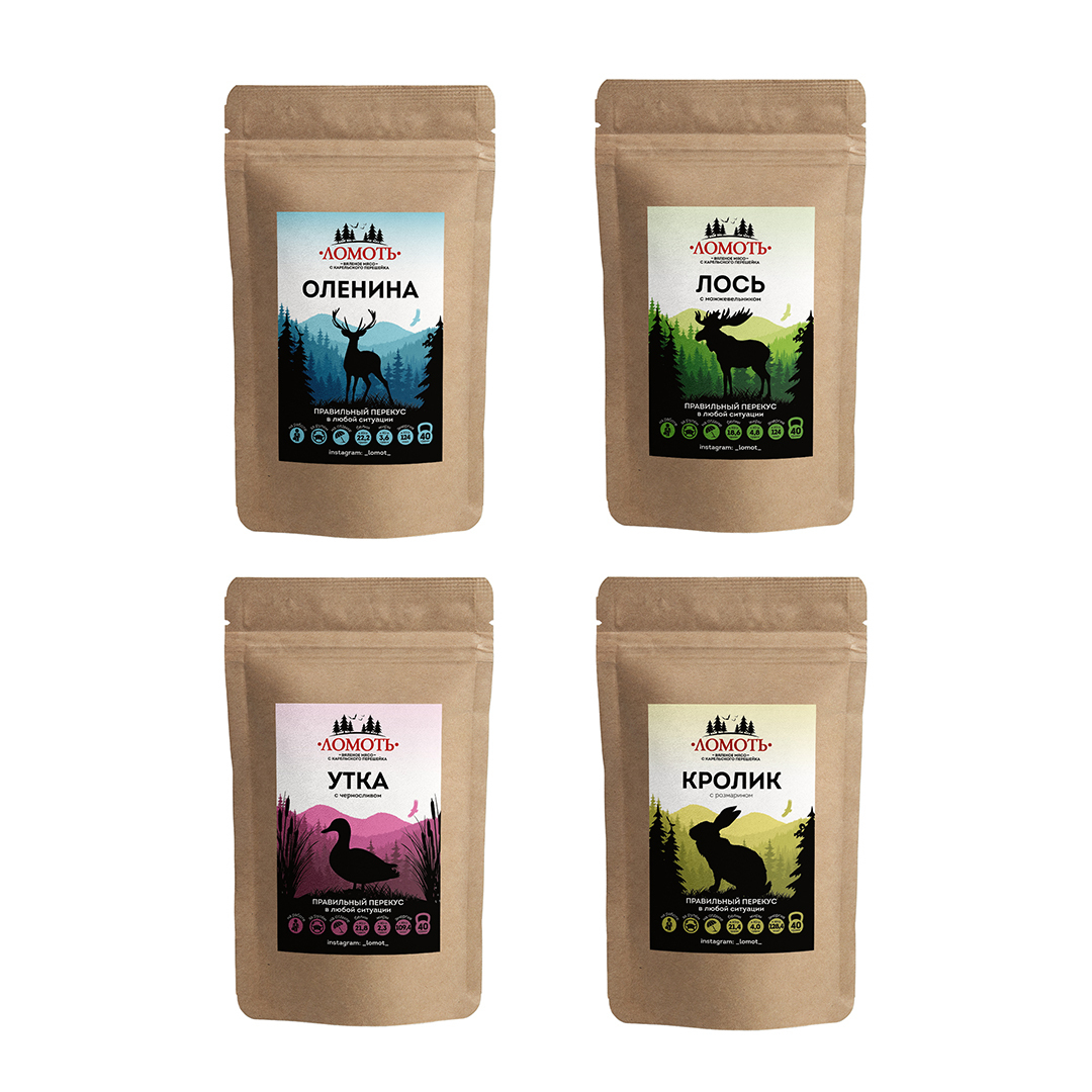 Вяленое мясо Ломоть, сет "Дичь" 4 пачки.