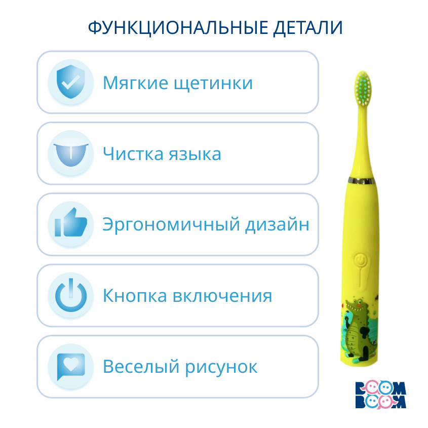 Электрическая зубная щетка "Крокодильчик" плюс 7 дополнительных насадок и USB, желтая