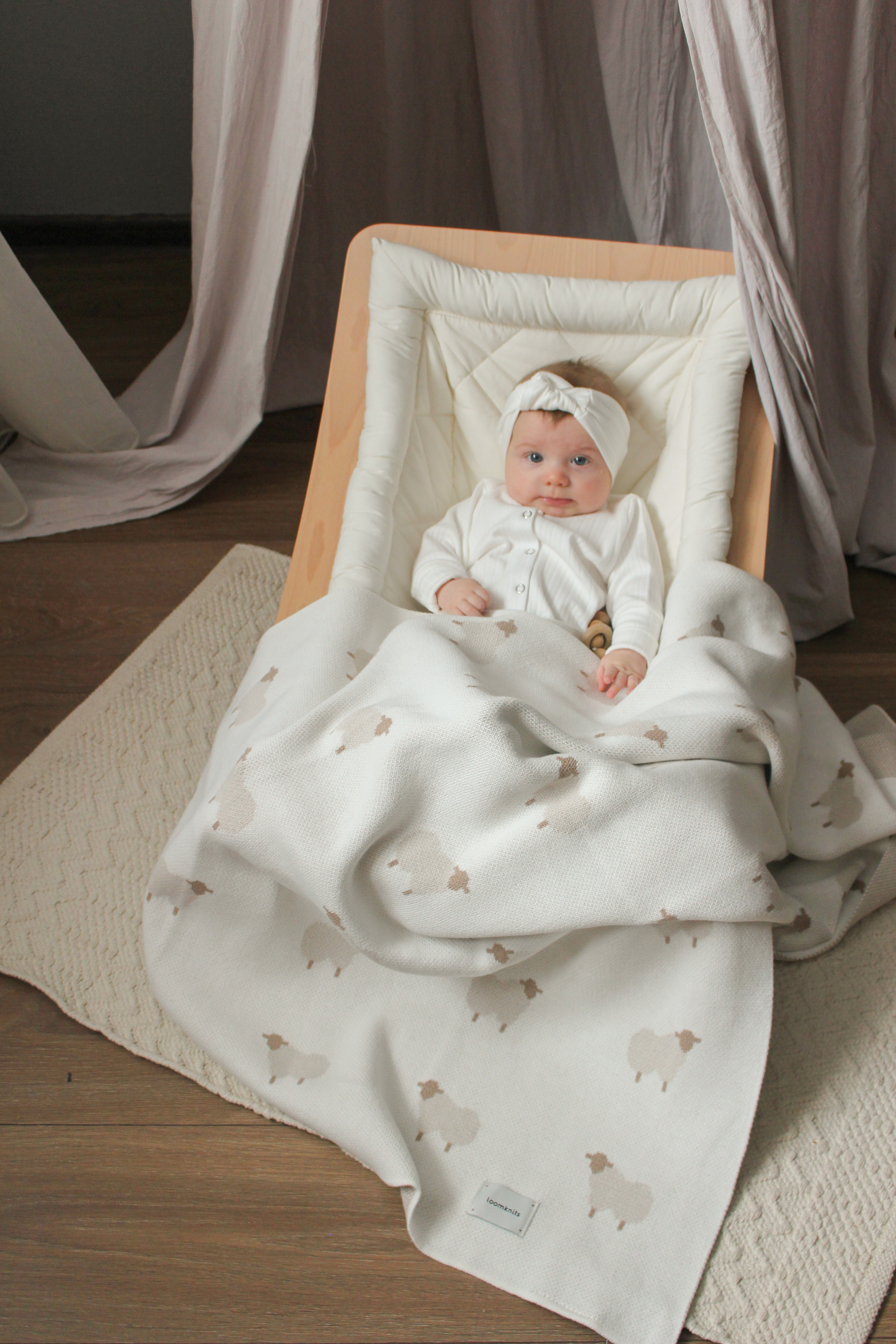 Плед детский для новорожденных вязаныйAnimal Sheeps Loomknits Кремовый