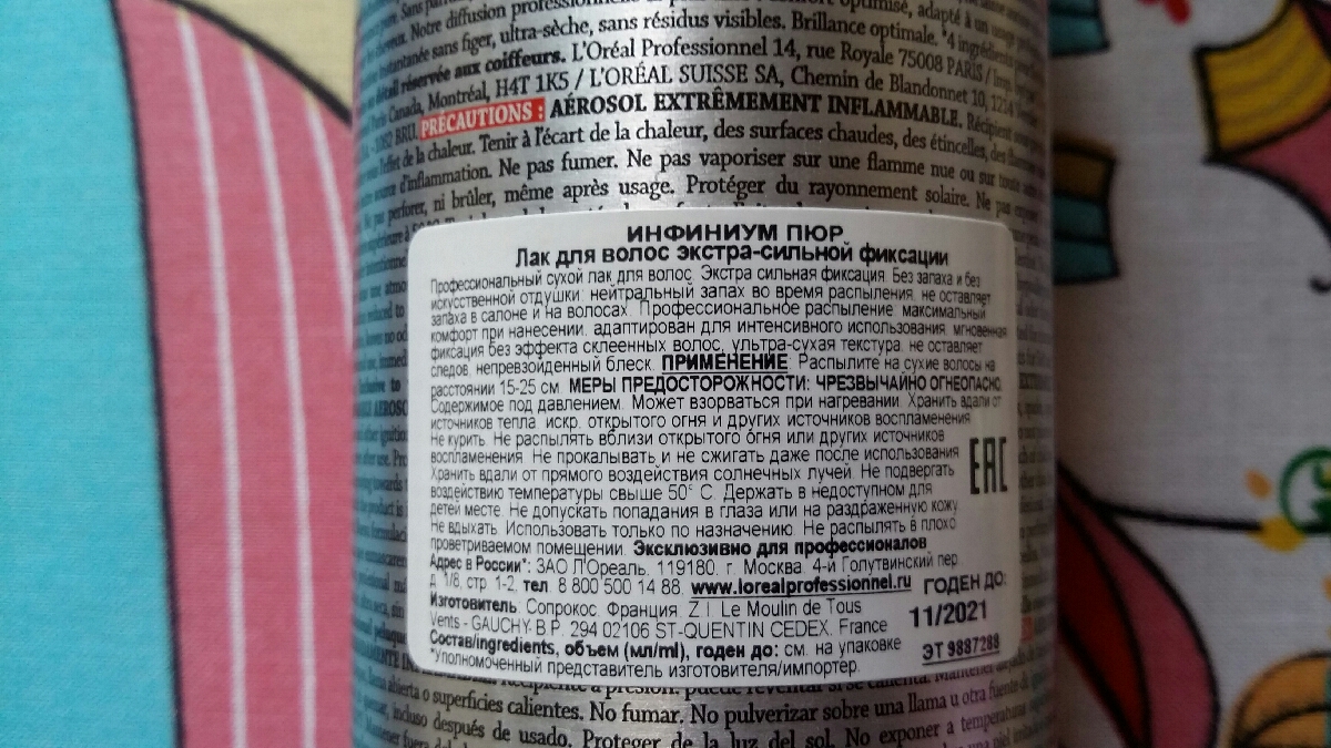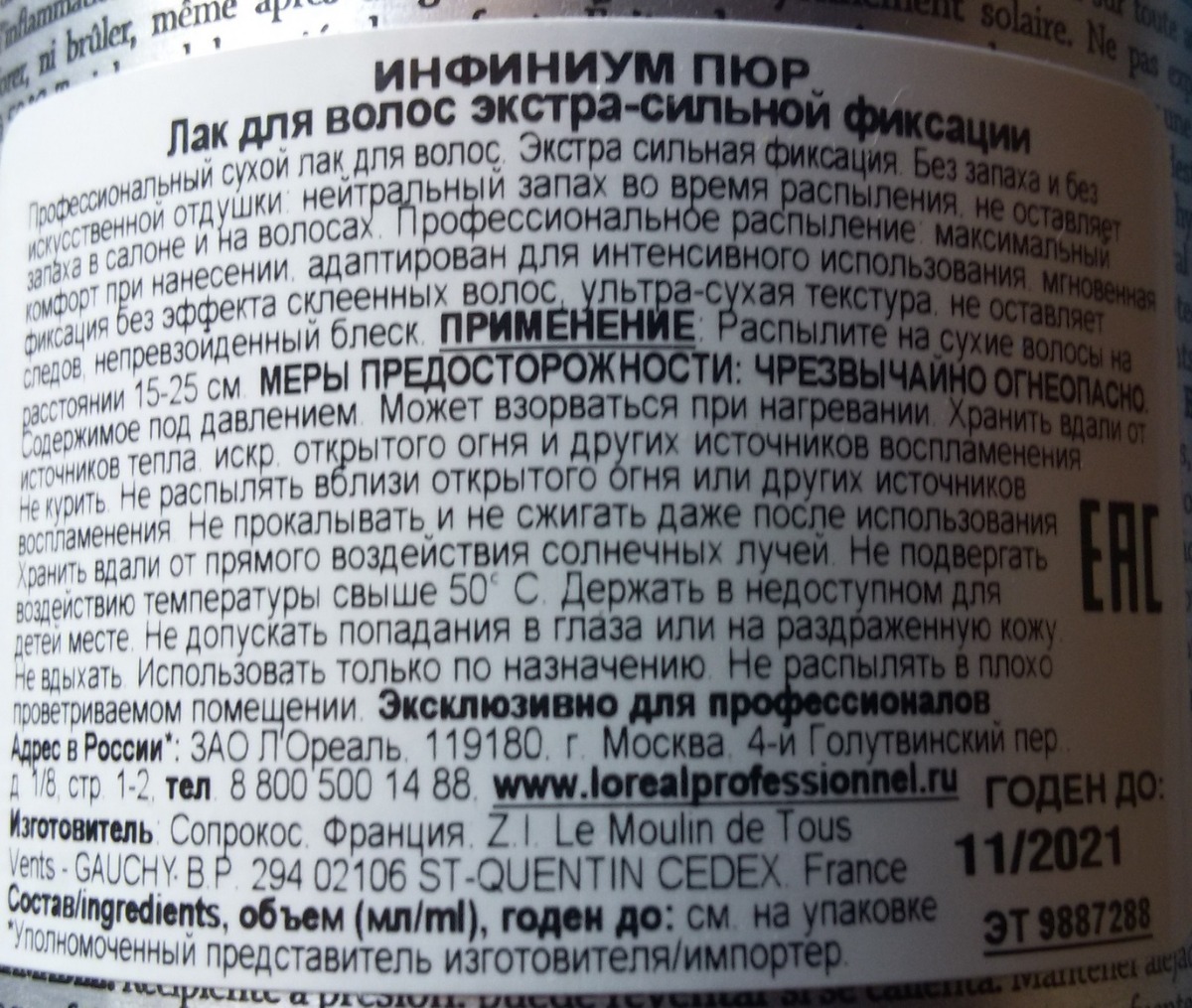 L'Oreal Professionnel Лак без газа "Infinium Pure Extra Strong", экстрасильной фиксации, 500 мл