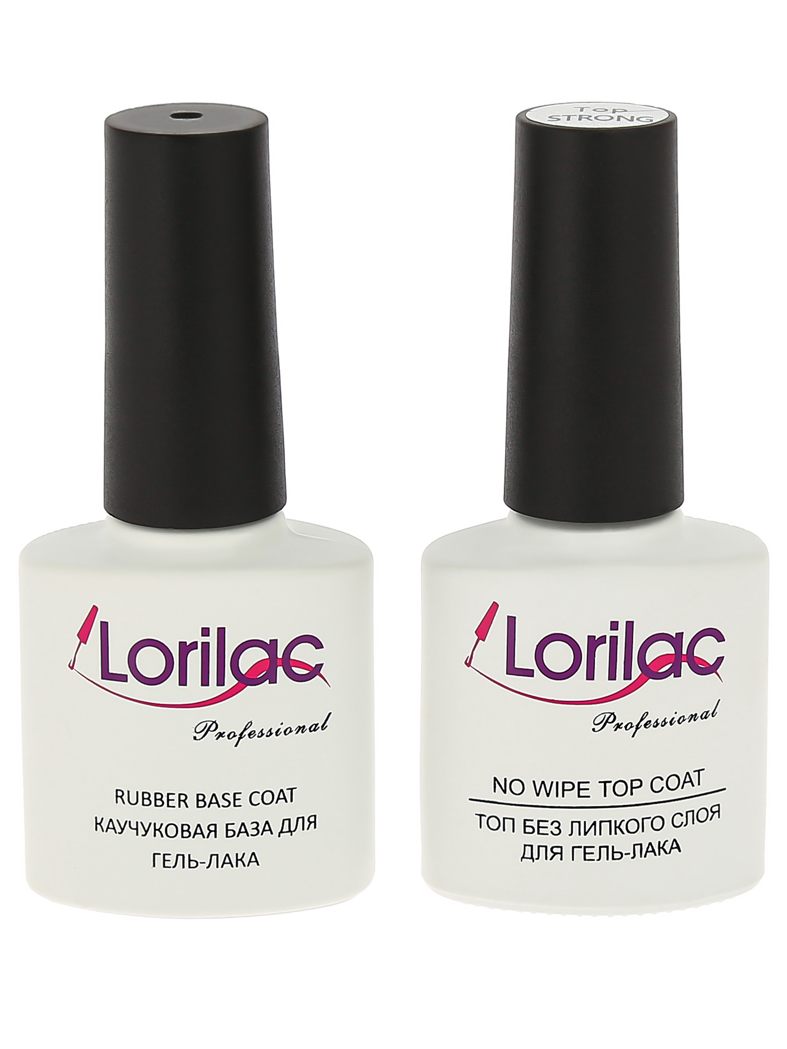 Lorilac Набор, топ без липкого слоя 10мл + каучуковая база 10мл для гель-лака.