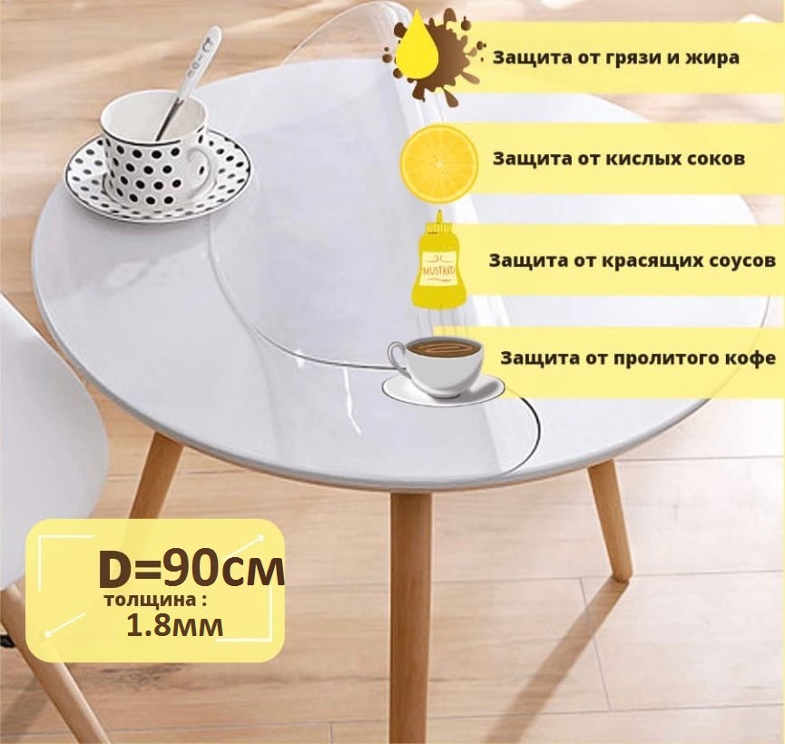 Круглая силиконовая скатерть 90см 1.8мм на стол / гибкое стекло ПВХ / накладка на стол