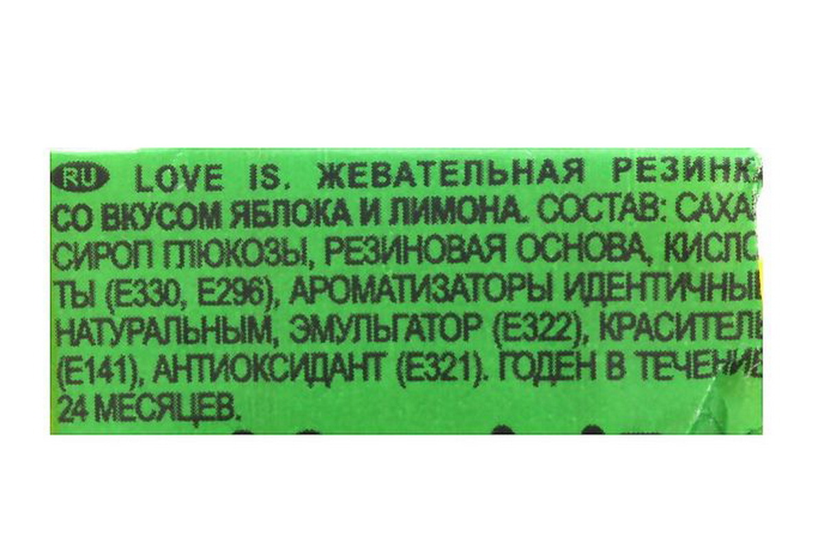 Love is жевательная резинка со вкусом яблока и лимона, 100 штук