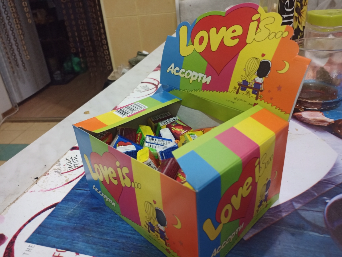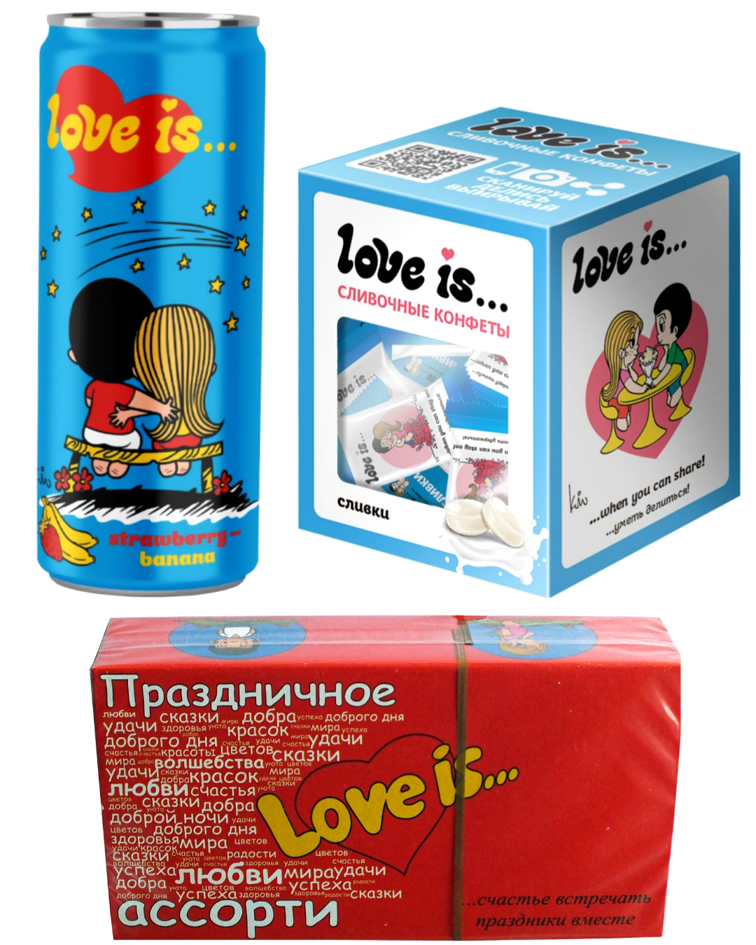 Комплект Love is, Жевательная резинка, конфеты, Газированный напиток (синий), 14 февраля