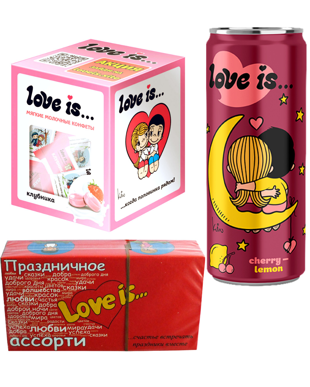 Комплект Love is, Жевательная резинка, конфеты, Газированный напиток (красный), 8 марта