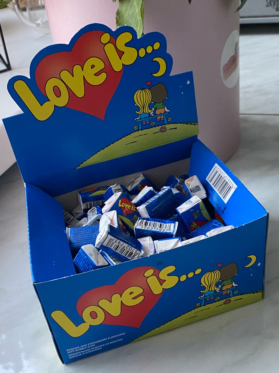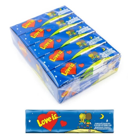Жевательная резинка LOVE IS СТИК Банан и Клубника, лове из , блок / 20шт, 1 шт / 25 гр