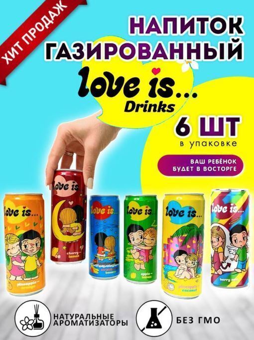 Напиток газированный Love is микс со всеми вкусами 330 мл, 6 шт / Лимонад