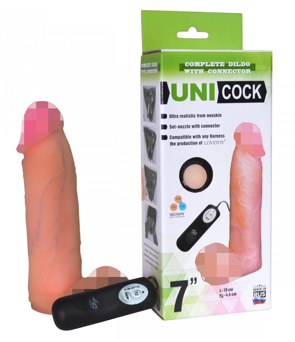 Насадка на член LoveToy Реалистичная насадка на пенис с вибропулей - 17,8 см.
