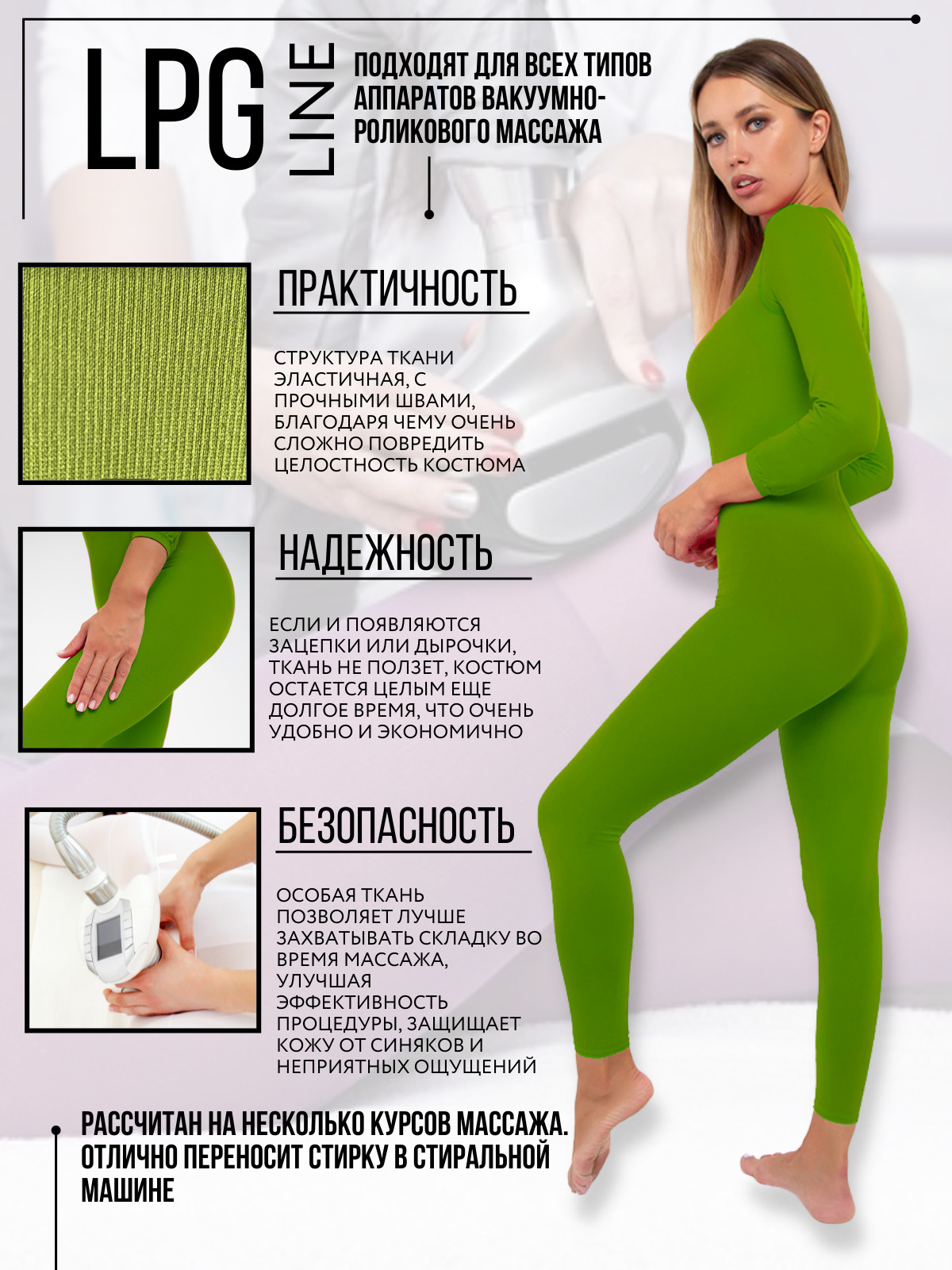 Костюм LPG универсальный, многоразовый, 100 DEN, S-L, фисташковый/для вакуумного, вакуумно-роликового массажа/комбинезон lpg