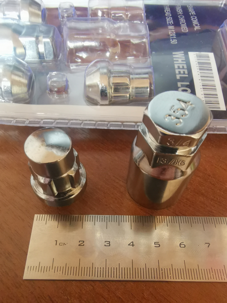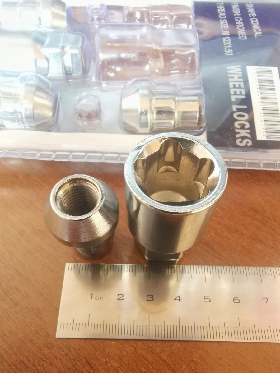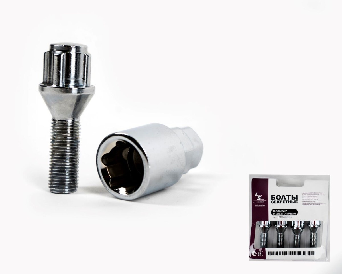 Гайки секретные конус M12x1.25 длина 32мм 2 ключа хром LS Wheels