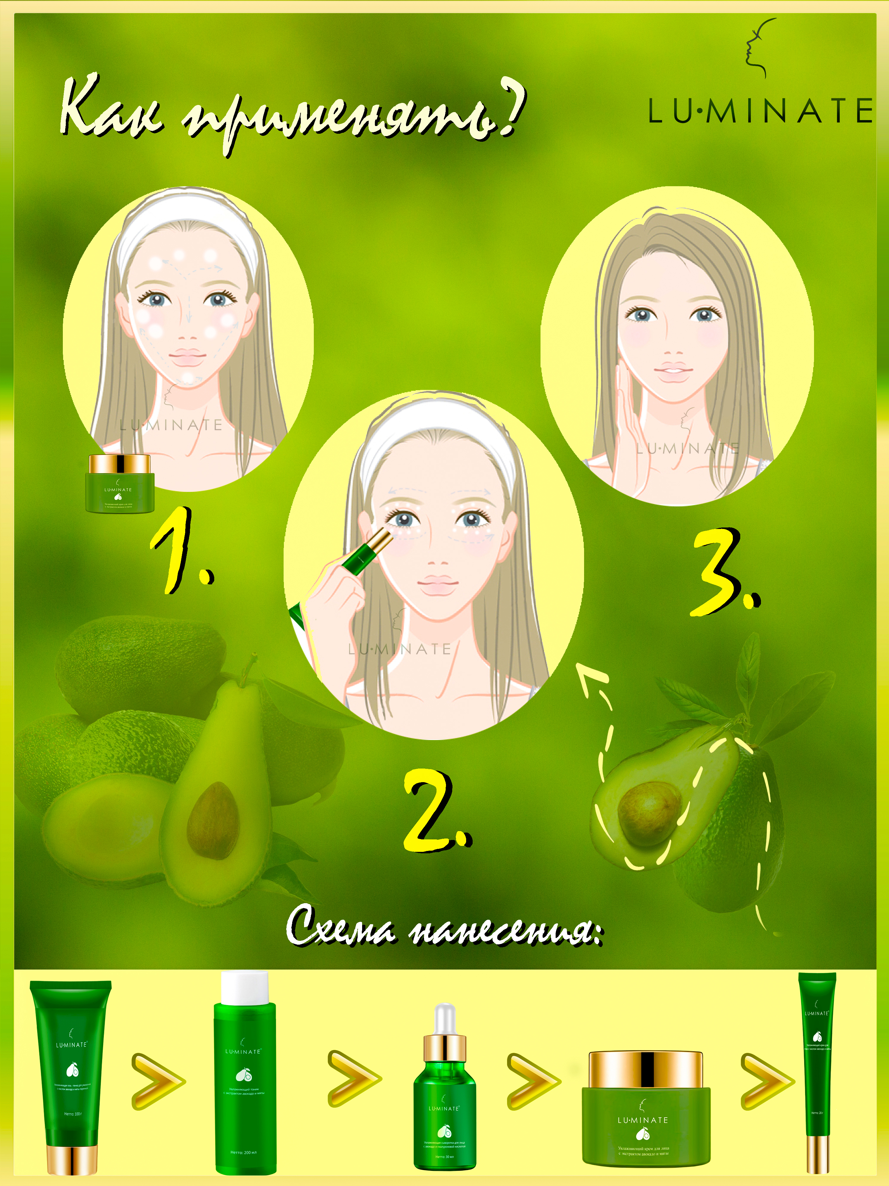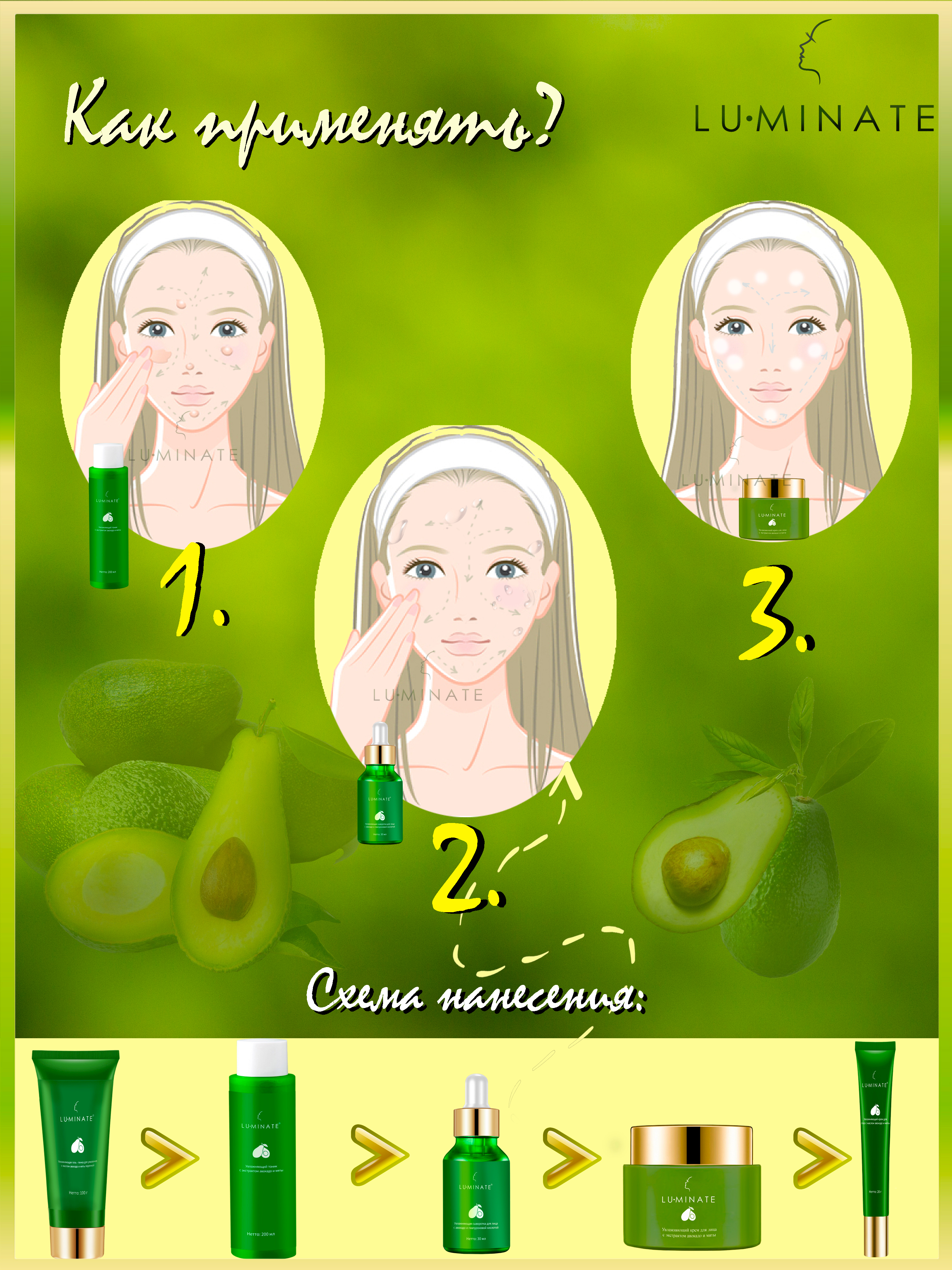 LU MINATE Тоник для лица увлажняющий антивозрастной с ниацинамид, экстрактом авокадо и мятой, 200 мл