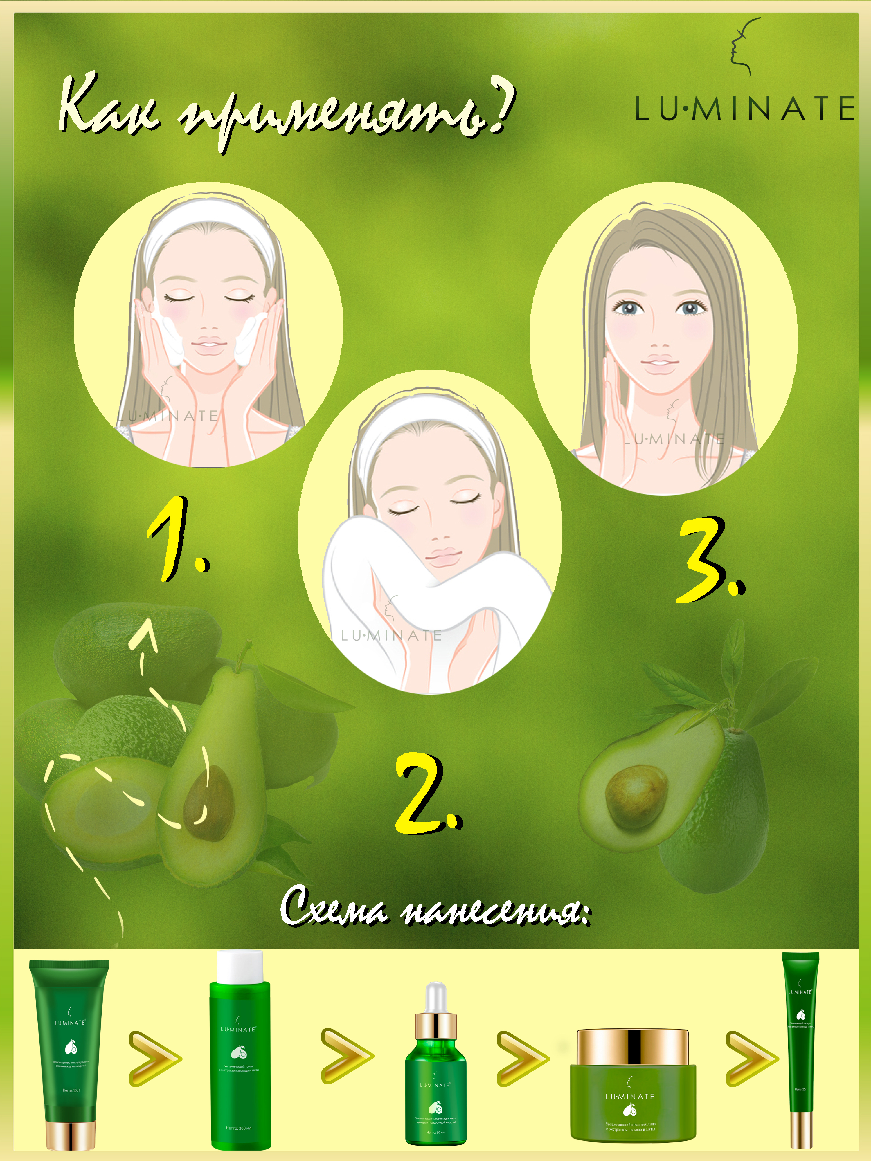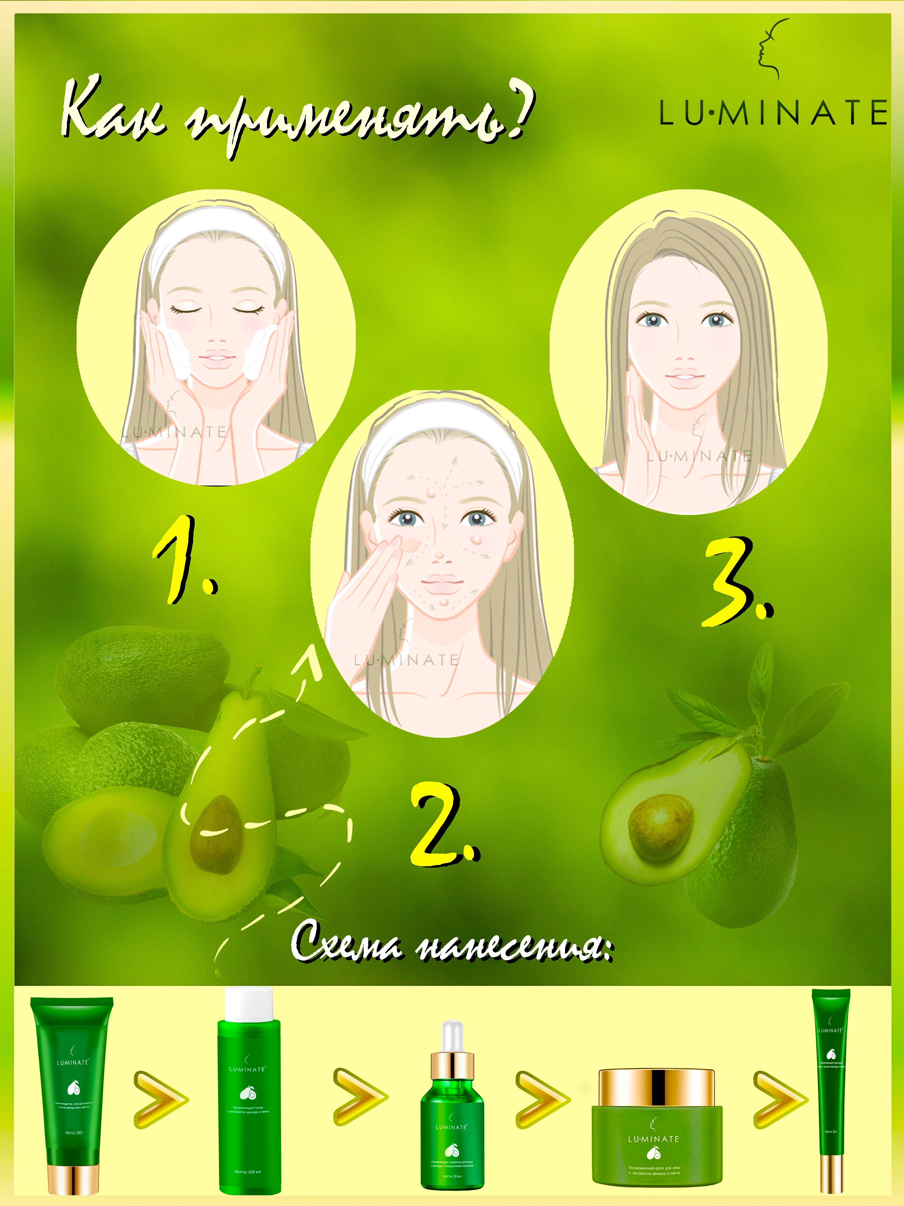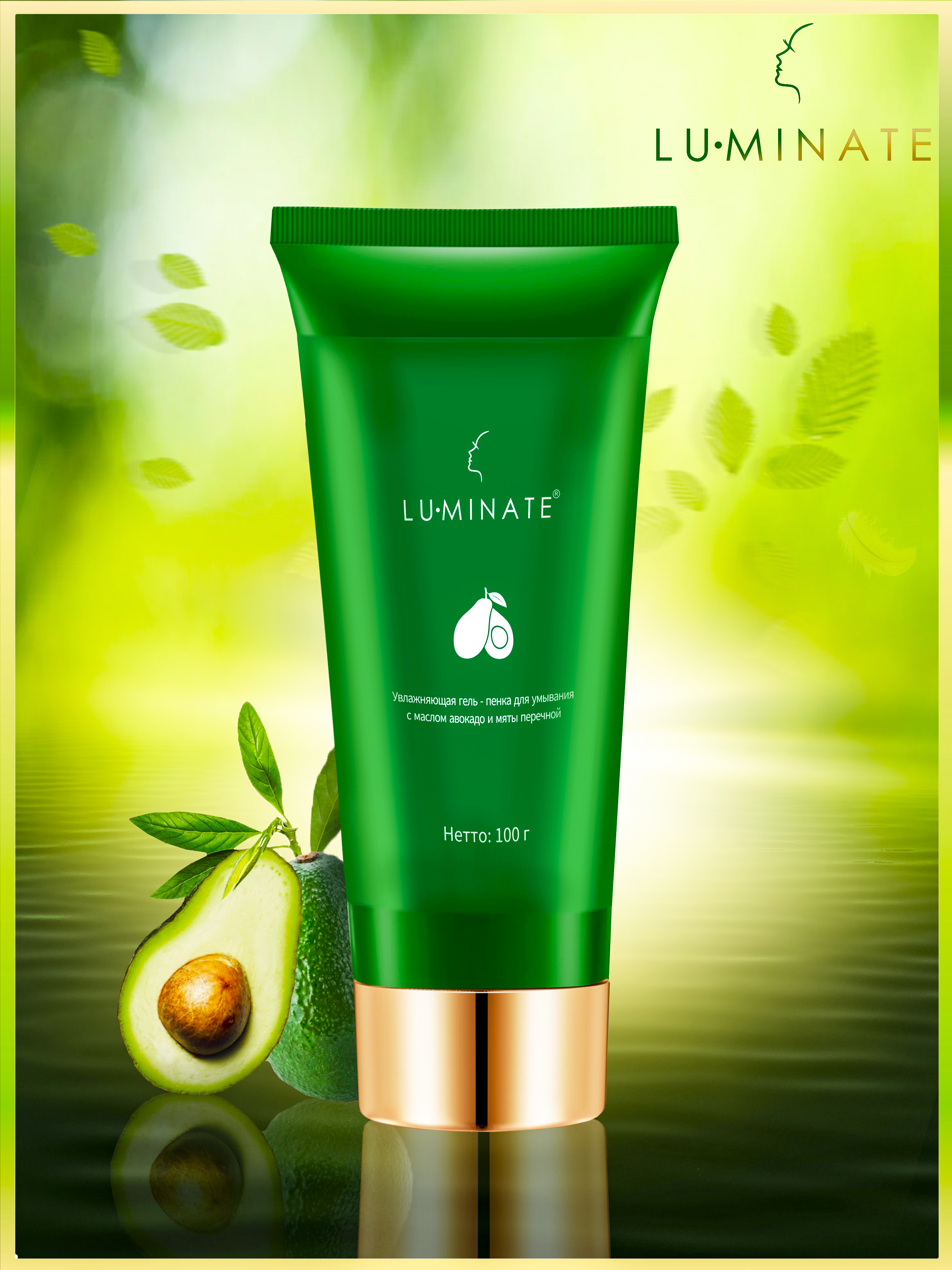 LU MINATE Гель-пенка для умывания, очищение и увлажнение, с маслом авокадо и мяты перечной, 100 мл
