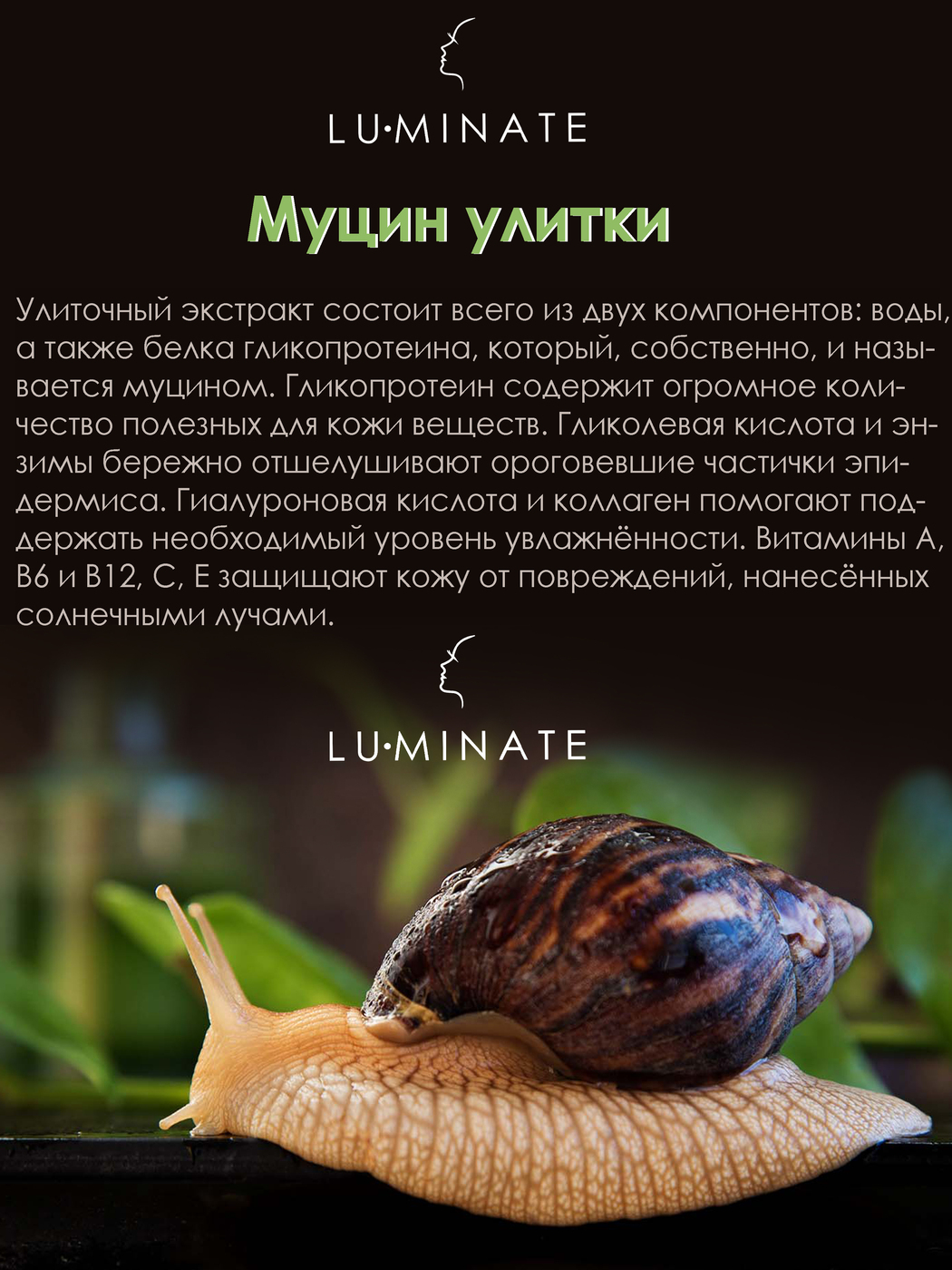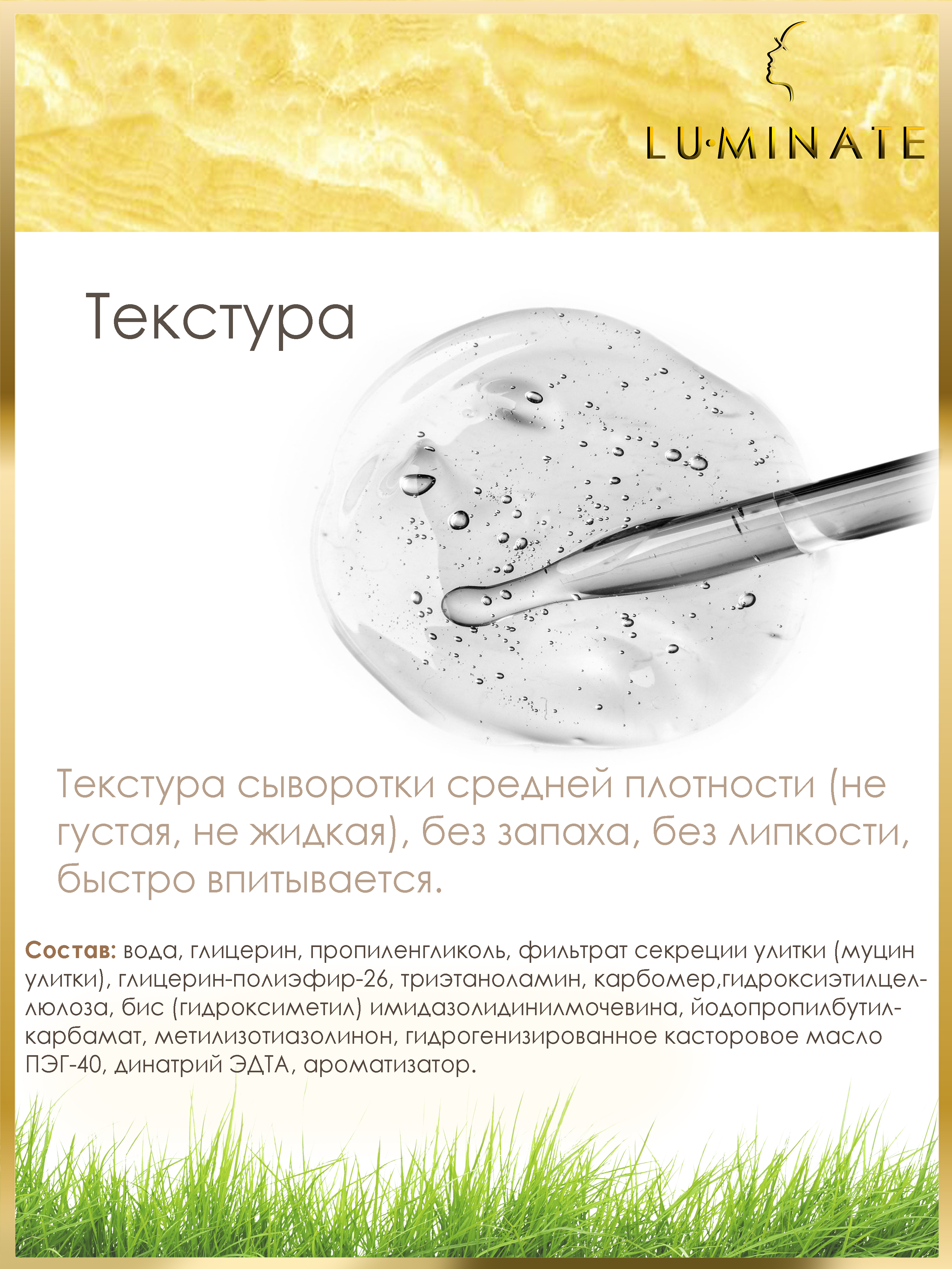 LU MINATE Сыворотка для лица увлажняющая антивозрастная с муцином улитки, 15 мл