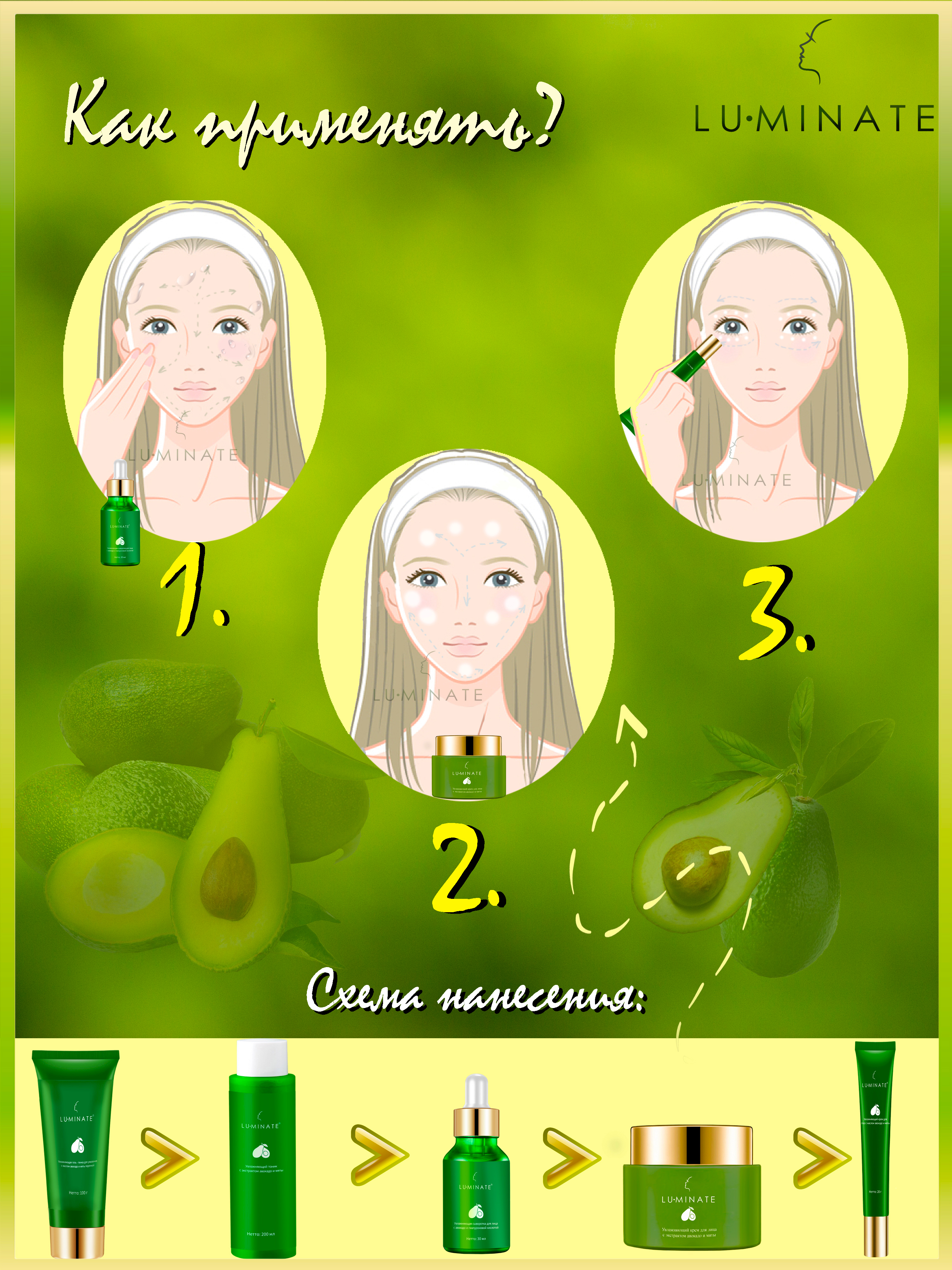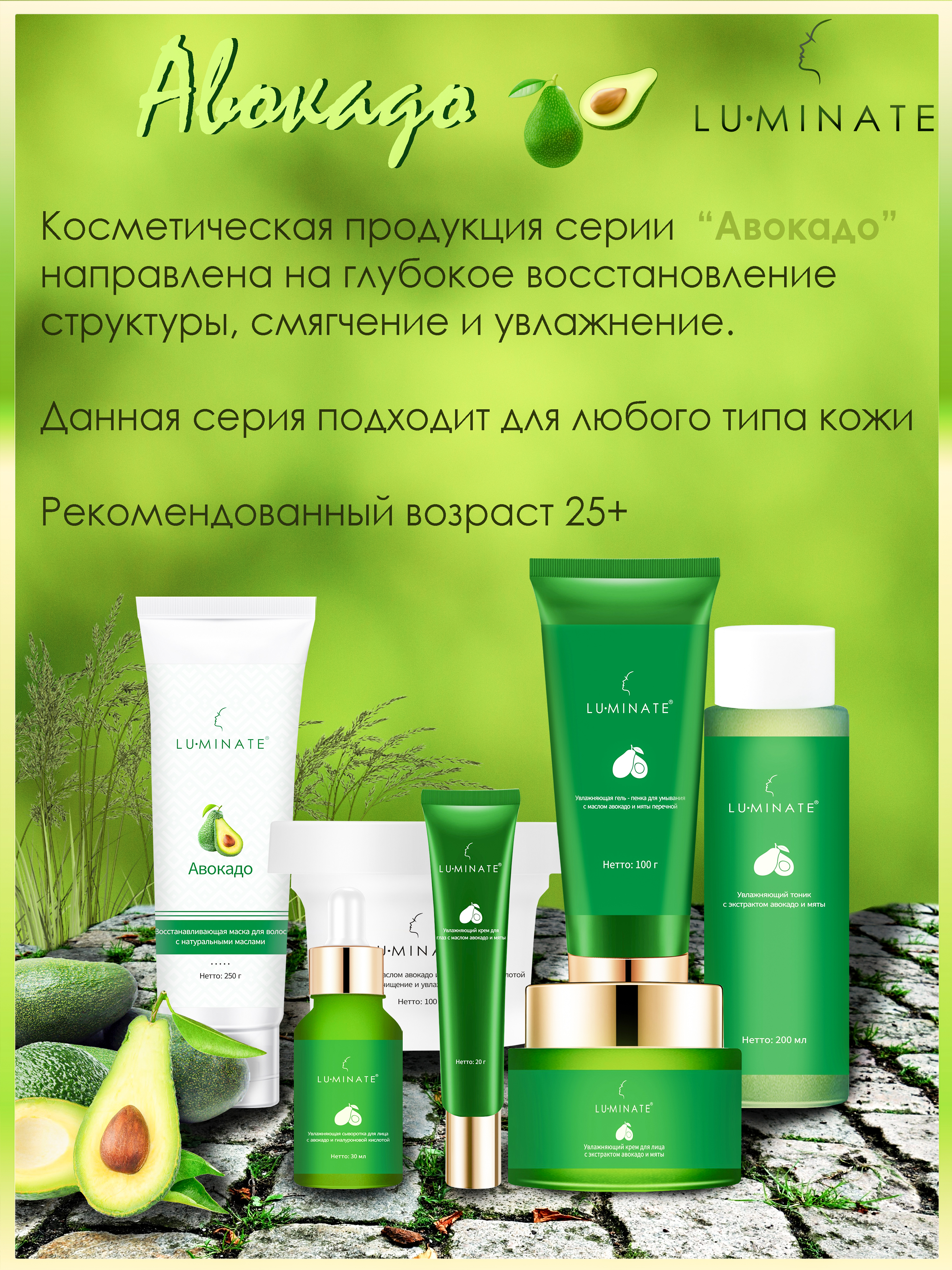 LU MINATE Крем для кожи вокруг глаз увлажняющий антивозрастной с экстрактом авокадо и мятой, 20 мл