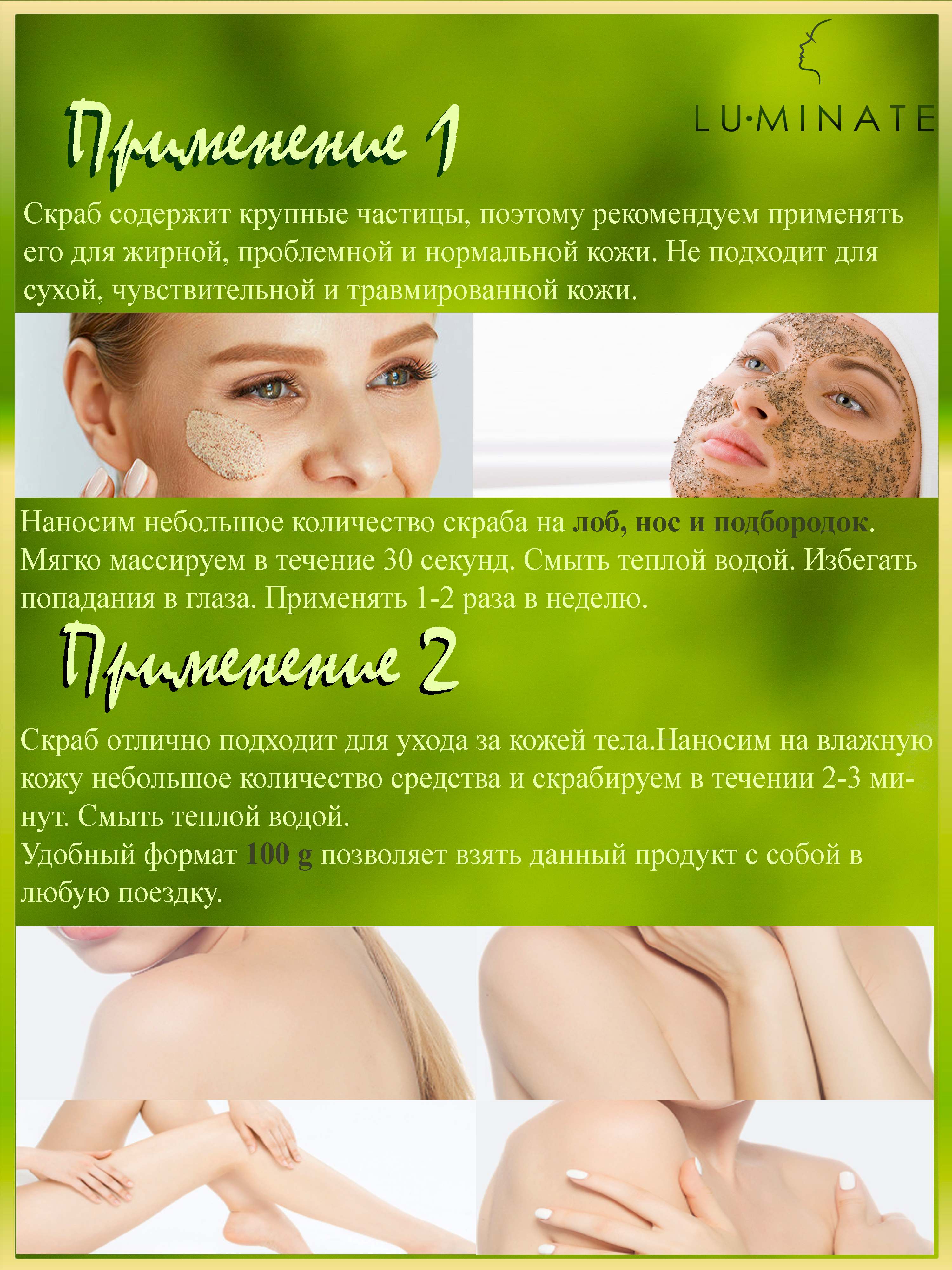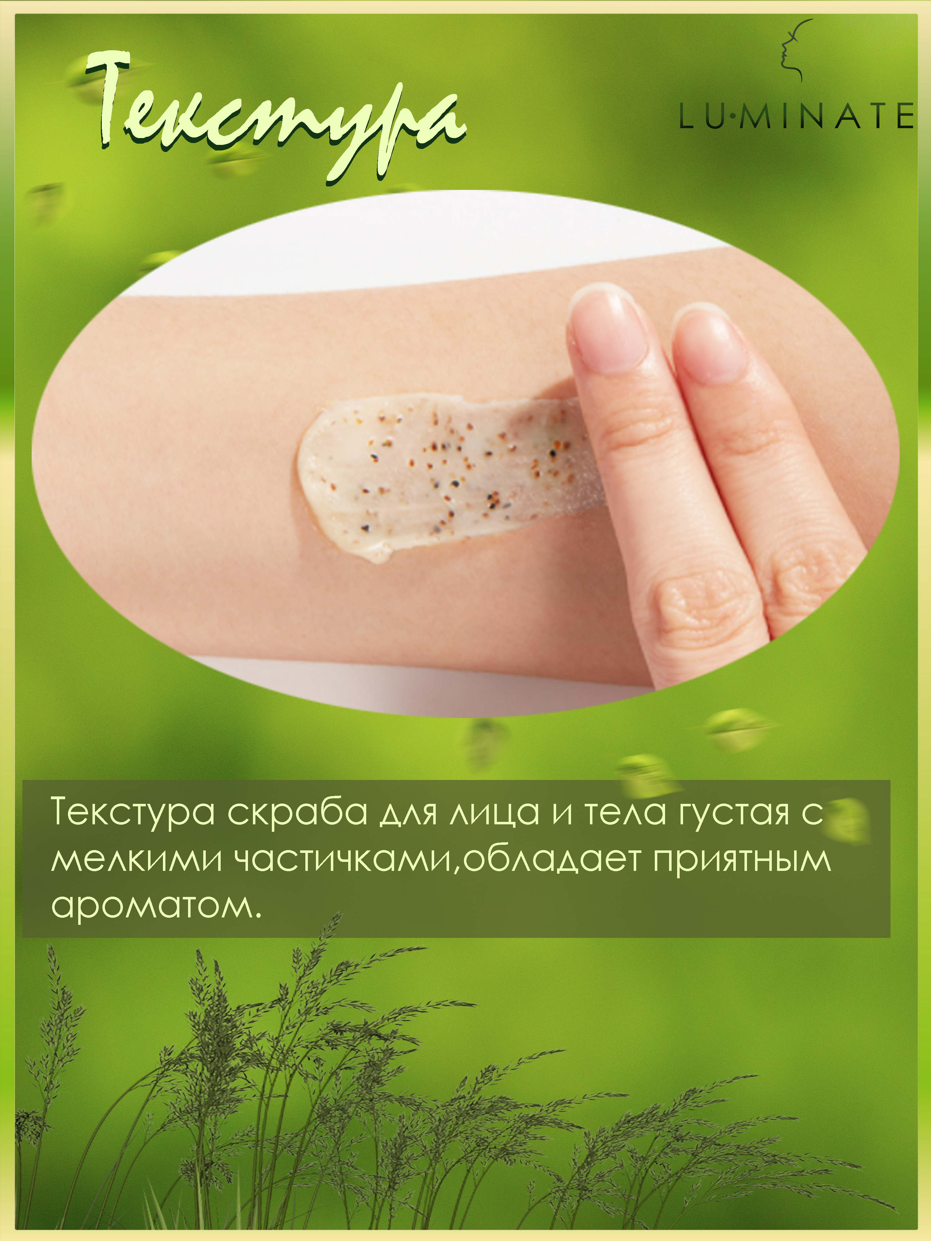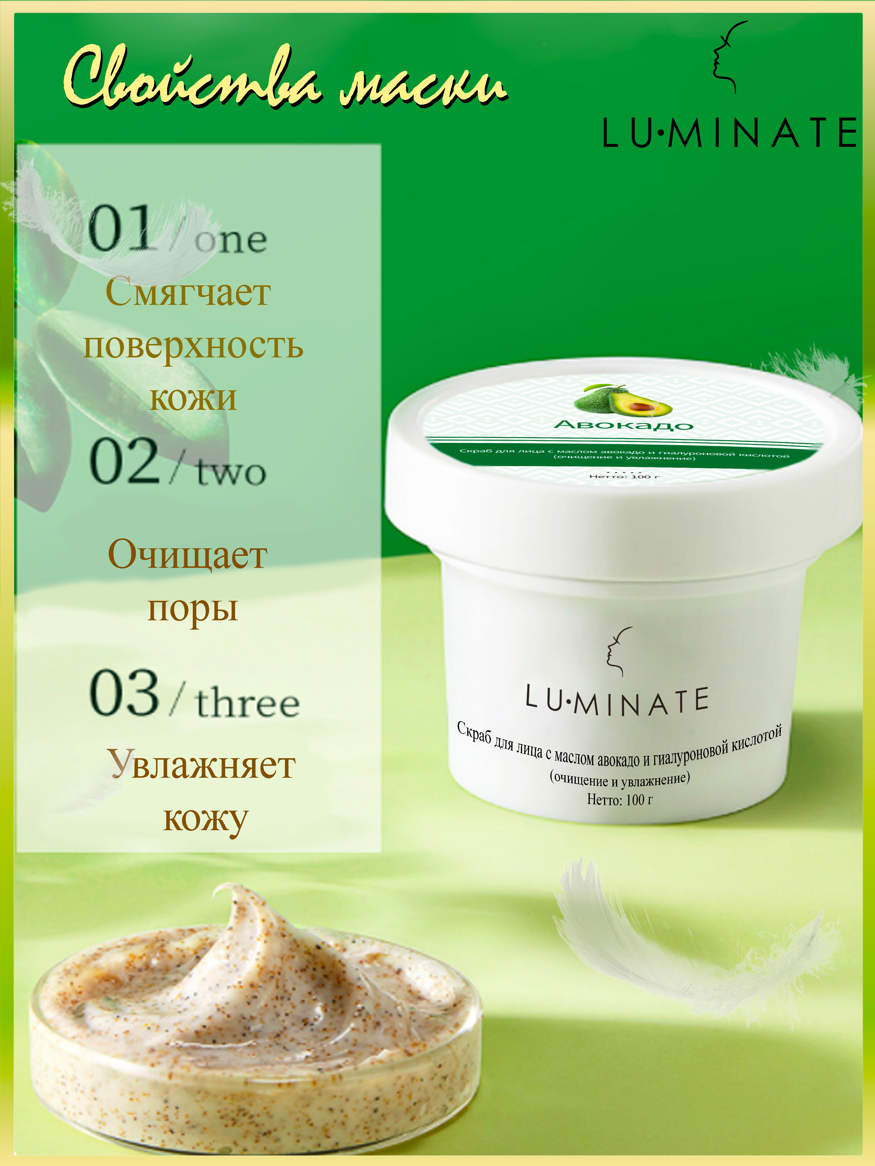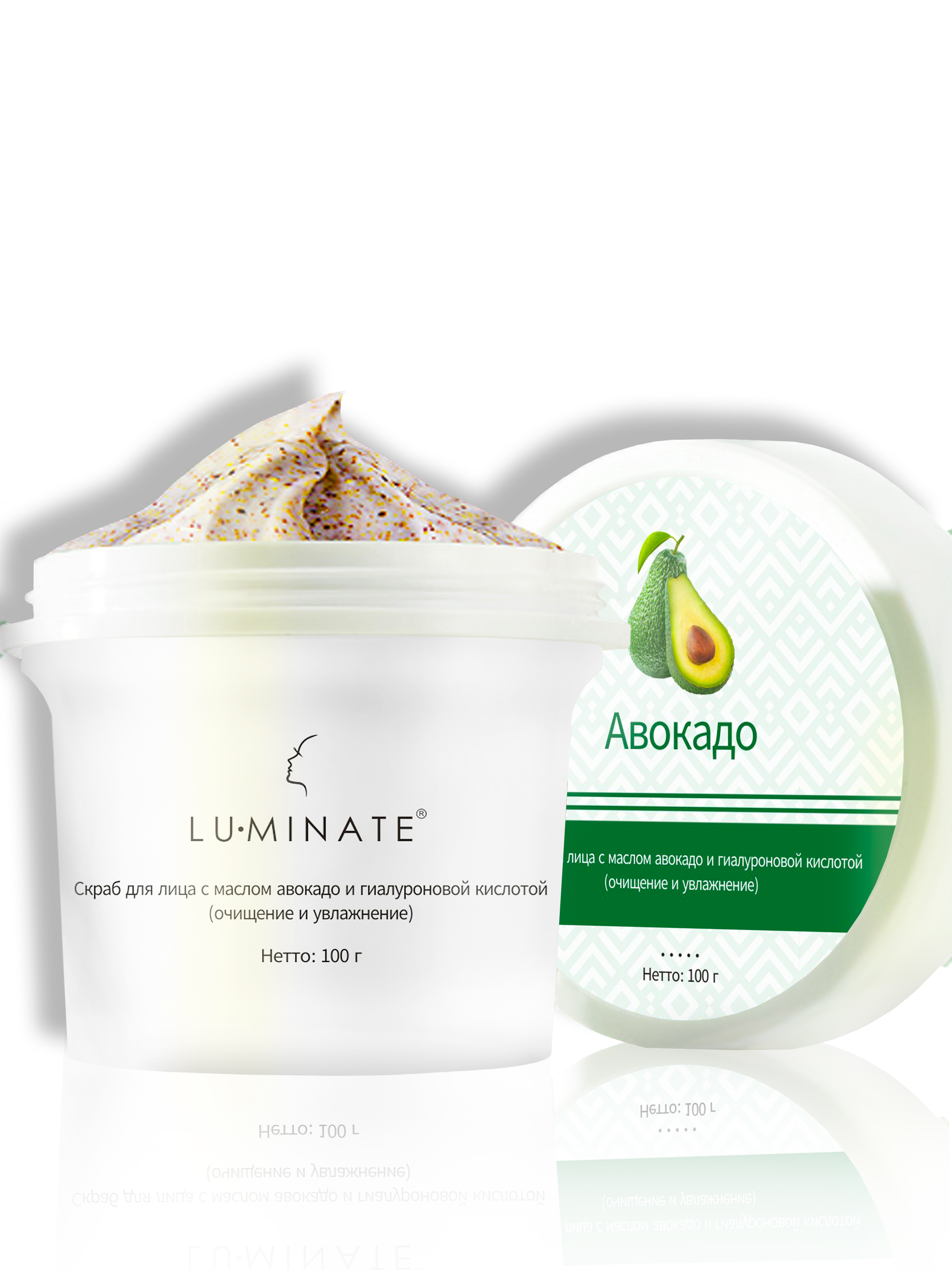 LU MINATE Скраб для лица и тела с авокадо и гиалуроновой кислотой (для очень жирной кожи), 100 мл