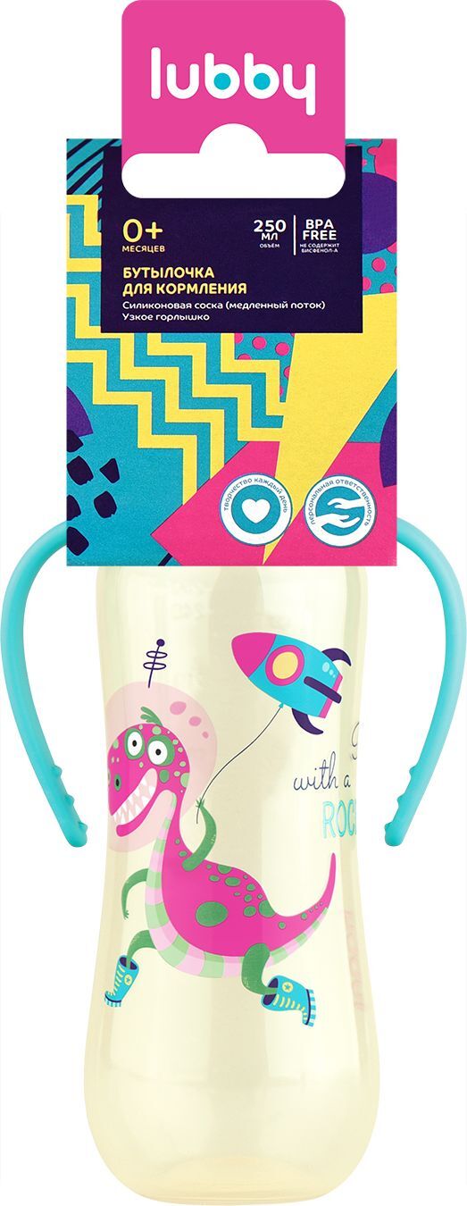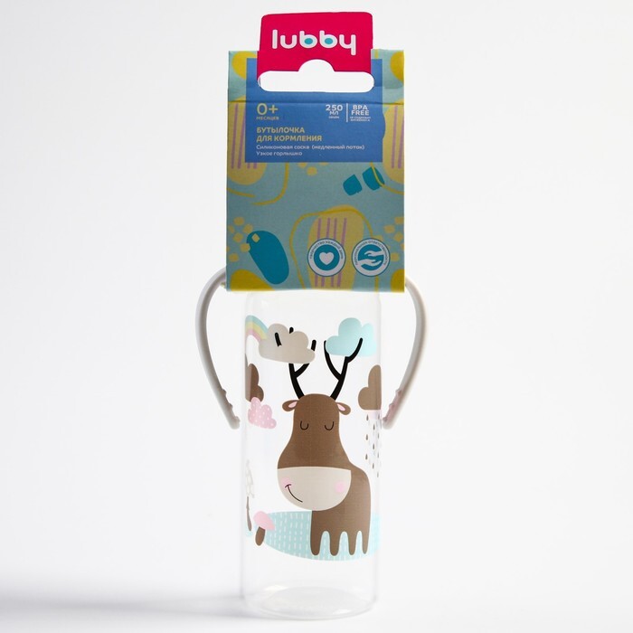 Бутылочка для кормления Lubby, с соской и ручкой, от 0 месяцев, 12018, 250 мл