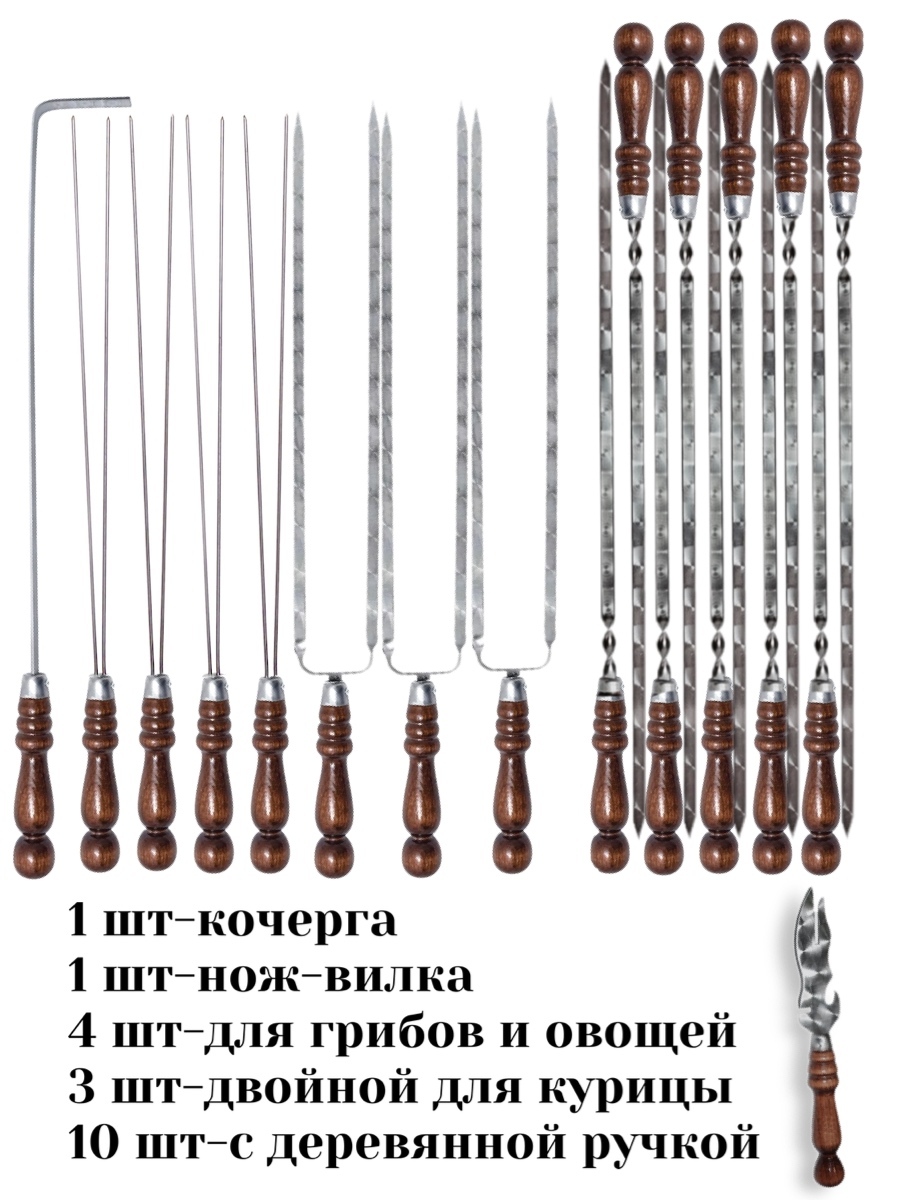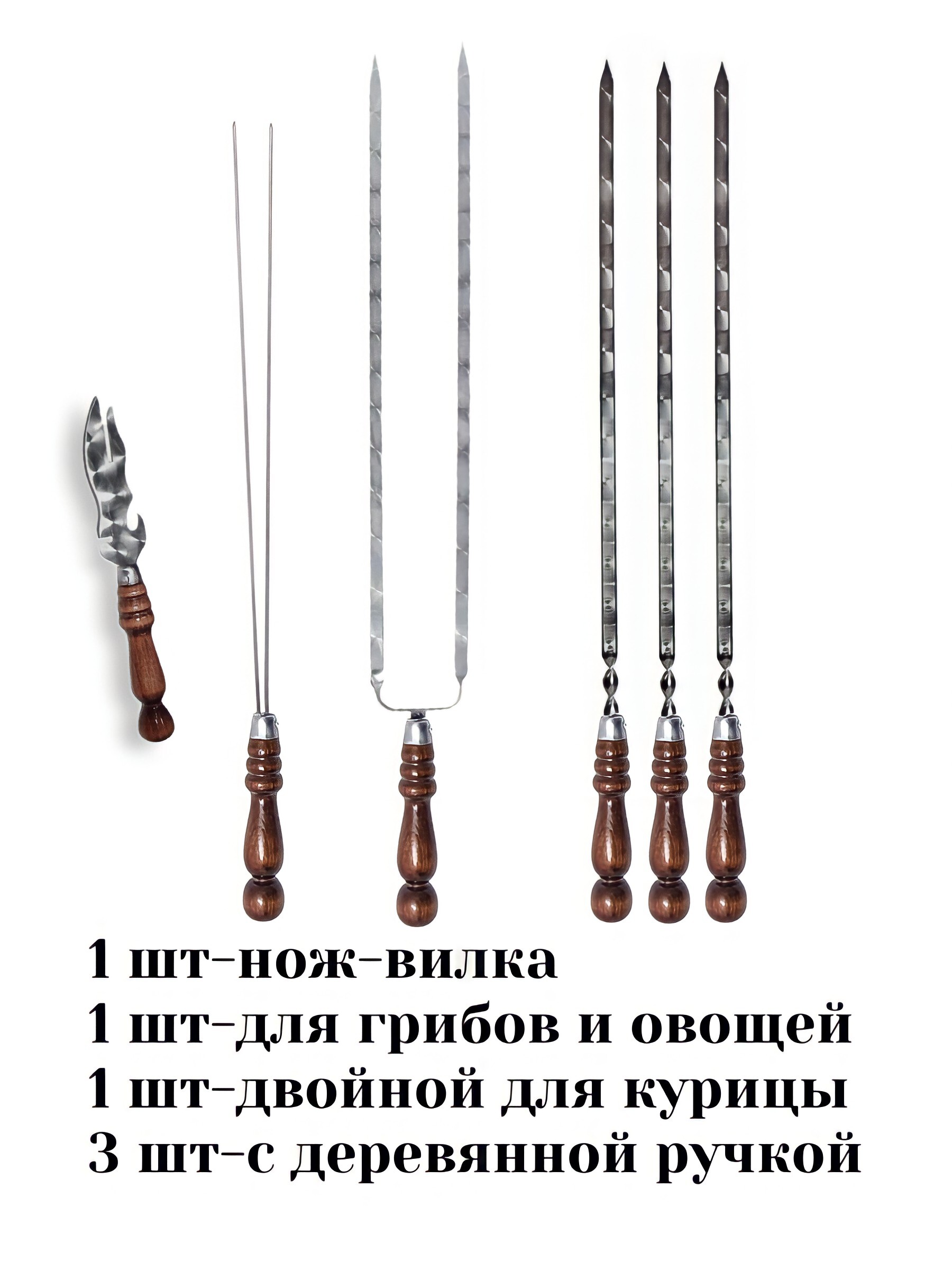Набор шампуров Лучезар Шампур с деревянной ручкой, 55 см, 6 шт