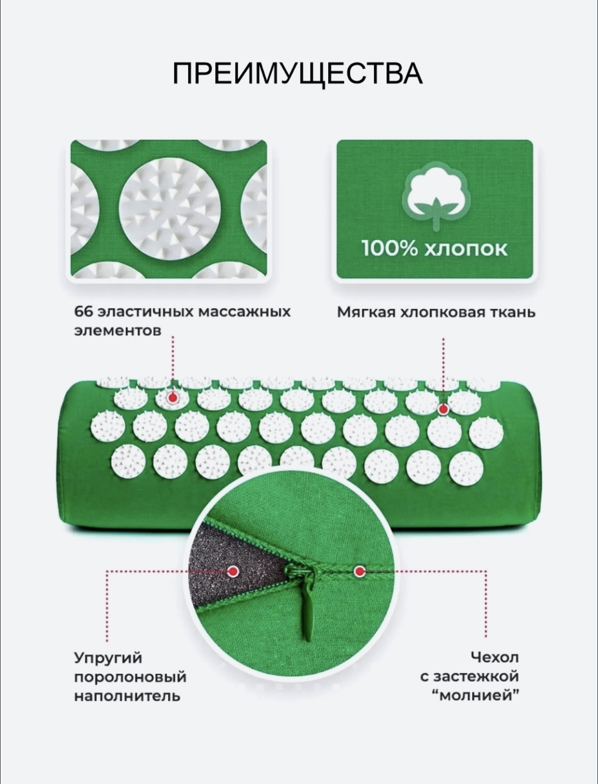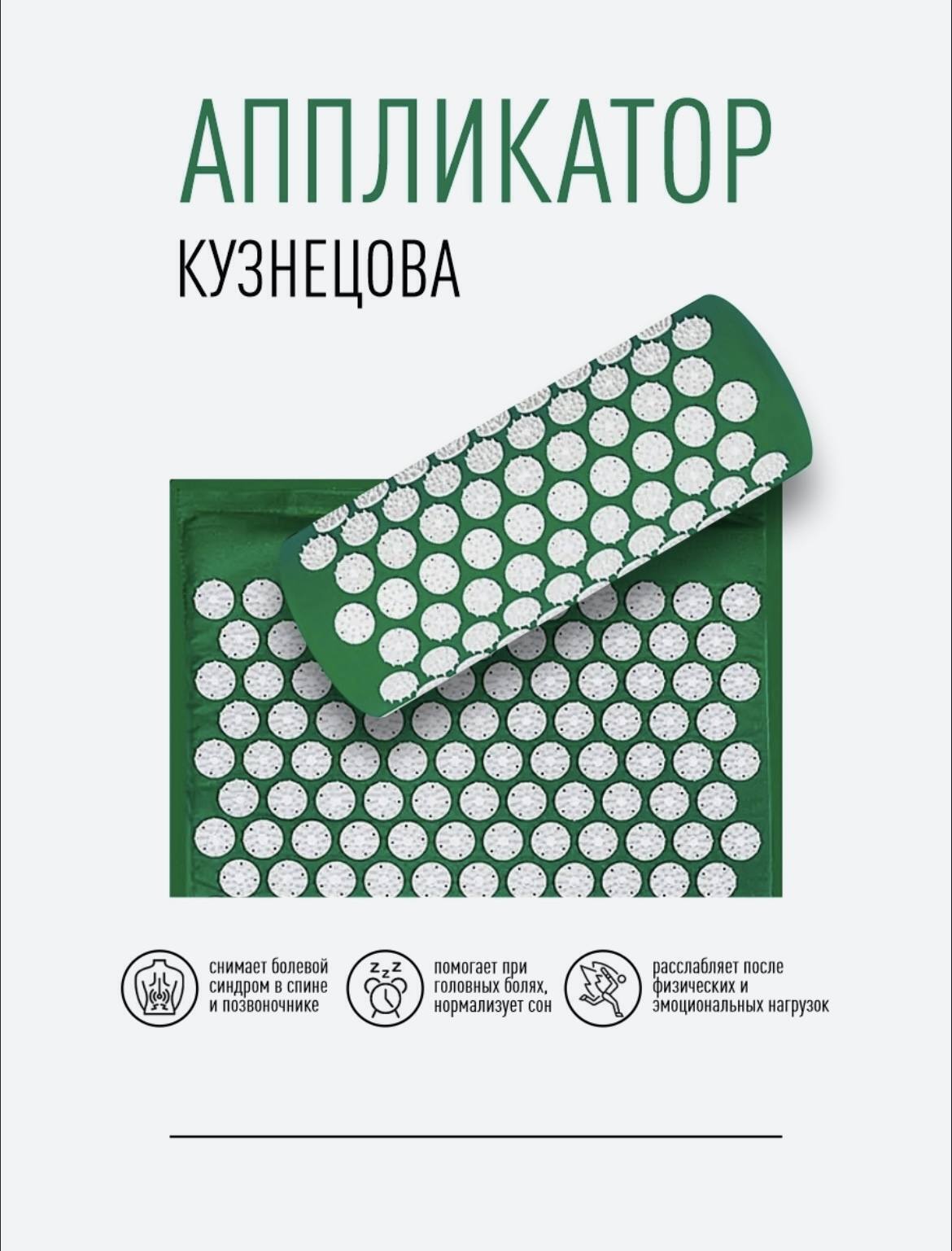 Массажный акупунктурный коврик с подушкой зеленый - аппликатор Кузнецова